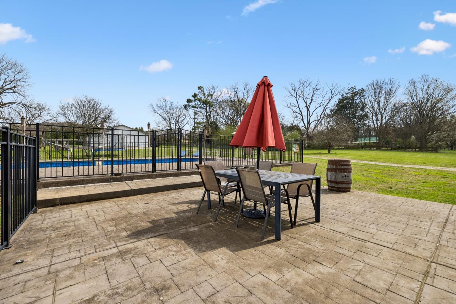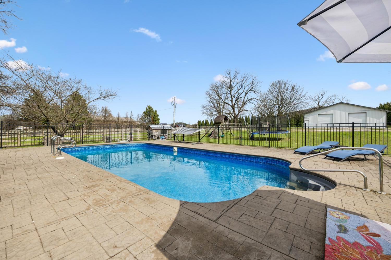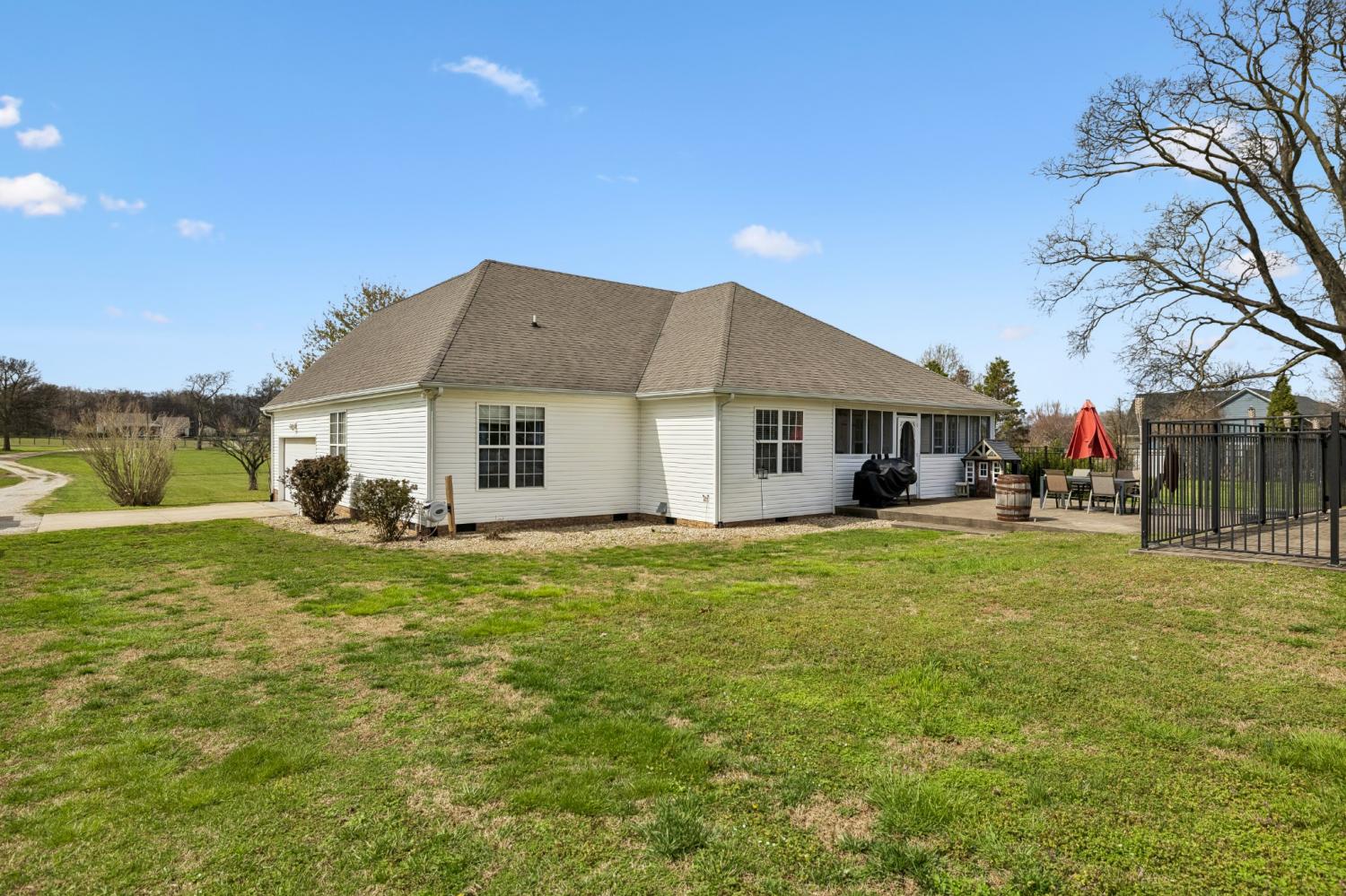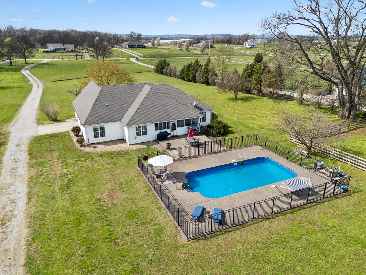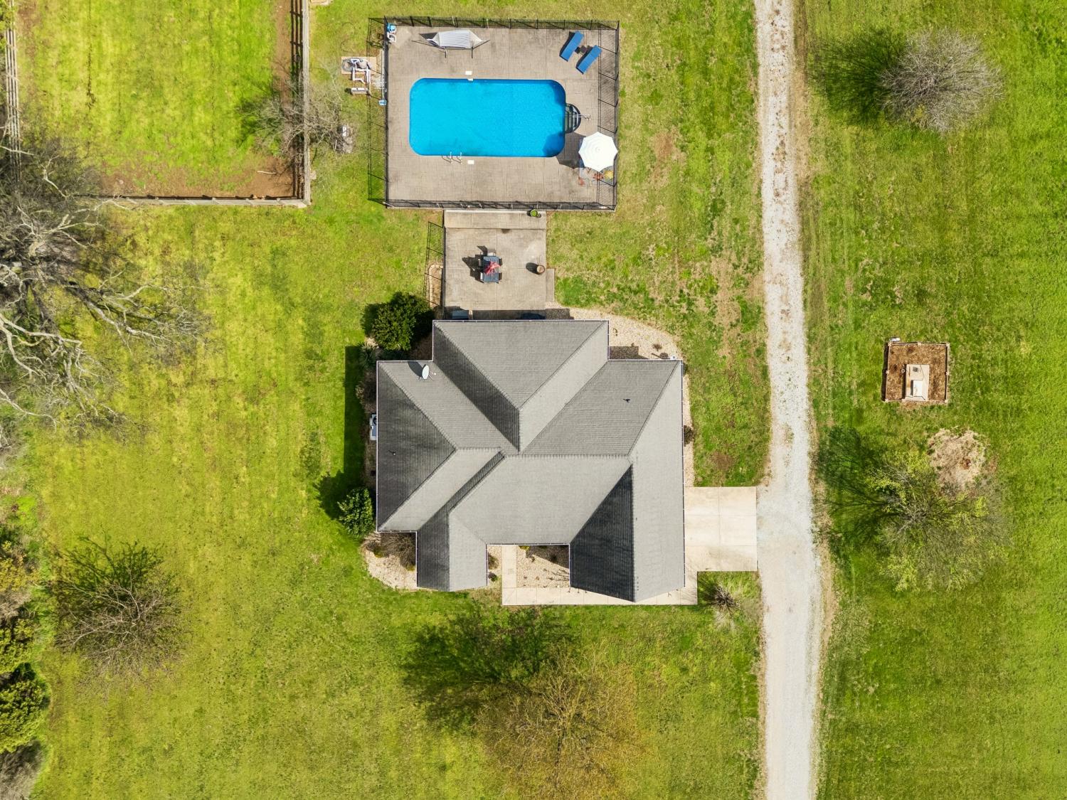 HOME + SHOP + INGROUND POOL + SHOP --- Seller offering $7,500 in concessions toward the buyer’s closing costs to allow for replacement of bedroom carpet/flooring.--- This home features a great room with built-in bookshelves and a fireplace, a dining area, and an eat-in kitchen. The layout includes 3 bedrooms, an office, and a bonus room. Two of the bedrooms are primary suites! Outside, there is a screened-in covered porch, a stamped-concrete patio, an in-ground pool surrounded by a fence for added security and protection, and a 2-car garage. Property also includes a 40x50 shop and an underground storm shelter installed by the sellers. (Water Heater 2024) (Pool: Pump-2024/Liner-2023) (Main Level HVAC: 2025)