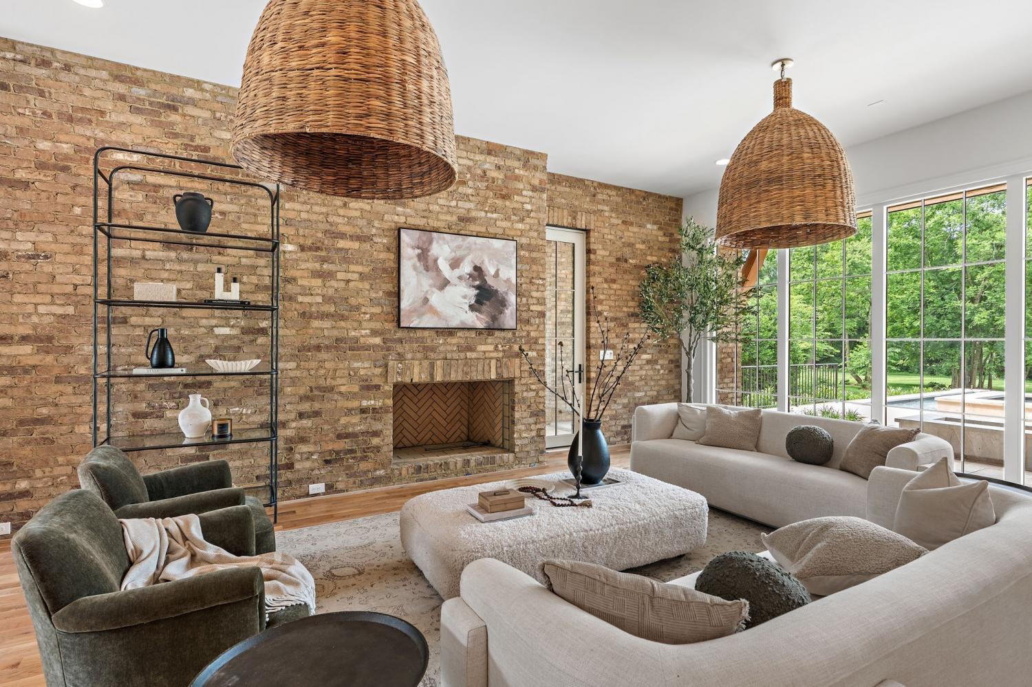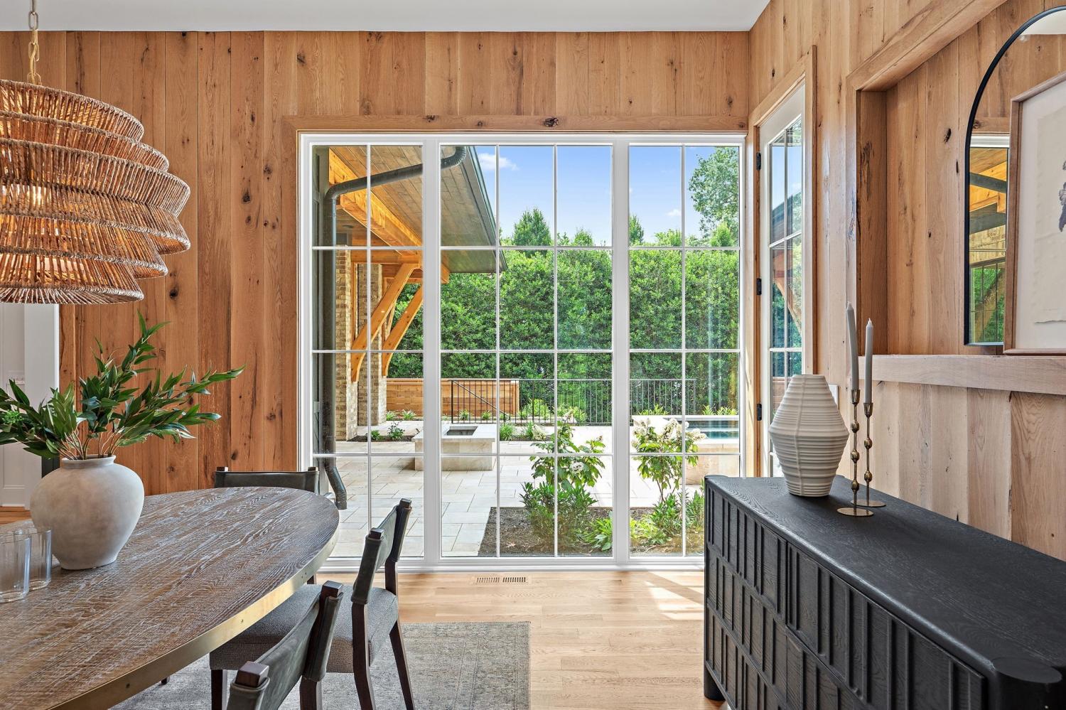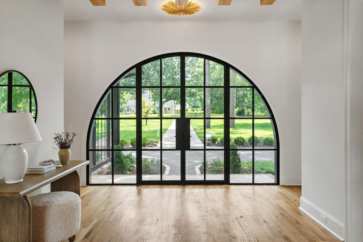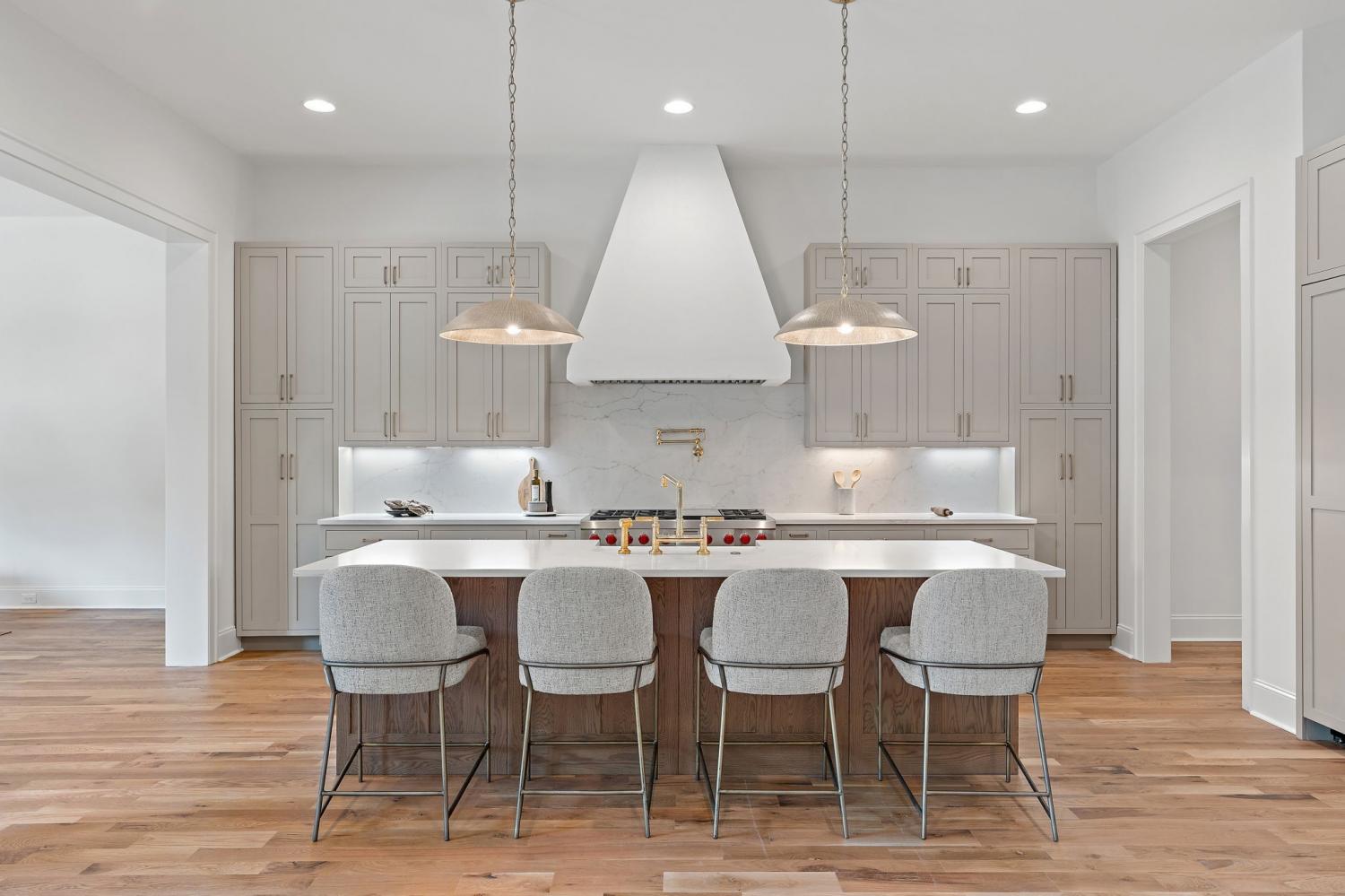 This stunning French Country–inspired estate blends timeless elegance with modern luxury. Situated on 1.2 flat acres, the home features 11-foot ceilings on the main level and 9-foot ceilings upstairs, creating a spacious and airy feel throughout. Designed for both everyday living and grand entertaining, the residence offers a three-car garage with a custom porte-cochère, and a heated gunite infinity-edge pool, spa, and firepit—truly an entertainer’s dream. Inside, you’ll find designer finishes, Signature Hardware fixtures, and a turnkey interior ready to impress. The chef’s kitchen is outfitted with Miele and KitchenAid appliances, a marble island, and an open layout that flows beautifully into the living and dining spaces.Enjoy the luxury of two primary suites on the main floor, ideal for multigenerational living or hosting guests in comfort and style.Soaring floor-to-ceiling windows and a spectacular arched front door flood the home with natural light, offering serene views of the lush landscaping and pool beyond.