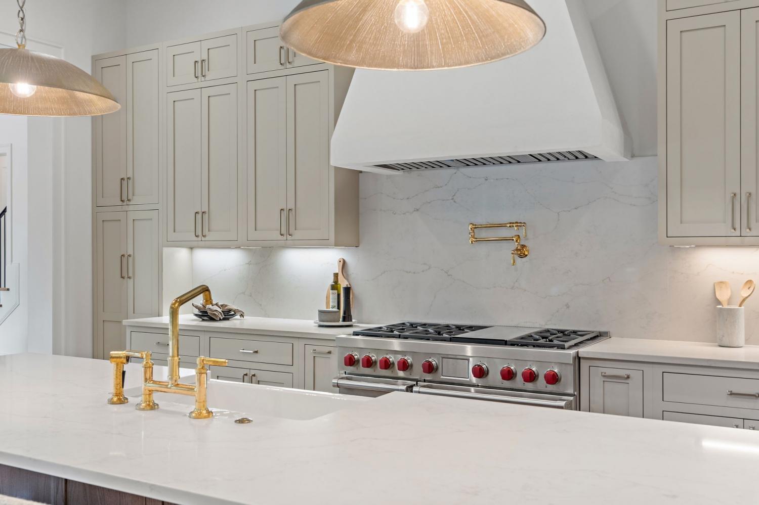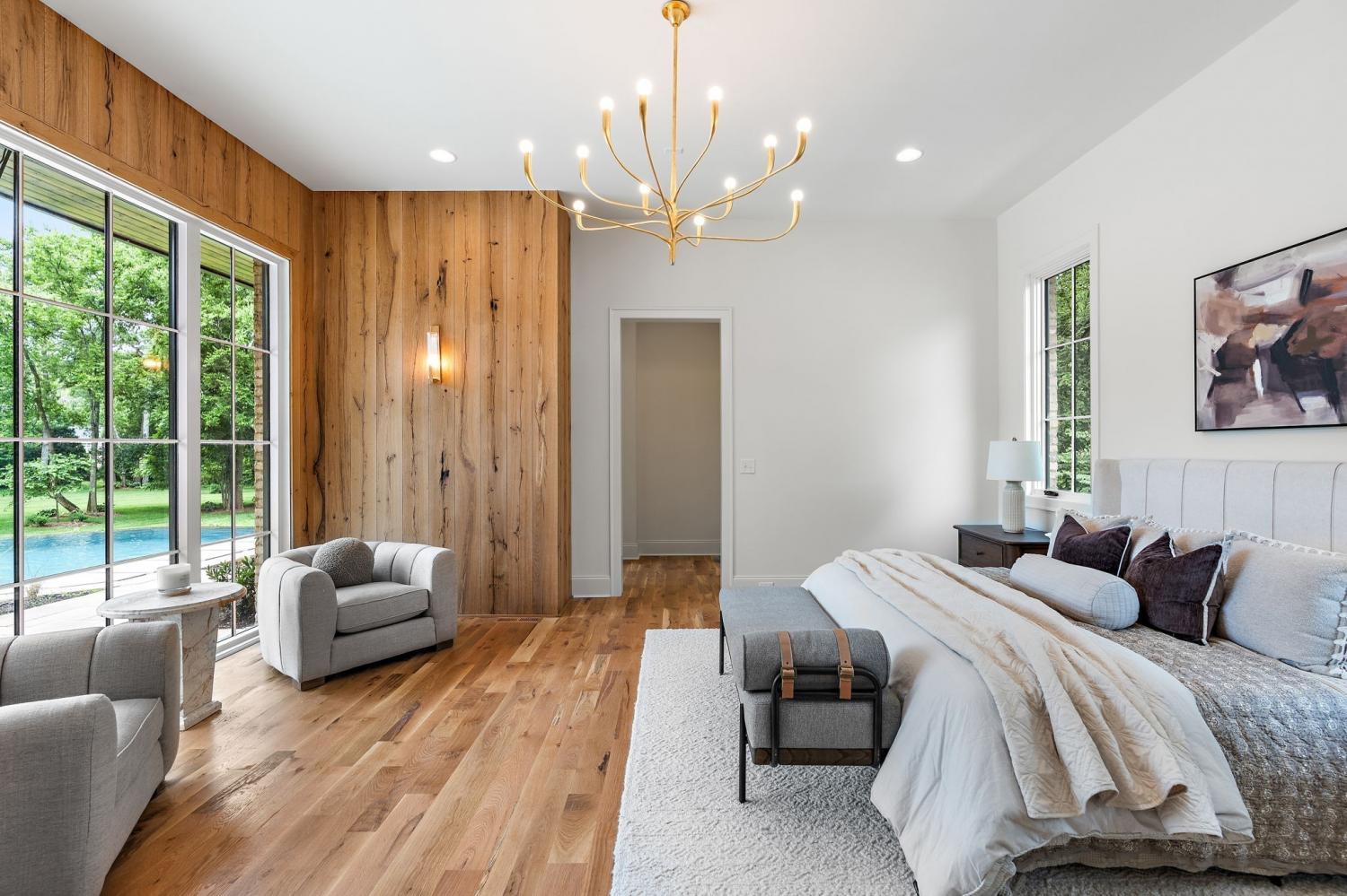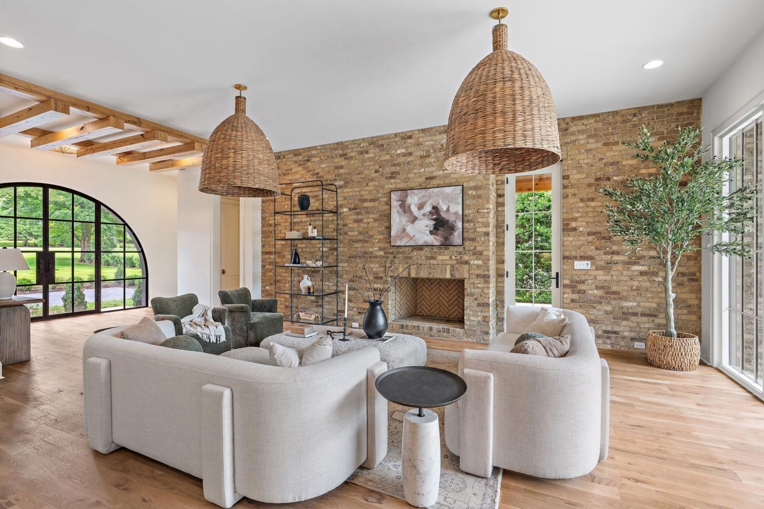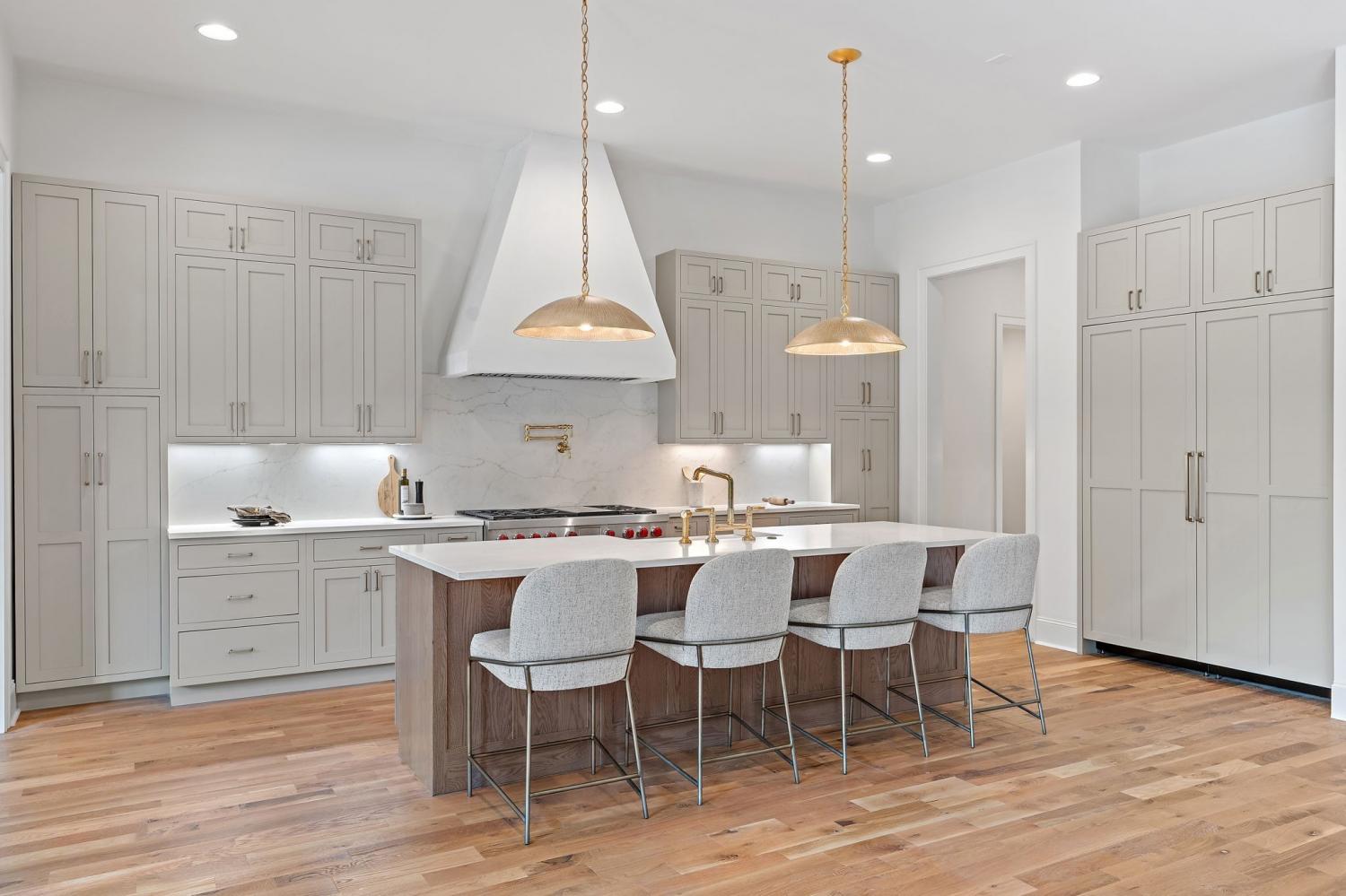 This stunning French Country–inspired estate blends timeless elegance with modern luxury. Situated on 1.2 flat acres, the home features 11-foot ceilings on the main level and 9-foot ceilings upstairs, creating a spacious and airy feel throughout. Designed for both everyday living and grand entertaining, the residence offers a three-car garage with a custom porte-cochère, and a heated gunite infinity-edge pool, spa, and firepit—truly an entertainer’s dream. Inside, you’ll find designer finishes, Signature Hardware fixtures, and a turnkey interior ready to impress. The chef’s kitchen is outfitted with Miele and KitchenAid appliances, a marble island, and an open layout that flows beautifully into the living and dining spaces.Enjoy the luxury of two primary suites on the main floor, ideal for multigenerational living or hosting guests in comfort and style.Soaring floor-to-ceiling windows and a spectacular arched front door flood the home with natural light, offering serene views of the lush landscaping and pool beyond.