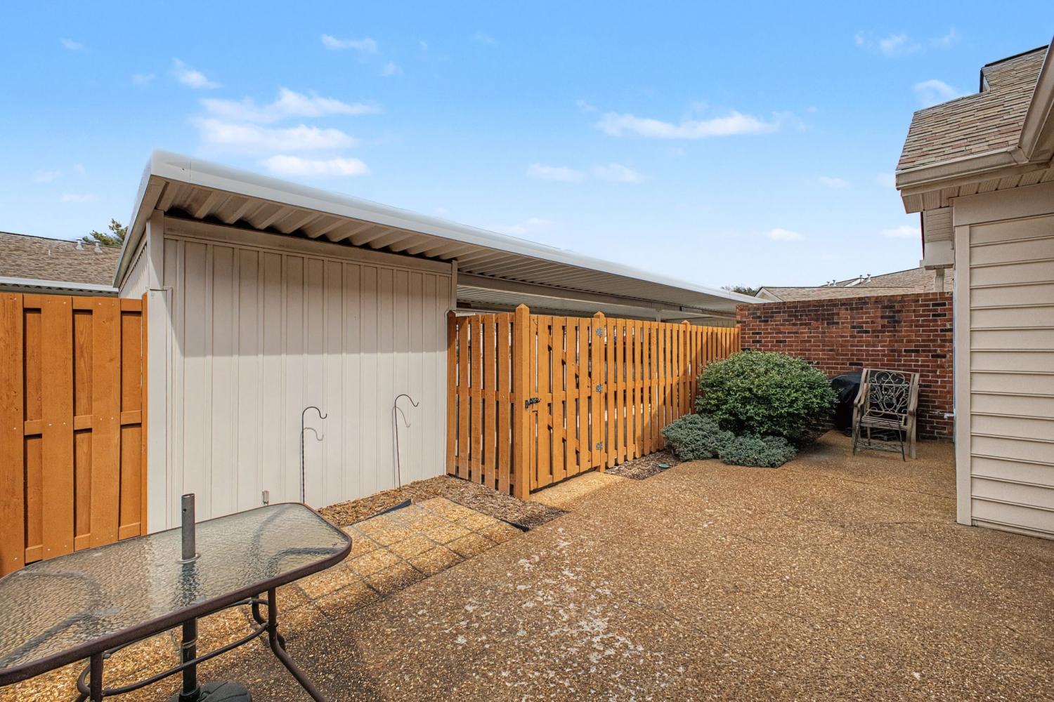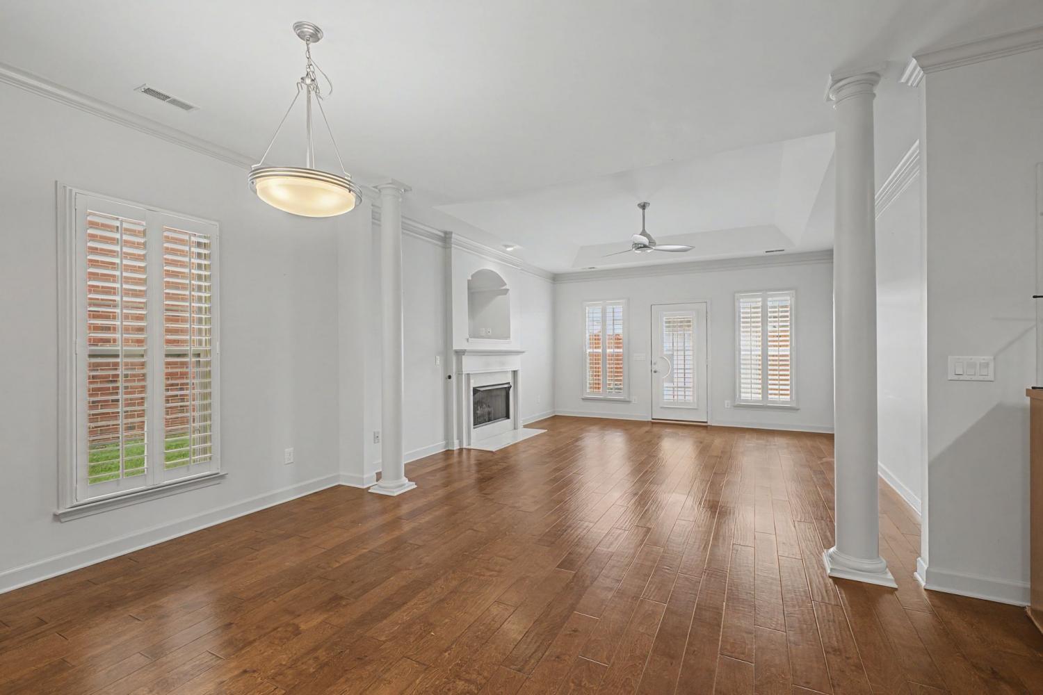 Beautiful ONE-LEVEL cottage in the highly desirable 55+ community of Morningside! This 2BR / 2BA home features wide-plank hand-scraped hardwood floors in the living room and foyer, tall ceilings, and a cozy gas fireplace. The home has been tastefully updated with a renovated kitchen and upgraded primary bathroom, along with custom plantation shutters throughout. Both bedrooms offer brand-new carpet, creating comfortable private retreats. Enjoy the convenience of a 2-car carport with an additional, oversized storage shed and a freshly Installed/Painted privacy fence. Morningside residents have access to a community pool and clubhouse, all just minutes from Cool Springs shopping, dining, and entertainment. Easy, low-maintenance living in a prime location!