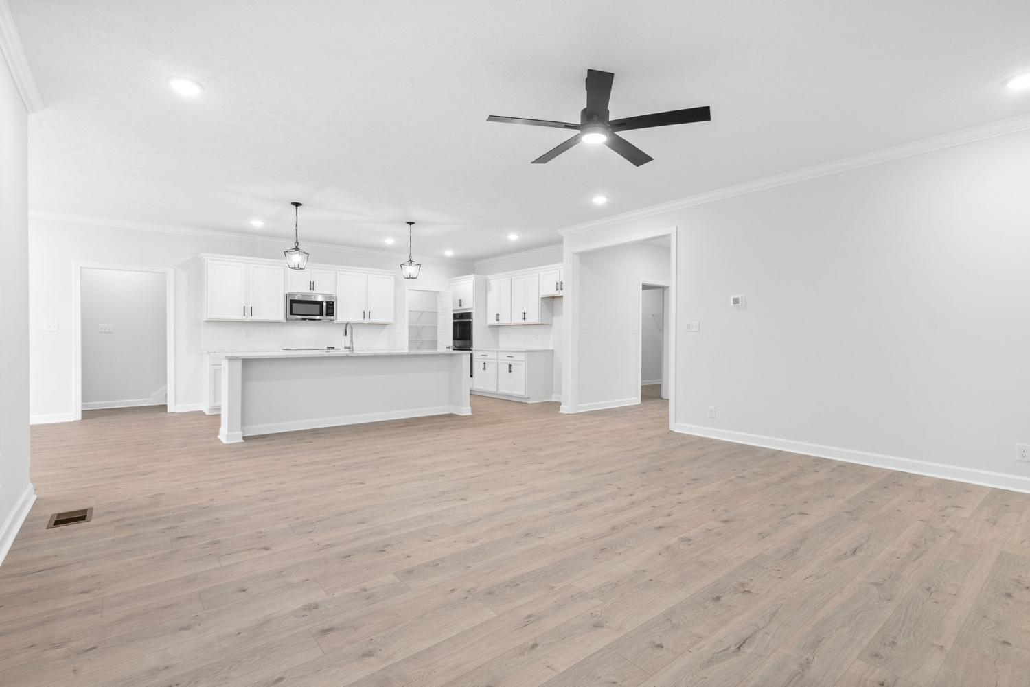 County taxes only! Built by local builder with solid warranty.This remarkable 5 bedroom home seamlessly blends upscale living with modern design. With 2 bedrooms on the main and 3 bedrooms PLUS a massive bonus room on the second floor, there's abundant space for all your needs. Prepare to be wowed by the kitchen, a focal point perfect for entertaining with its grand island and custom wood cook-top hood. This home boasts trendy finishes like sleek countertops, a farmhouse sink, laminate plank flooring, a shiplap fireplace, and a convenient drop zone built in. The primary suite offers serenity, while the lavish spa like bathroom has a free-standing tub and large tiled shower. Designed for comfort and convenience, this home includes several desirable upgrades. A French door refrigerator, washer and dryer set, and custom window blinds are already installed, allowing for an easy move-in experience. The aluminum fenced yard adds both elegance and functionality, creating a private outdoor retreat.