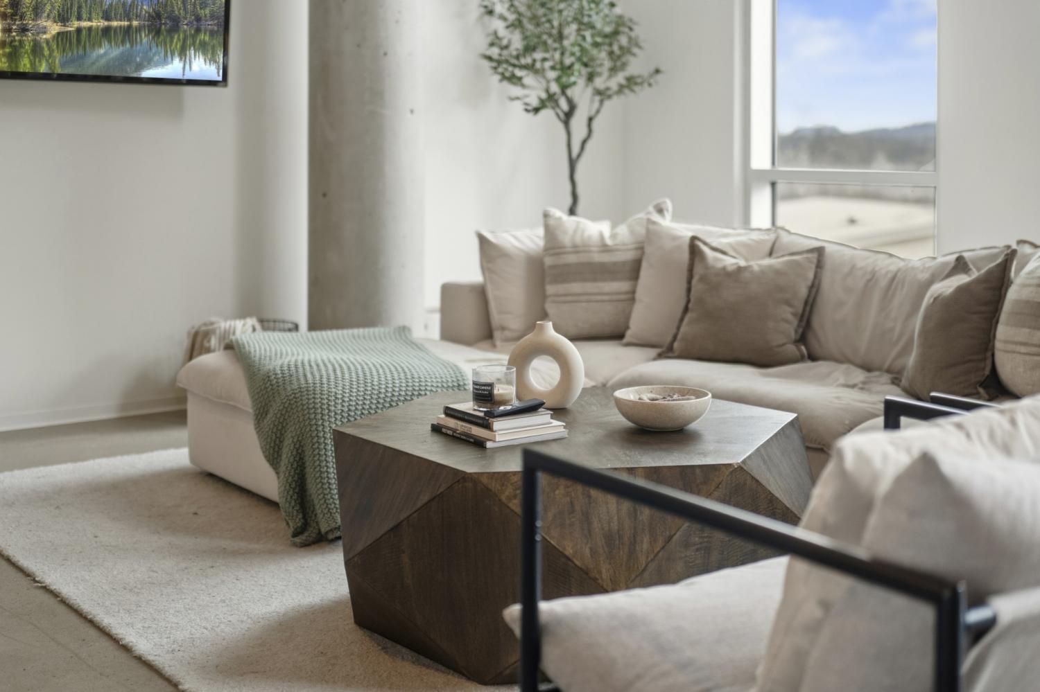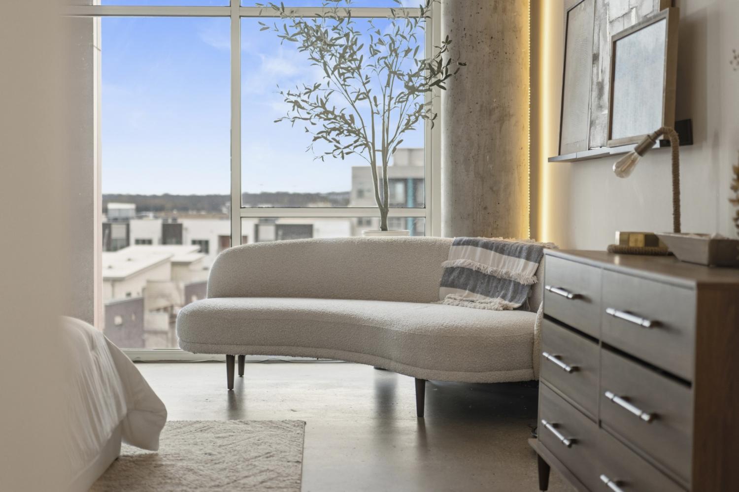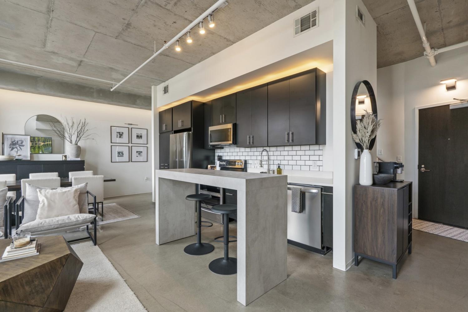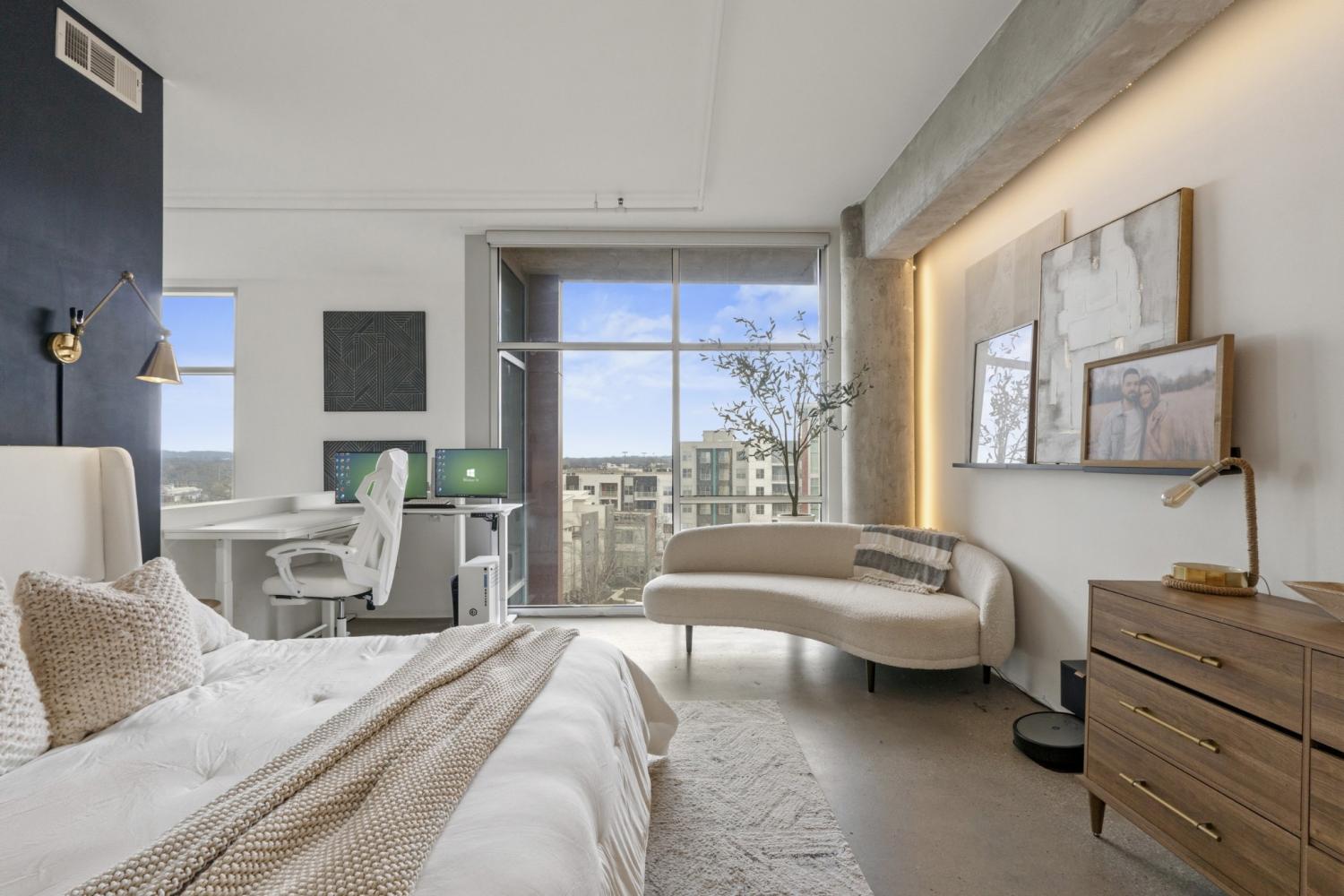 Introducing Unit 405 at 5th & Main, where scale, style, and location converge in one of East Nashville’s most vibrant and walkable communities. Spanning 1,351 square feet, this oversized one-bedroom loft immediately makes an impression with soaring ceilings, exposed concrete elements, and floor-to-ceiling windows that illuminate the space with natural light. The open-concept living and dining areas create a sense of volume rarely found in condo living - offering plenty of room to entertain, work from home, or simply unwind in a space that feels both expansive & inviting. The new kitchen anchors the main level with modern finishes and a seamless connection to the living area, allowing conversations & gatherings to flow effortlessly. Elevated above the living space, the primary suite becomes its own retreat. Here, towering windows and exposed columns frame the loft’s industrial architecture, creating a bedroom that feels both dramatic & intimate. The suite is complemented by a spacious ensuite bath, while a rare half bath on the main level provides added convenience for guests. Beyond the home itself, 5th & Main offers a true urban lifestyle with concierge service, a fully equipped fitness center, gated garage parking, and a stunning owner’s sky deck. From this elevated vantage point, residents enjoy sweeping skyline views and soon, a front-row seat to Nashville’s most transformative development yet: the $2.1B Titans stadium and the 500-acre East Bank riverfront district rising in unobstructed sight. Step outside into one of Nashville’s most walkable neighborhoods, where East Nashville’s favorite restaurants, coffee shops, breweries, and boutique fitness studios are just moments away - all while being minutes from downtown. With its rare scale, dramatic loft architecture, full-service amenities, and unbeatable location at the center of Nashville’s next great urban district, Suite 405 offers a lifestyle that feels both exciting today & poised for the future.