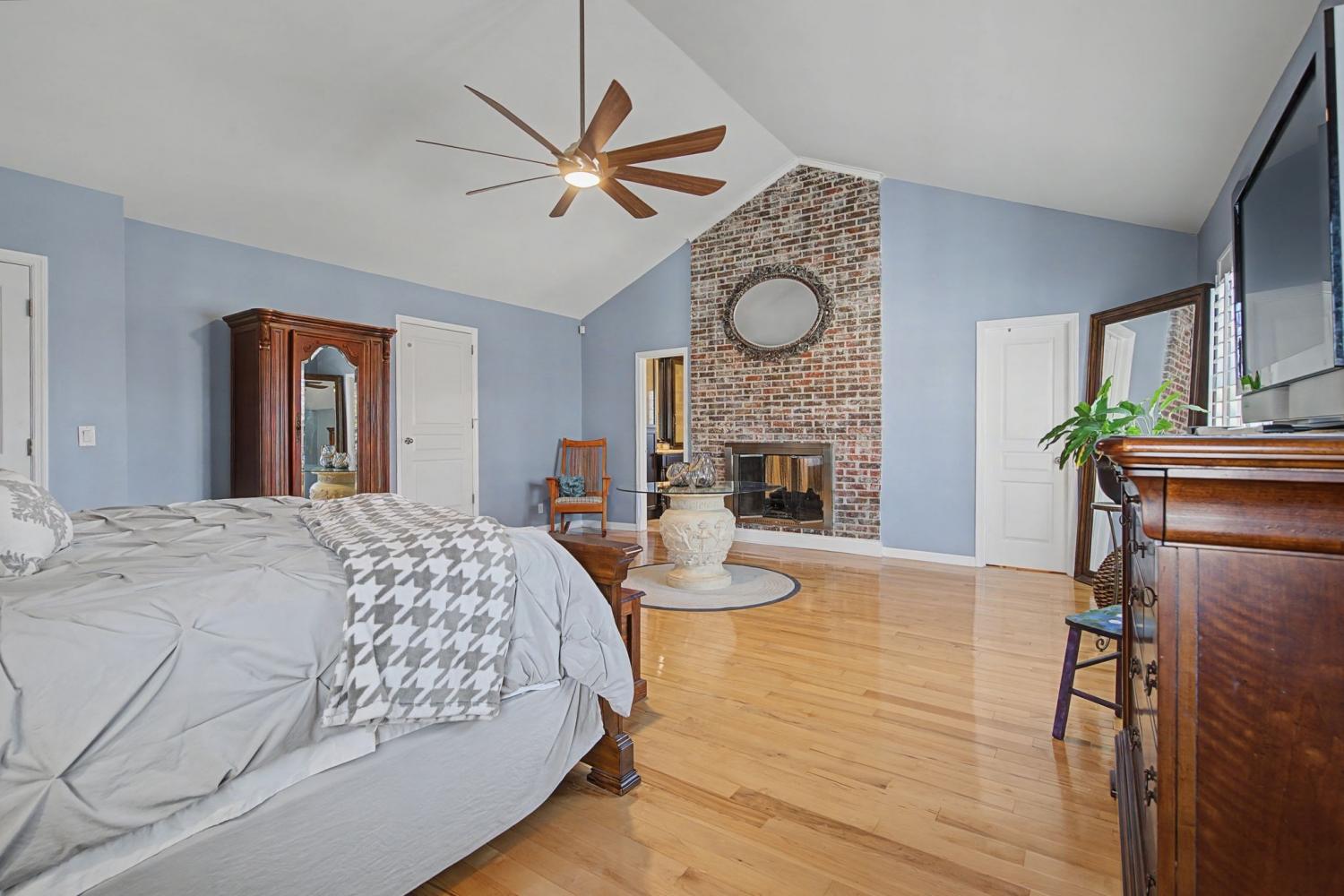 (P) From the moment you arrive, you’ll be drawn to the comfortable covered front porch wrapping around three sides of the home, highlighted by classic columns offering the perfect setting for morning coffee and evening sunsets. Out back, you will find a screened-in porch overlooking an in-ground pool, offering the perfect place to unwind or entertain. This home, sitting on a large corner lot, on a generous 1.02-acre lot, has been thoughtfully updated and meticulously cared for, featuring an encapsulated crawl space with dehumidifier and all new smoke and carbon monoxide detectors for added peace of mind. Safety and functionality are top priorities here, with a built-in Safe Room/Storm Shelter complete with floor safe. Three car garage includes a dedicated workshop area, floored attic and a full bath for pool guest. Shed in backyard is remaining. Inside, with hardwoods and plantation shutters throughout main level, warm and comfort abound with two gas fireplaces. One fireplace enhances the great room, while the second is a stunning two-sided fireplace shared between the large master bedroom with ample room for a sitting area and Master en suite—creating a cozy retreat atmosphere in both spaces. With its combination of charm, exceptional features, and prime location near the lake, this home is truly a rare find. Don’t miss your opportunity to own a property that offers comfort, character, and convenience all in one. When buyer uses Sellers preferred lender up to 1% Lender credit given to buyer. Select furnishings are negotiable. Septic permit reflects 3-bedroom approval; home currently offers 4 bedrooms.