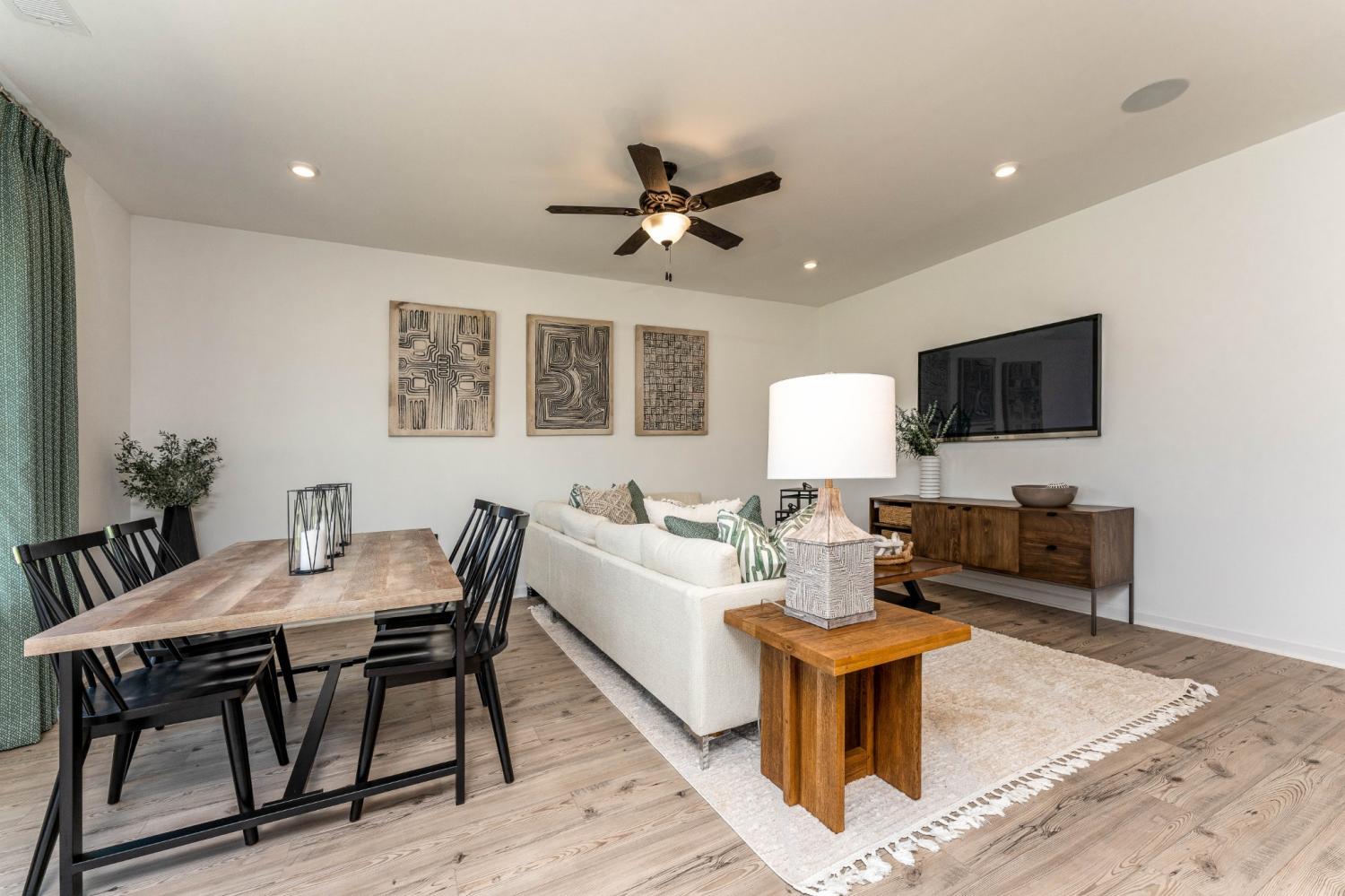 The Phoenix at The Groves of Chapel Hill by Smith Douglas Homes. The Phoenix is the epitome of great use of space. The kitchen offers a large island with a breakfast bar open to the family room. The thoughtful design of the secondary bedrooms provides extra noise isolation from the front entry hall. If you don't need a third bedroom, a dining room adjacent to the family room is available. With a split bedroom design, the owner's suite is situated at the back of the home, away from it all. To be built home. Photos are representative. Contact listing agent for details.