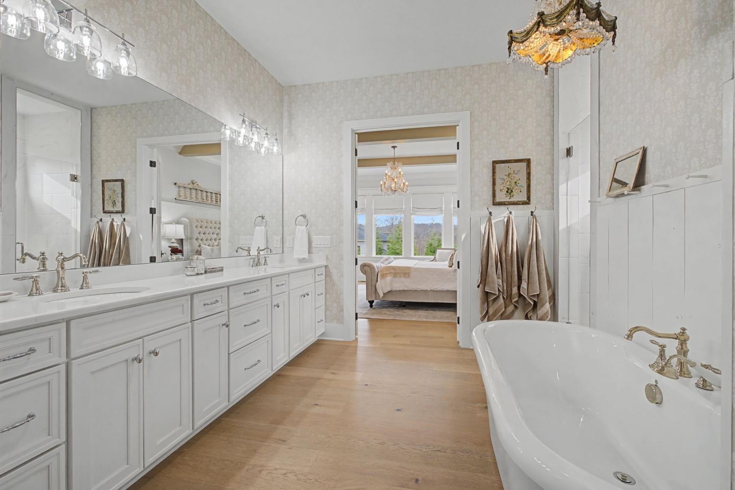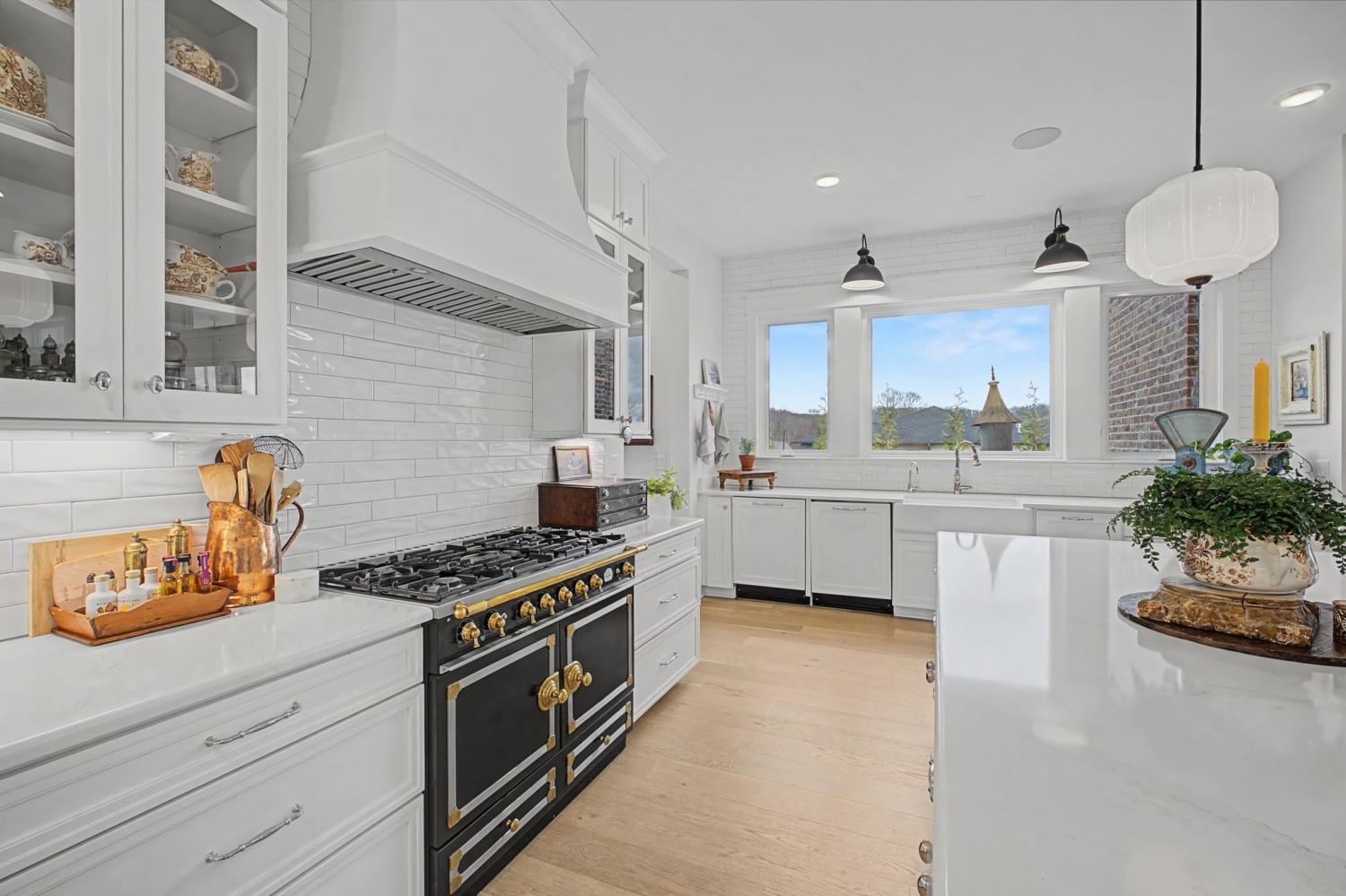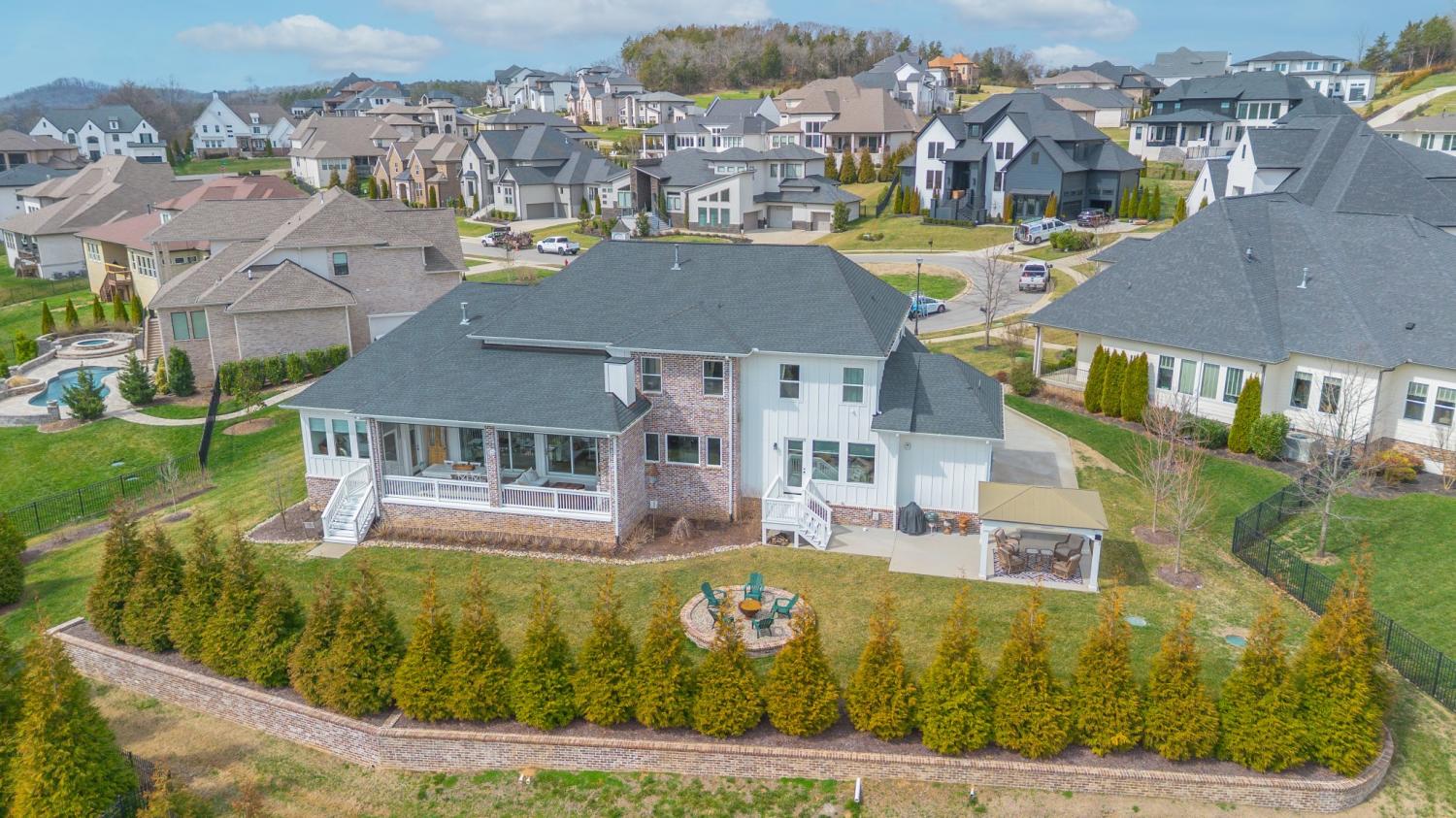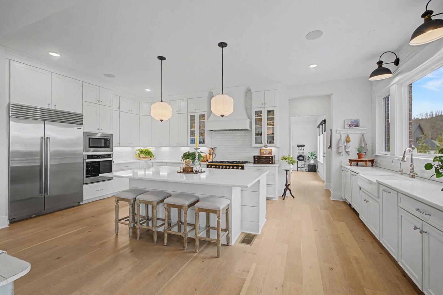 When viewing on Zillow, see the virtual tour at the bottom of facts and features section. Exceptional custom home in the heart of Franklin offering luxury finishes, thoughtful design, and incredible indoor-outdoor living. The chef’s kitchen is a true centerpiece featuring a French La Cornue 6-burner range with double ovens, built-in Sub-Zero refrigerator, additional wall oven, and two dishwashers—perfect for entertaining. The main level includes a spacious primary suite and guest suite, both with private en-suite baths and walk-in closets. Upstairs offers three large en-suite bedrooms, each with walk-in closets, plus a 20x20 bonus room and expansive walk-in attic storage. Enjoy seamless indoor-outdoor living with a large front porch and a stunning back porch with retractable screens, fireplace, and built-in speakers overlooking the private backyard. Outdoor features include a cement patio ideal for grilling and dining, a brick fire pit gathering area, and mature evergreen trees providing excellent privacy. The home is equipped with a whole-home sound system with speakers in the front porch, family room, kitchen, primary bedroom, and back patio, along with surround sound, CAT6 wiring throughout, alarm system, tankless water heater, and abundant storage. The 3-car garage includes 220V stub-in and a large safe that remains. Washer, dryer, safe, and home audio equipment all convey. This property blends high-end craftsmanship, technology, and outdoor living in one of Franklin’s most desirable settings.