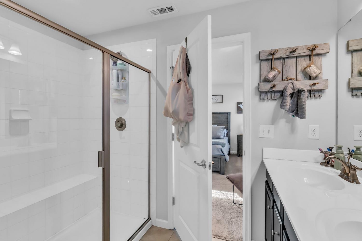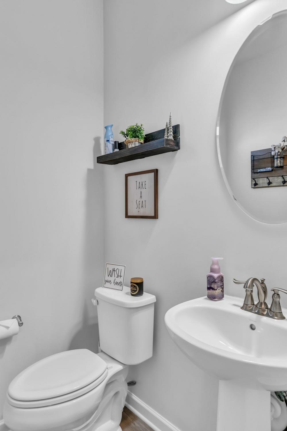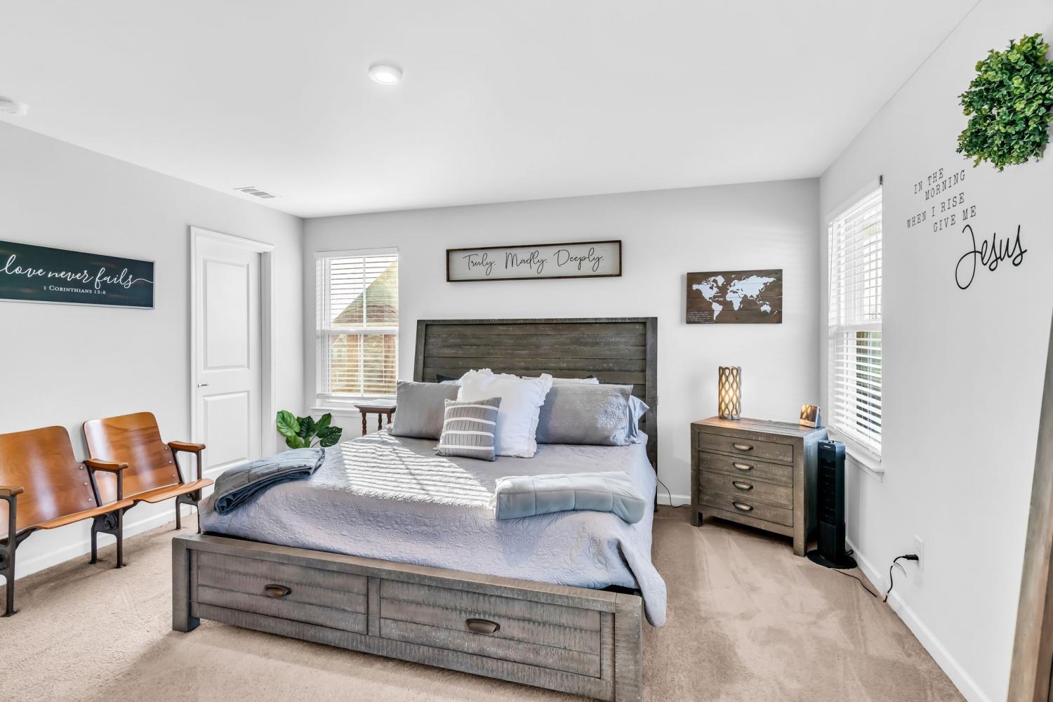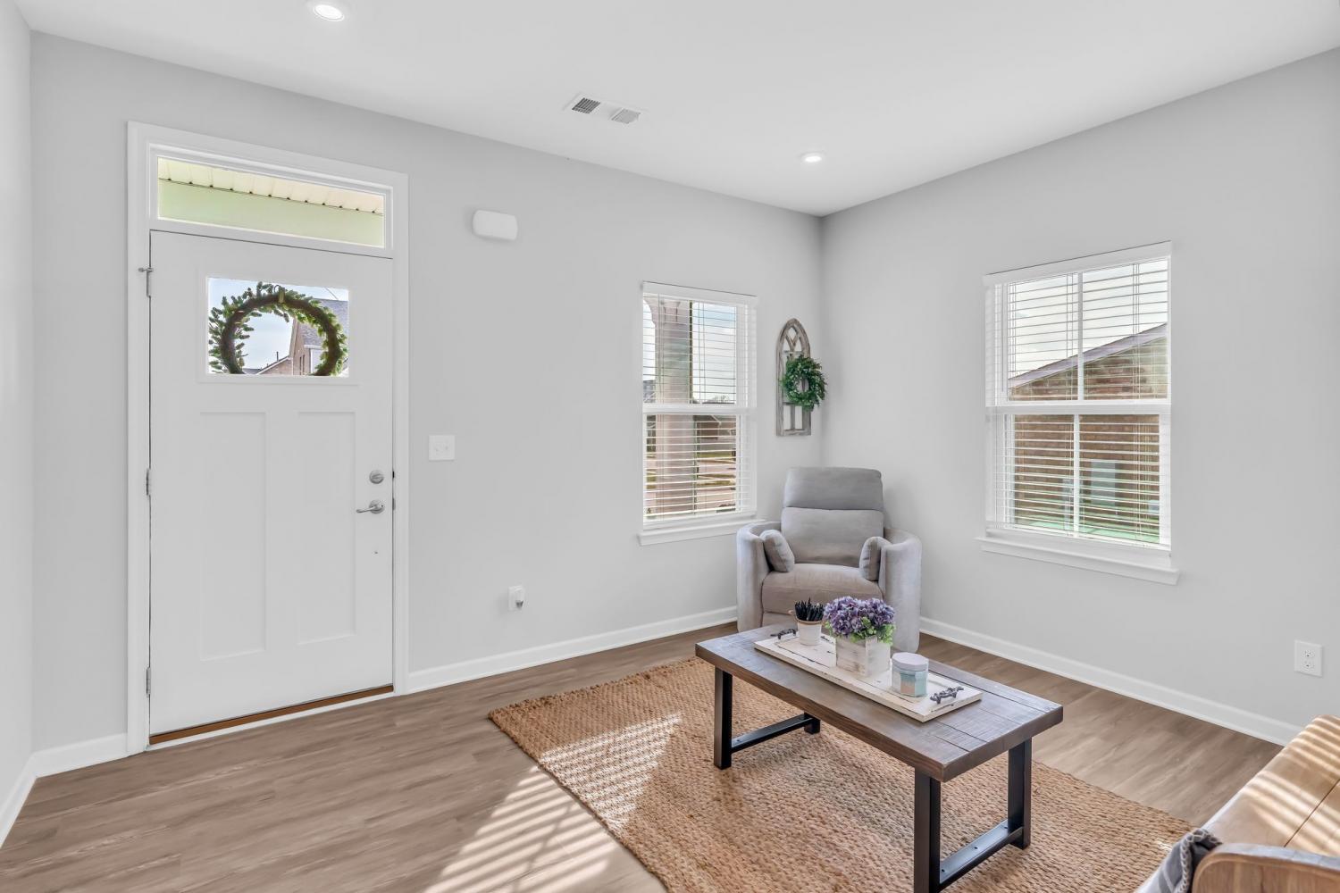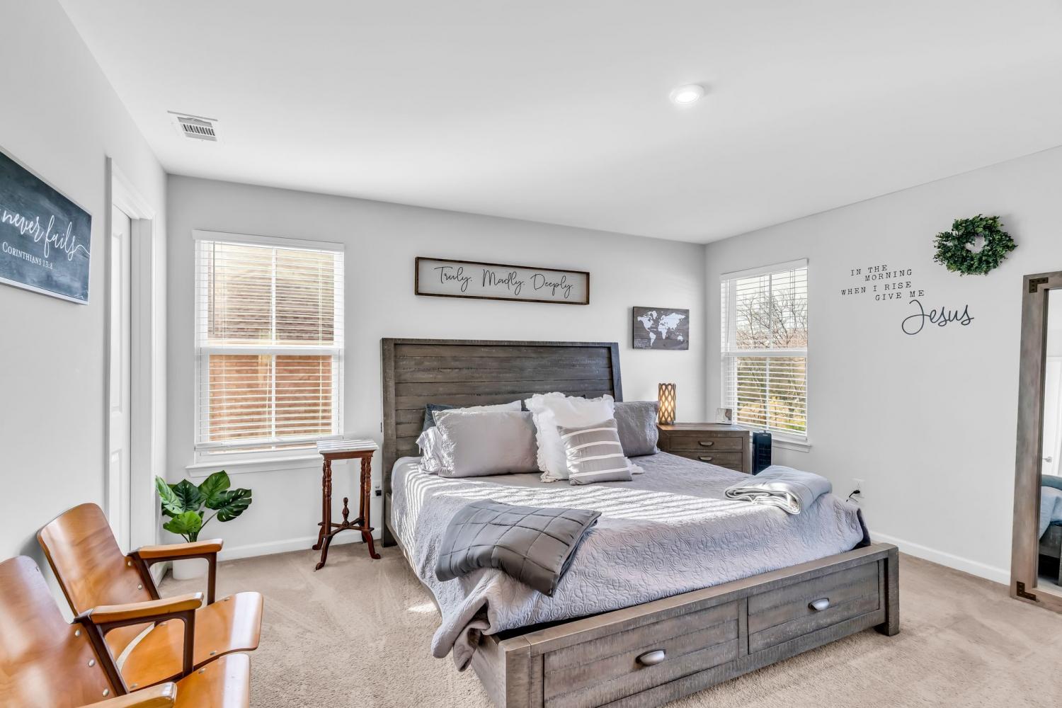 This inviting 4-bedroom, 2.5-bath home is located in the desirable Liberty Creek school zone (Howard Elementary, Liberty Creek Middle and High Schools). It offers an open floorplan and a convenient location close to SR 109 and SR 386 (Vietnam Veterans Blvd), making commuting to Gallatin, Hendersonville, or Nashville easy. The main living area features a cozy electric fireplace with shiplap surround and wood mantel, neutral tones, and plush carpeting. The kitchen flows seamlessly into the family and dining spaces, with dark cabinetry, granite countertops, a large island with bar seating, stainless appliances (the refrigerator remains with the home), and plenty of natural light. Upstairs are four spacious bedrooms, including the primary suite and a convenient laundry room with washer and dryer that convey with the property. Enjoy the backyard deck for outdoor relaxation. The exterior boasts gray siding and brick, white trim, a welcoming front porch, and attractive curb appeal.