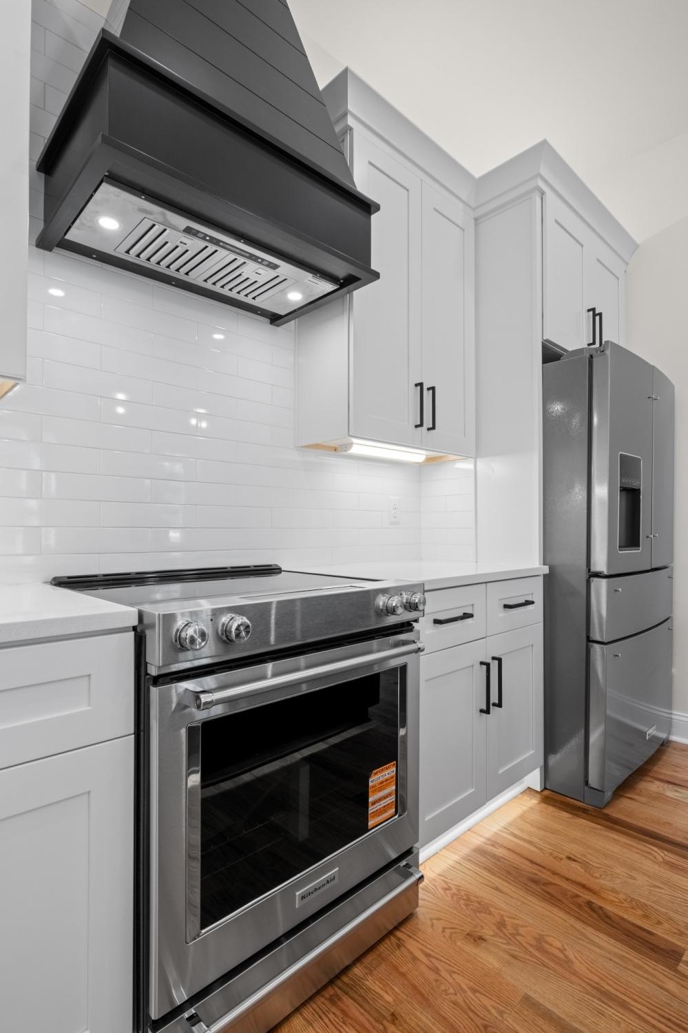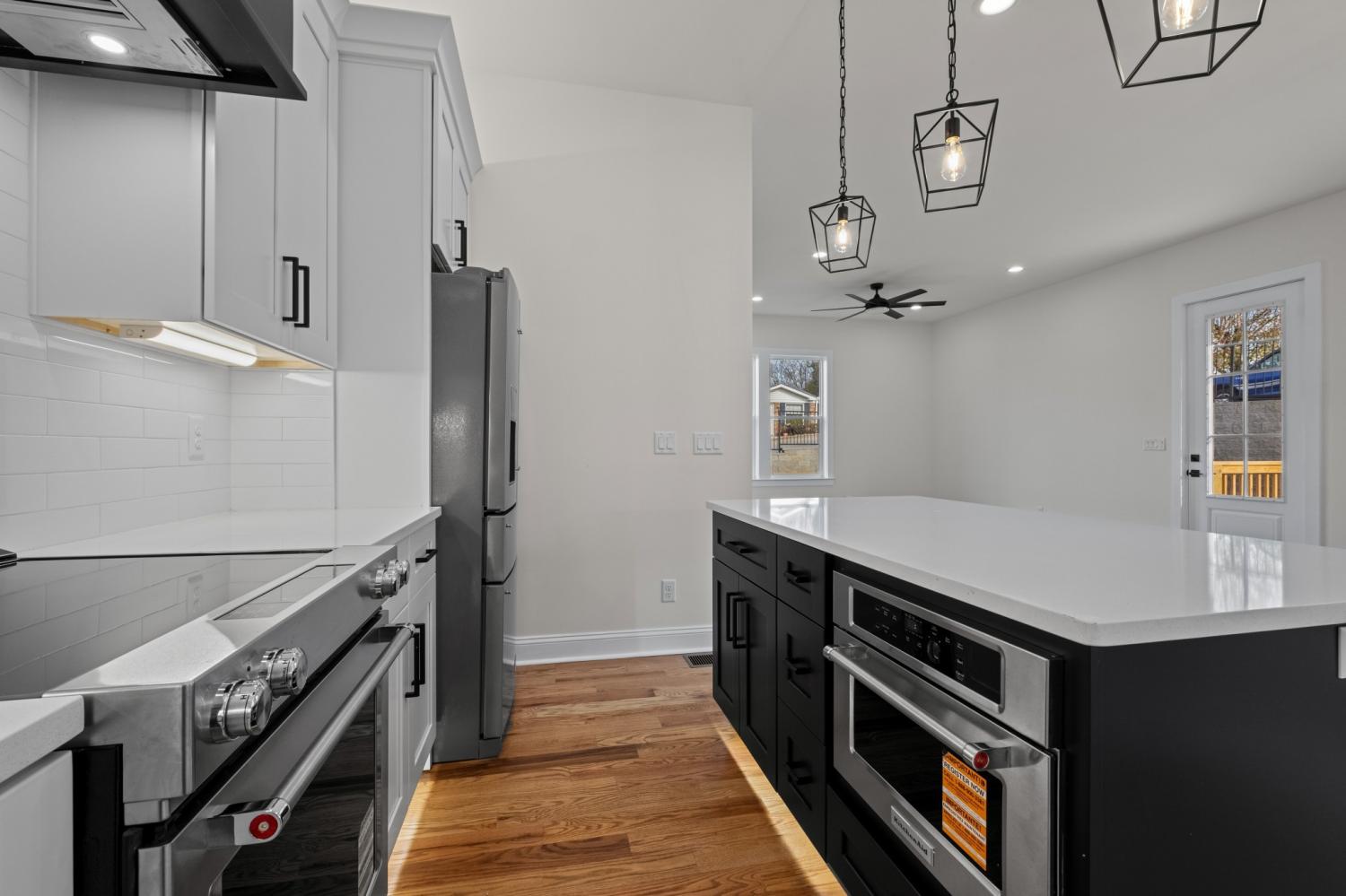 Brand-new construction with clean lines, a timeless brick exterior, and a rare combo of attached 2-car garage and fenced backyard. Inside, you’ll love the warm sand and finish hardwoods, modern trim work, and a thoughtful entry drop zone with built-in bench and storage that keeps daily life organized. The main level is designed for easy entertaining—an open living space flows right into a cook's kitchen featuring quartz countertops, a large island, stainless appliances, a statement vent hood, stylish lighting, and crisp cabinetry with matte-black hardware. Step outside to enjoy the private yard—perfect for pets, play, or weekend grilling. Upstairs offers flexible space for a office, plus a standout primary suite with a vaulted ceiling and designer accent wall. The spa-like bath includes a dual vanity, oversized tiled shower with frameless glass, and a generous walk-in closet. Move-in ready, beautifully finished, and built for how you actually live. Built with 2x6 exterior stud construction and backed by a 1-year builder’s warranty. Less than 4 miles to Downtown.
