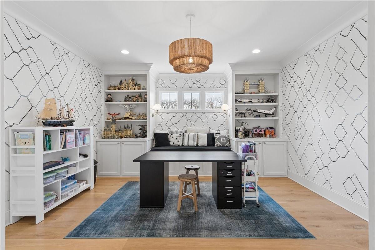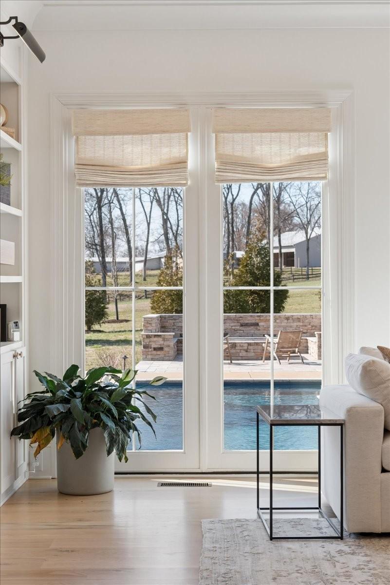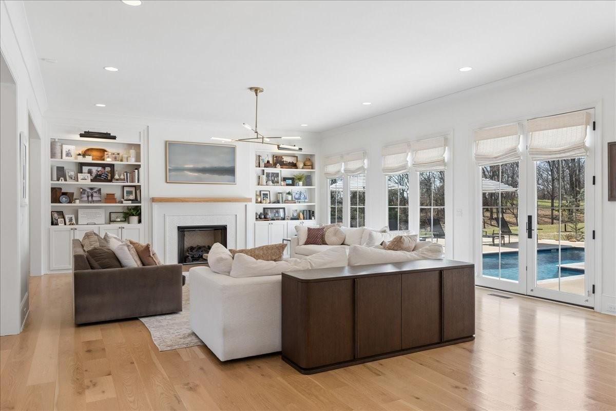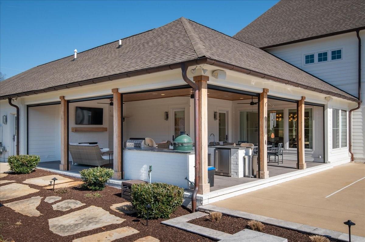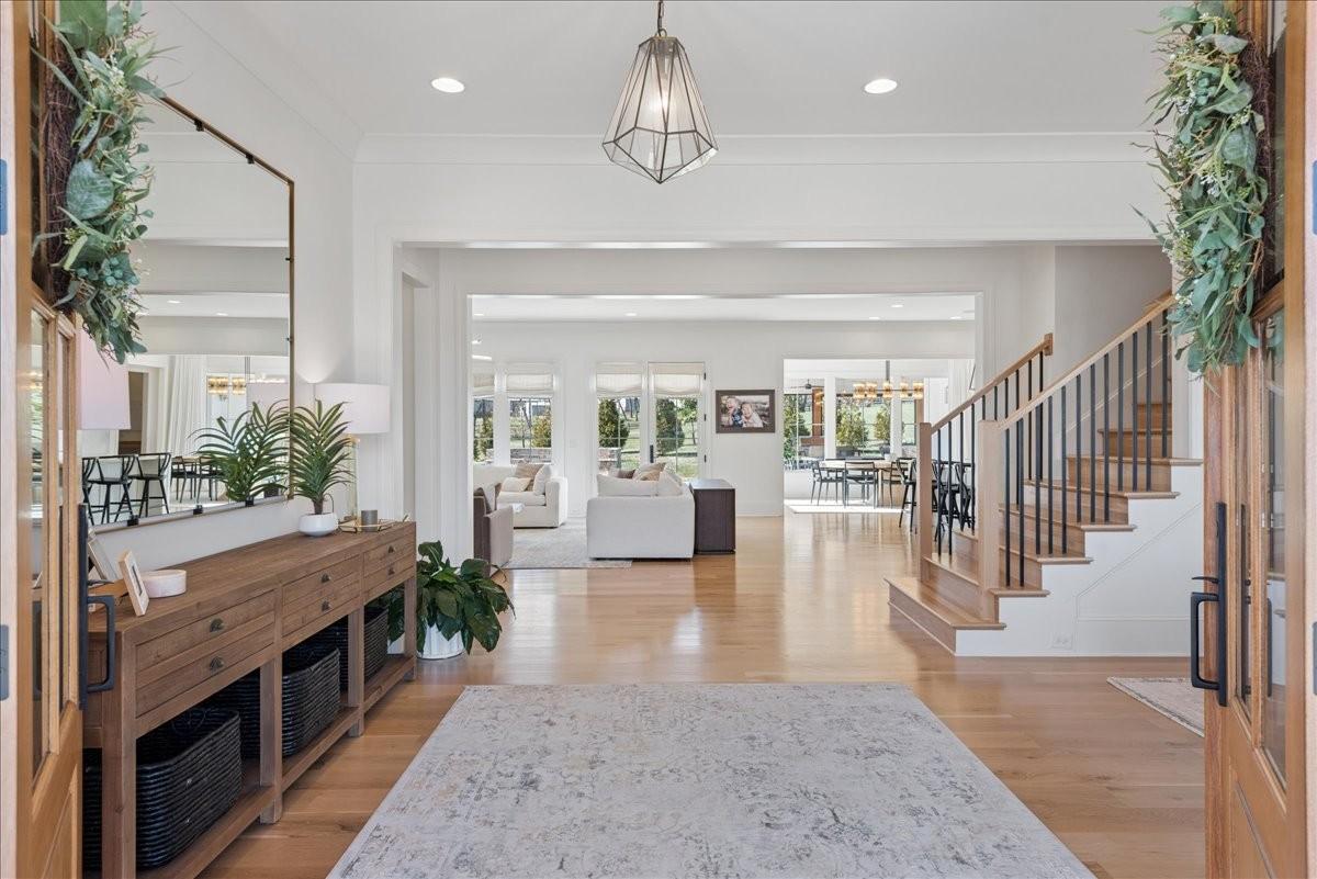 Stunning custom-built home offering exceptional craftsmanship, designer finishes, and resort-style outdoor living. Thoughtfully designed w/expansive spaces throughout, the main level features a grand living room with custom built-in cabinetry and seamless flow into the chef’s kitchen, complete with premium Thermador appliances, an oversized island, and a generous walk-in pantry outfitted with beverage drawers, a second dishwasher, and a second garbage disposer. The spacious primary suite is a true retreat, showcasing a spa-inspired bath with steam shower, custom cabinetry, and built-in closet shelving. The main floor also includes a private office, formal dining room, breakfast nook, mud room with built-ins, laundry room with dog wash station, and a convenient pool-access bath. Upstairs, you’ll find three oversized bedrooms, a study, and an impressive bonus room with custom built-ins. In total, the home offers four bedrooms, multiple flex spaces, four full baths, and three half baths. Outdoor living is unmatched, featuring a professionally maintained fiberglass pool with a new heater, a fully equipped outdoor kitchen with Perlick ice maker, refrigerator, Big Green Egg, and Coyote gas grill, plus motorized screens and shades for year-round enjoyment. Firepit, landscape lighting, and mature trees provide a private backyard retreat. Additional highlights include a whole-home generator, tankless water heater, copper gutters, three Trane HVAC units with Ecobee smart thermostats, Control4 home automation system controlling lighting, sound, and video, built-in speakers throughout, exterior security cameras & driveway alarm, custom window treatments, and an oversized garage with Gladiator wall panel storage system. This extraordinary property perfectly blends luxury, technology, and comfort for both everyday living and exceptional entertaining. Truly, this home is unlike any other, with custom touches and attention to detail that make it absolutely exceptional.