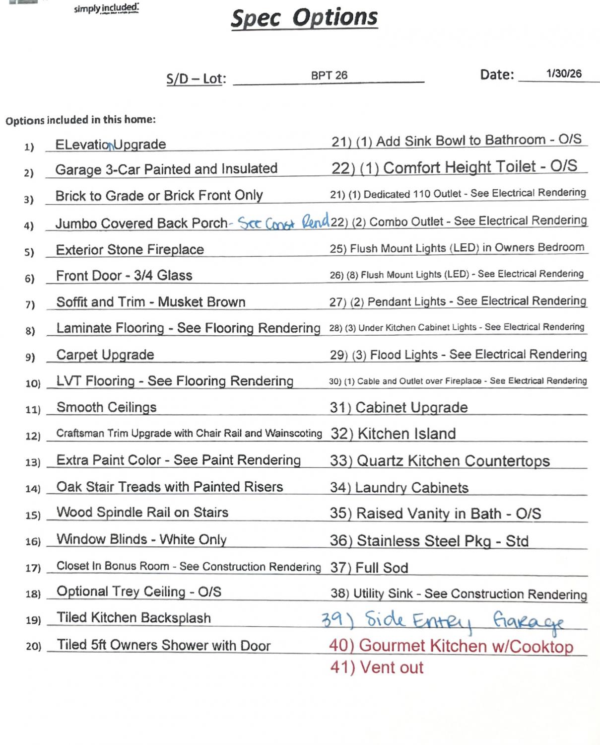 Plan (2151 Elevation DEF) 3 car garage! Some stock photos. Framed 3/7/26. Wonderful Jumbo covered back porch with fireplace. Three bedrooms down, nice bonus room with door and closet. 3 full bathrooms! Gourmet kitchen. Our most requested floorplan year after year. Upgraded features of smooth ceilings, tray ceilings, insulated/painted garages, full kitchen appliance package in stainless. One level living with upstairs bonus/bath. 2151 plan. Only $99 in closing costs and $99 earnest money at contract! We make home ownership EZ! To see same plan further along see lot 67 on Montana at top of the hill