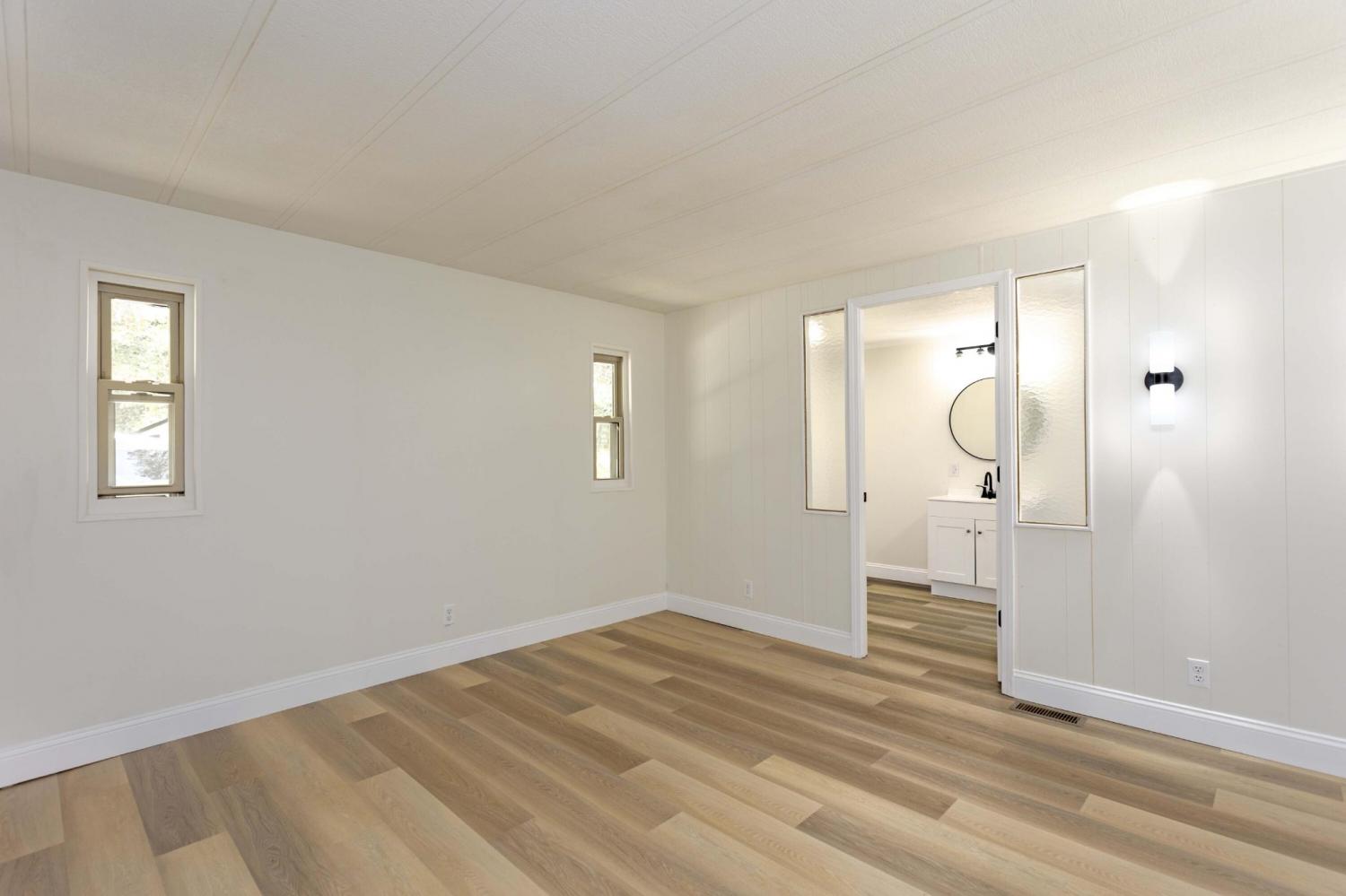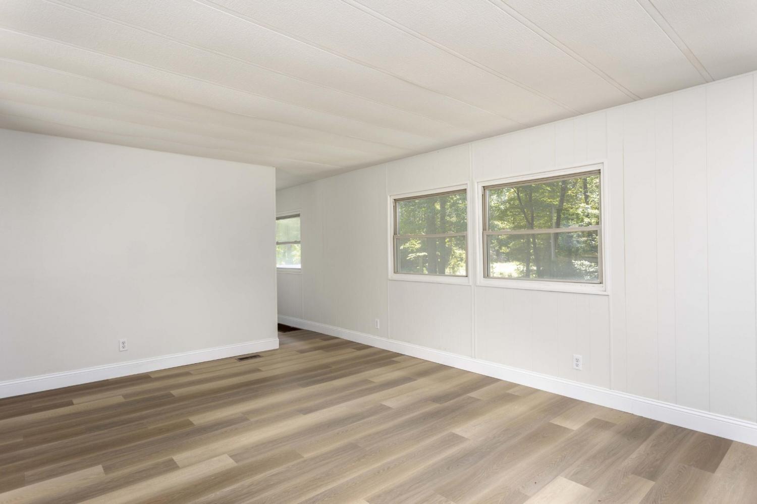 Renovated 2BR/2BA Single Wide Home on 5.8 Acres!! Discover the perfect blend of comfort and tranquility in this fully renovated 2-bedroom, 2-bathroom single wide home situated on an expansive 5.8-acre lot. This charming residence feels like a brand new home, offering modern updates amid serene natural surroundings. The heart of the home is the inviting kitchen, featuring brand new stainless steel appliances, including a refrigerator and stove. The layout promotes seamless flow into the cozy living spaces, perfect for entertaining or relaxing. Retreat to the primary bathroom, which boasts a luxurious walk-in shower designed with modern aesthetics. The guest bath is equally impressive, equipped with a convenient tub/shower combo and stylish fixtures that enhance the overall appeal. Outside, the property features brand new vinyl siding and a new roof, ensuring durability and low maintenance. The wooded backyard offers a private oasis, perfect for enjoying nature or hosting gatherings with friends and family. This single wide home is a rare find, offering a peaceful retreat with ample space to roam. Don't miss the opportunity to make this charming property your own. Schedule your showing today!