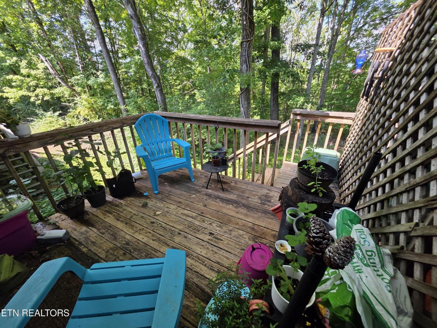 Attention investors! Living room, dining room bathroom/laundry room and dryer and kitchen displaying tile flooring through main level. Includes washer and dryer. Kitchen includes refrigerator stove dishwasher and disposal. Dining room has sliding glass doors out to deck overlooking wooded backyard. Upper level provides two large bedrooms with walk in closets, ceiling fans and full bath with tub shower in hallway. Owners suite has pull down ladder for additional storage and attic. Access parking right in front of your unit. Centrally located to all shopping and restaurants. Easy access to Knoxville.