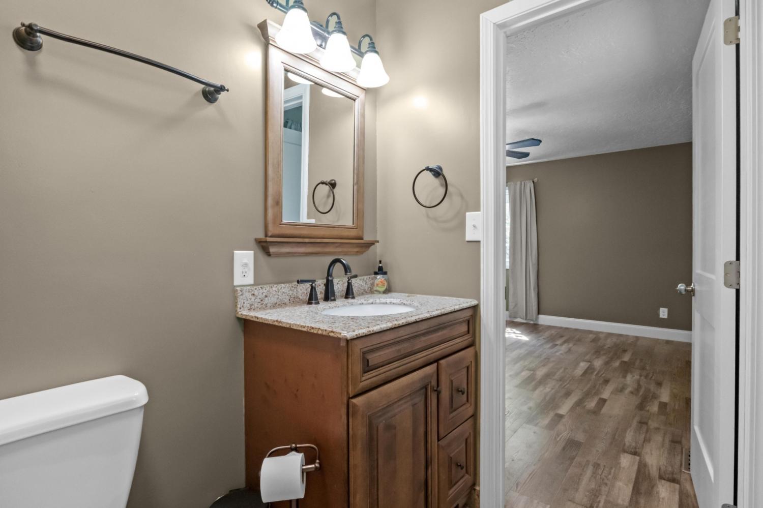 SELLER IS OFFERING A 1-YEAR HOME PROTECTION PLAN—giving you added peace of mind when purchasing this home! Welcome to 5 Eagle Creek Loop, a charming three-bedroom, two-bath home located just half a mile from Kentucky Lake and Paris Landing State Park and marina. This inviting home features an open-concept layout with vaulted ceilings in the living room and kitchen, creating a bright and spacious atmosphere perfect for everyday living and entertaining. The kitchen has been updated with modern countertops, cabinets, and flooring, while both bathrooms feature stylish tile finishes. In addition to the three bedrooms, there’s a versatile extra room that could easily serve as a fourth bedroom, a spacious home office, or even a game room. A generous utility room provides plenty of storage and functionality to meet your daily needs. Step outside and unwind on the beautiful covered back porch—an ideal space for relaxing after a day on the water or hosting friends and family. With summer right around the corner, this home offers the perfect opportunity to own a place near the lake where you can spend your days boating, fishing, and enjoying everything the area has to offer. With its prime location, thoughtful updates, and past use as a successful Airbnb, this property offers the perfect blend of comfort, convenience, lifestyle, and potential income.