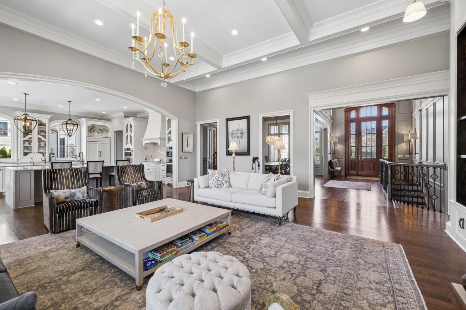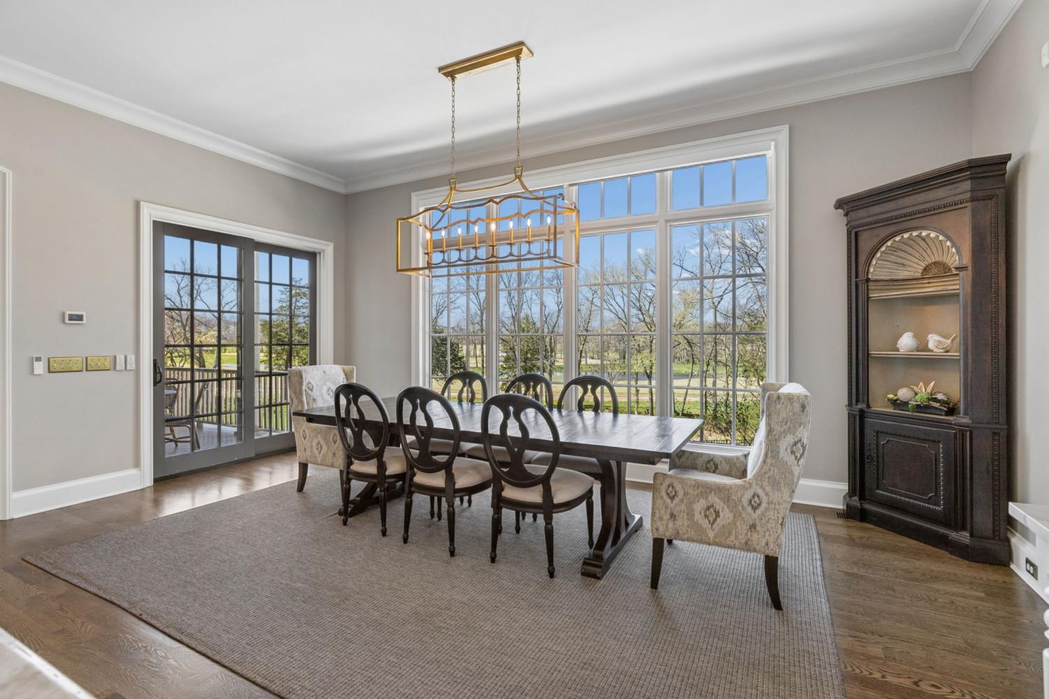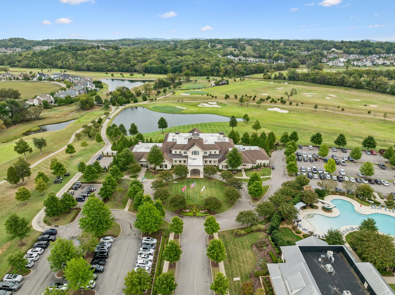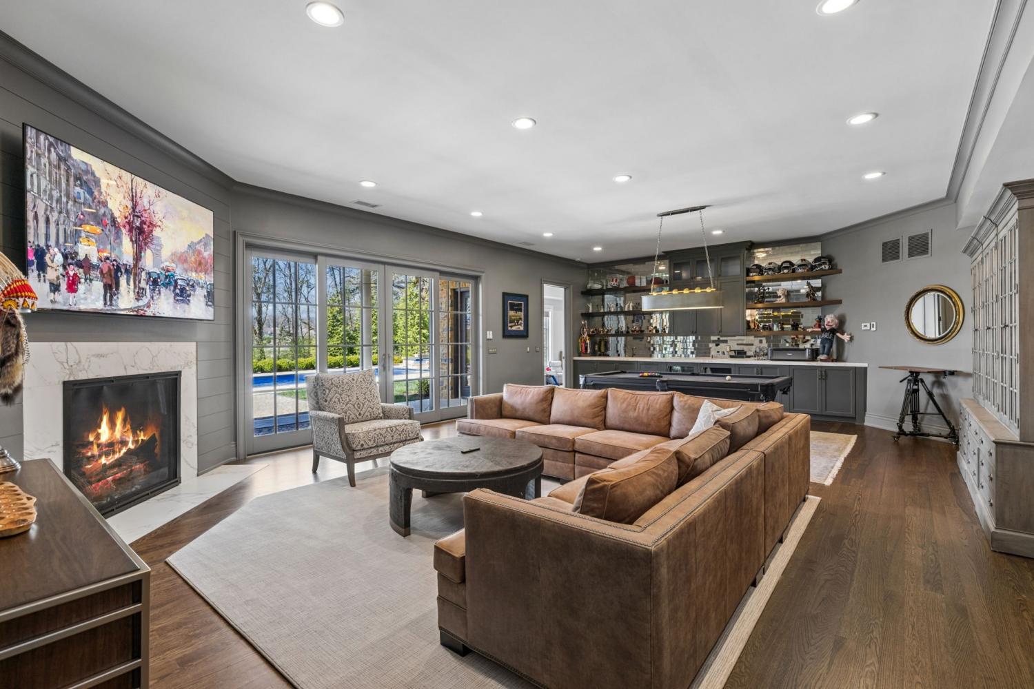 Set along the 10th hole of The Grove’s Greg Norman-designed course, this nearly 10,000-square-foot estate is one of the largest and most versatile homes in the community—designed for both large-scale entertaining and private, resort-style living. Recently expanded with a 2,000-square-foot addition and thoughtfully upgraded throughout, the home offers a rare combination of scale, flexibility, and sweeping golf course views framed by the rolling Tennessee hills. The outdoor living experience anchors the property, featuring a newly built pool, multiple covered and open-air gathering spaces, and uninterrupted vistas across the course. Designed for effortless entertaining, the home seamlessly connects indoor and outdoor living—from the game room that opens directly to the pool, to the covered grilling area and sunroom that extend the living space year-round. Inside, the layout is equally dynamic. With six bedrooms—including two on the main level—and a private lower-level entrance, the home is ideally suited for multi-generational living, guest privacy, or extended stays. Dedicated spaces for fitness, recreation, and storage add to the home’s livability without sacrificing flow or design. Custom features throughout—including built-ins, geothermal heating, electric shades, and oversized garage capacity—reflect a level of thoughtful planning rarely found at this scale. Positioned to capture one of the most sought-after vantage points in The Grove, the home also offers a direct view of the community’s Fourth of July fireworks from its private balcony—an experience that underscores both its setting and its sense of place. Constructed by award-winning Hatcliff Construction/Design, the property pairs architectural integrity with modern upgrades in one of Middle Tennessee’s most amenitized private communities, offering golf, dining, spa, fitness, tennis, pools, and equestrian programming. Homes of this size, position, and flexibility rarely come to market in The Grove.