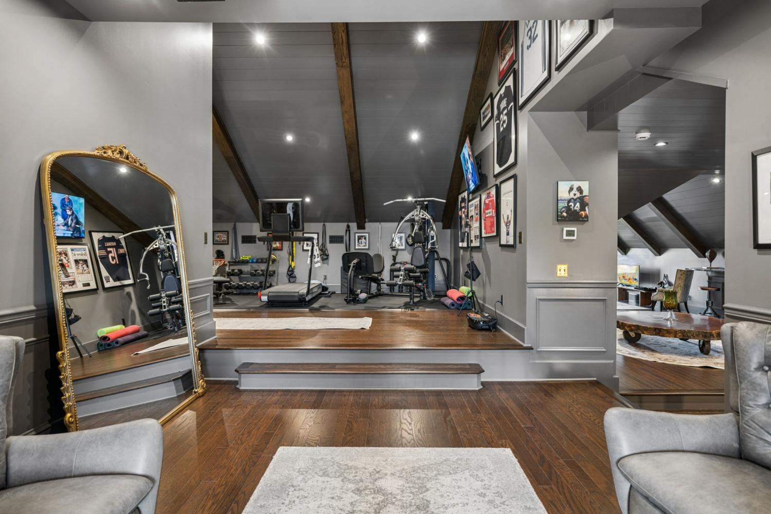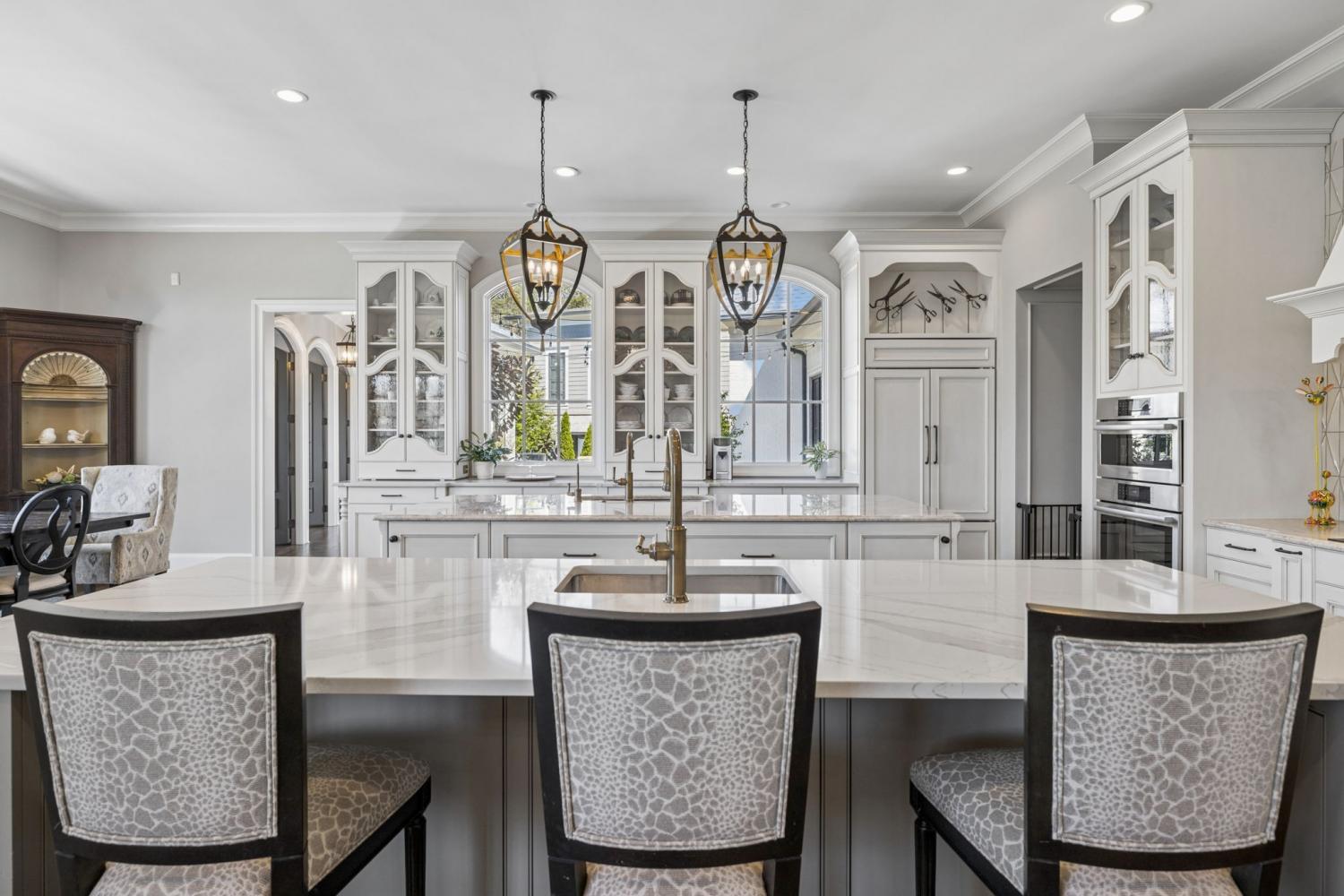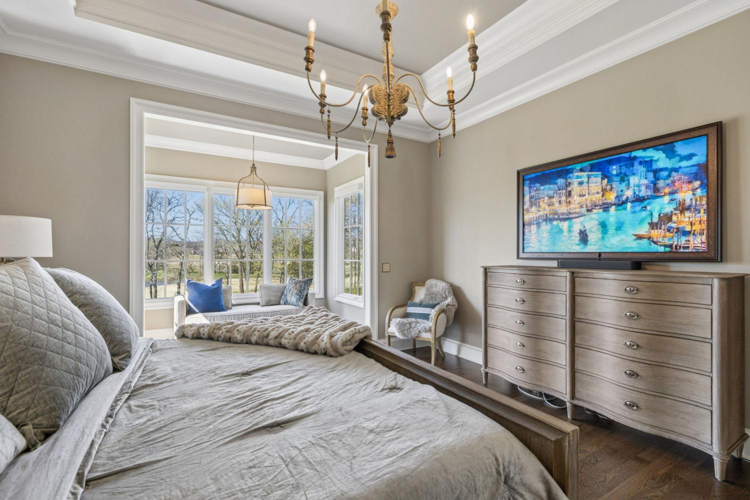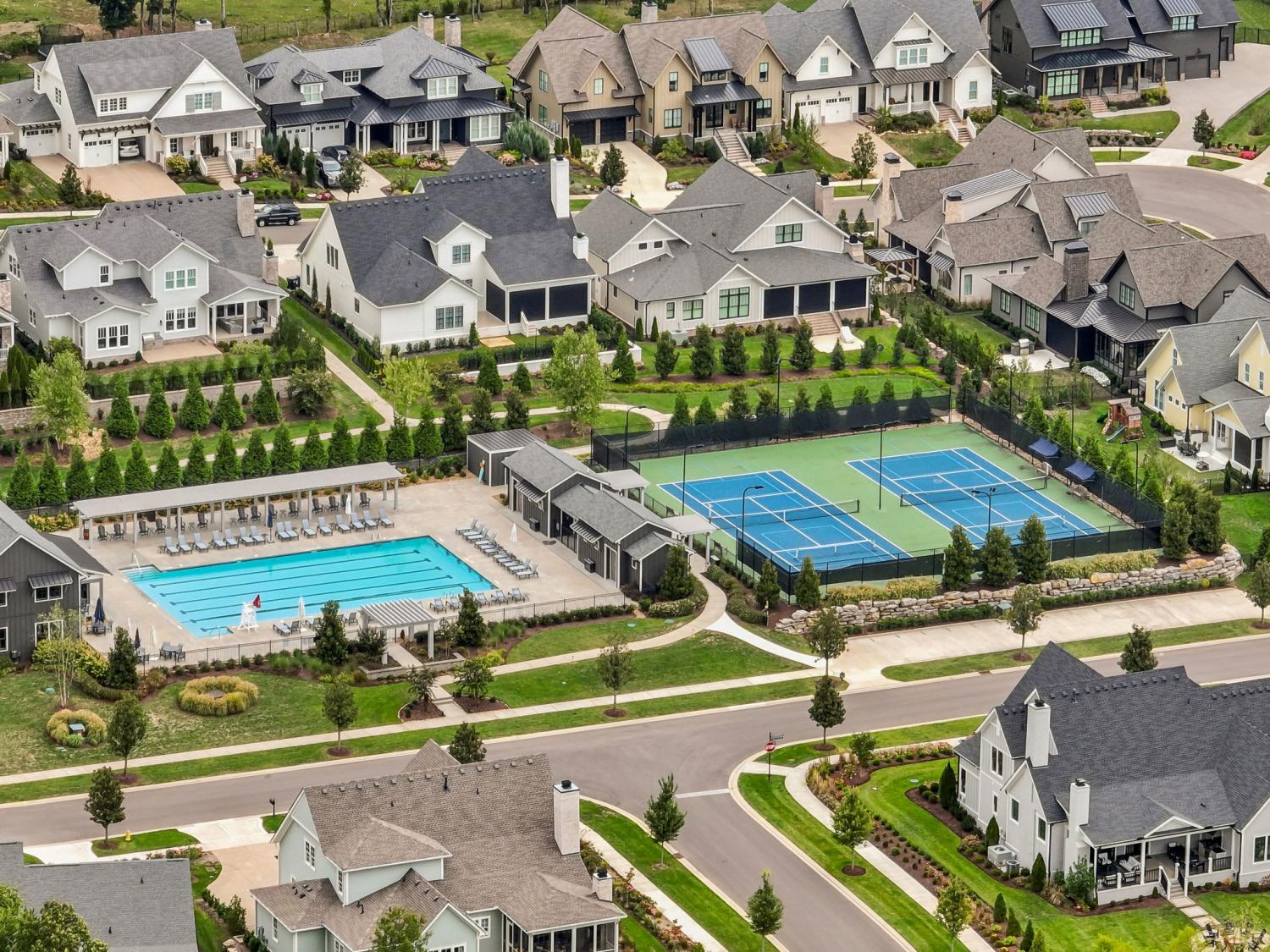 Set along the 10th hole of The Grove’s Greg Norman-designed course, this nearly 10,000-square-foot estate is one of the largest and most versatile homes in the community—designed for both large-scale entertaining and private, resort-style living. Recently expanded with a 2,000-square-foot addition and thoughtfully upgraded throughout, the home offers a rare combination of scale, flexibility, and sweeping golf course views framed by the rolling Tennessee hills. The outdoor living experience anchors the property, featuring a newly built pool, multiple covered and open-air gathering spaces, and uninterrupted vistas across the course. Designed for effortless entertaining, the home seamlessly connects indoor and outdoor living—from the game room that opens directly to the pool, to the covered grilling area and sunroom that extend the living space year-round. Inside, the layout is equally dynamic. With six bedrooms—including two on the main level—and a private lower-level entrance, the home is ideally suited for multi-generational living, guest privacy, or extended stays. Dedicated spaces for fitness, recreation, and storage add to the home’s livability without sacrificing flow or design. Custom features throughout—including built-ins, geothermal heating, electric shades, and oversized garage capacity—reflect a level of thoughtful planning rarely found at this scale. Positioned to capture one of the most sought-after vantage points in The Grove, the home also offers a direct view of the community’s Fourth of July fireworks from its private balcony—an experience that underscores both its setting and its sense of place. Constructed by award-winning Hatcliff Construction/Design, the property pairs architectural integrity with modern upgrades in one of Middle Tennessee’s most amenitized private communities, offering golf, dining, spa, fitness, tennis, pools, and equestrian programming. Homes of this size, position, and flexibility rarely come to market in The Grove.