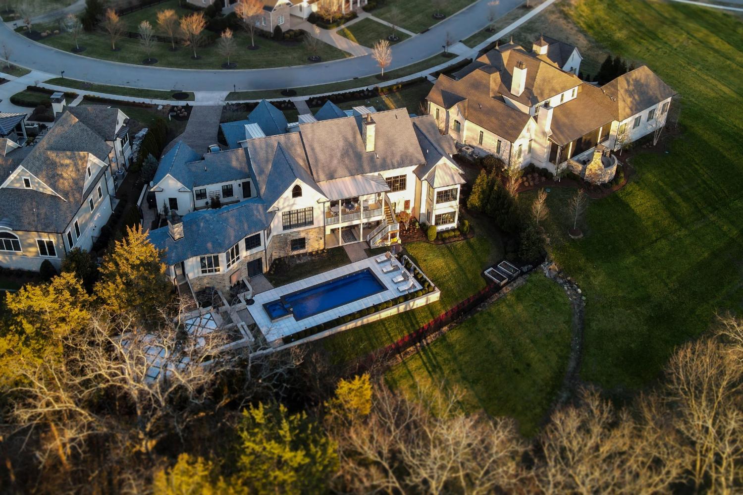 This house was made for memory-making! New pool, new roof, new 2000 ft addition. Includes a private backyard with huge vistas overlooking the Greg Norman-designed golf course, several ponds, and 30+ undisturbed acres with views of the beautiful Tennessee hills. Home includes many built-ins, a game room that leads to the pool, a sunroom that leads to an outdoor covered grill area, a gym, geothermal heating, large storage areas, private outdoor spaces, a child's outdoor under-the-stairs playhouse, oversized garages, electric shades. Three gas fireplaces. The fabulous pool, complete with a great view of the outside TV, is perfect for family fun, and the equipment is housed inside for easy maintenance ~ This dreamy 6-bedroom, 6-bath home has been immaculately maintained and thoughtfully designed. TWO bedrooms on the MAIN floor. No detail was overlooked. Wonderful plan for a multi-generational home. Private entrance for the downstairs area. Perfect for an in-law or a college student. Too many extras to list. This is a must-see. You will have the perfect view from your private balcony for The Grove 4th of July fireworks!~ Constructed by award-winning Hatcliff Construction/Design. The Grove amenities include: golf, fine and casual dining, spa, fitness, outdoor pools, tennis courts, and an equestrian program. You won't want to leave~ Golf or Sports Membership is required with deposit.