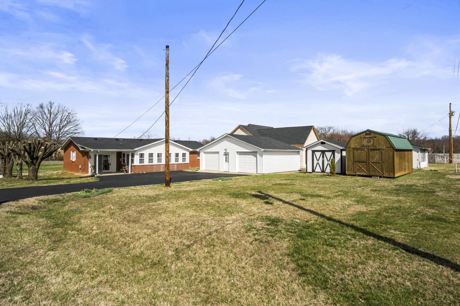 Freshly remodeled brick home on large corner lot. New roof on house, garage, and small shed. New appliances are less than 9 months old, and the water heater & tub/shower were replaced since October 2024. New heater in den. Convenient to town.