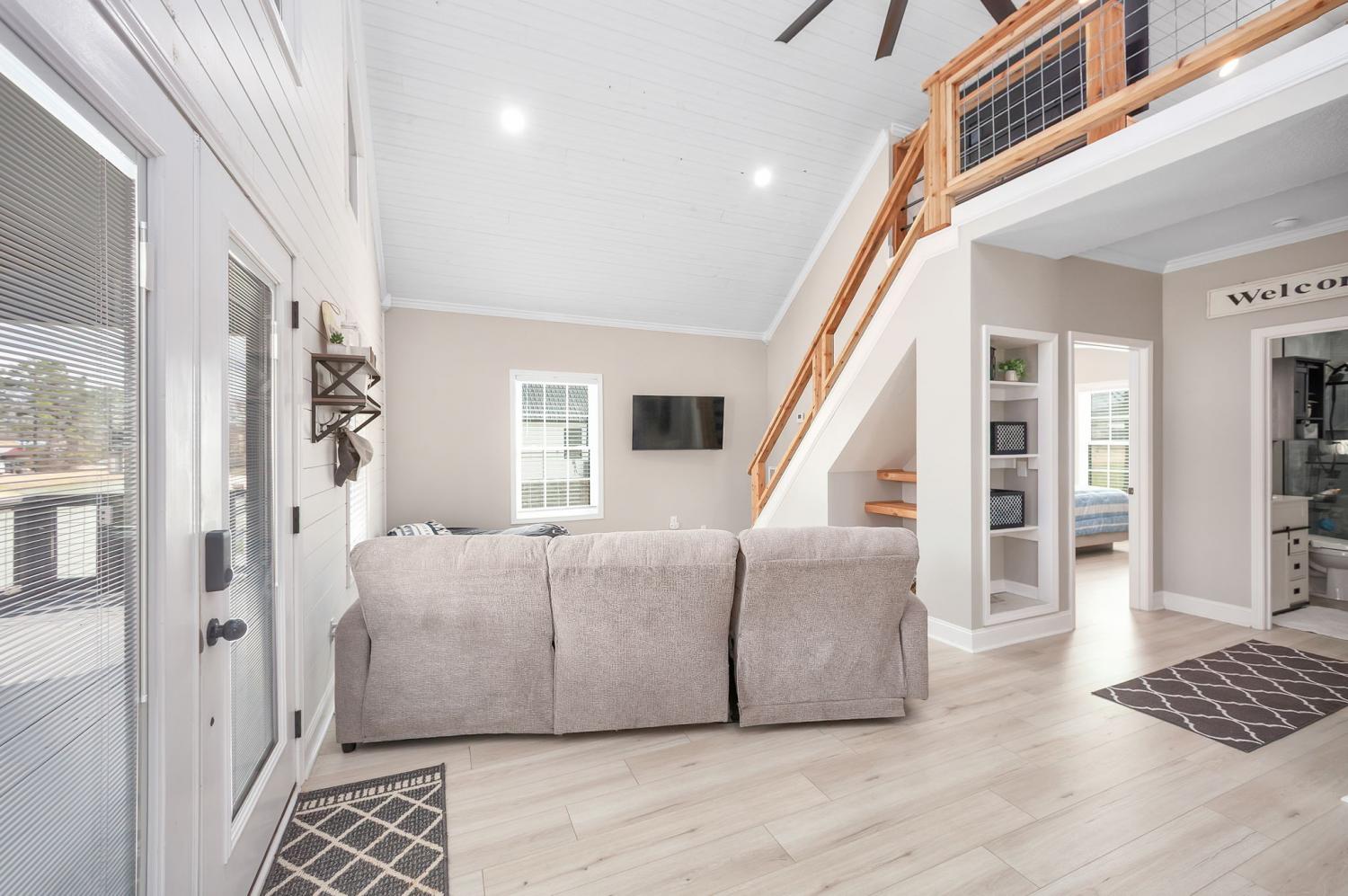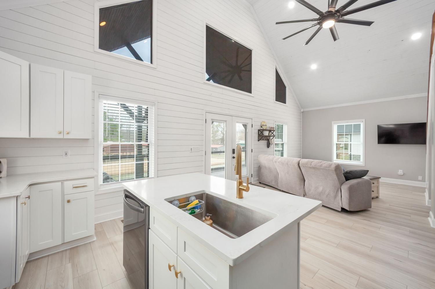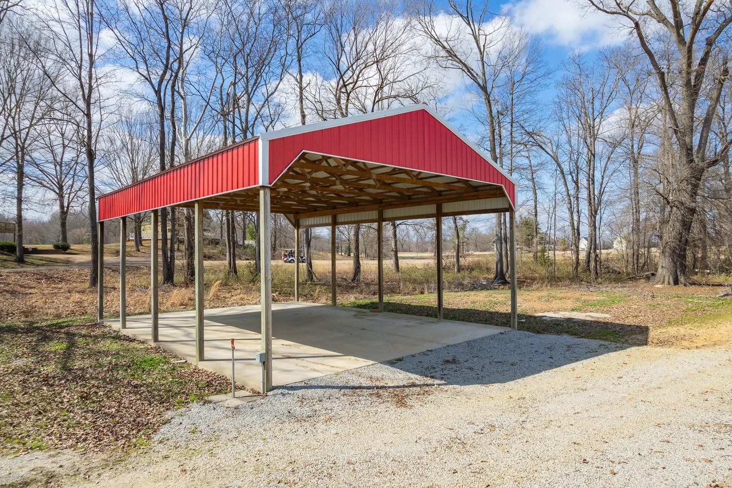 Built in 2024, this 3 bedroom, 2.5 bath home offers a perfect blend of comfort, functionality, and modern style. Inside you will find an upgraded kitchen featuring a convenient island and an inviting eat-in dining area that flows effortlessly into the cozy living space or out to the large covered porch, creating the perfect setting for both everyday living and entertaining. The property also provides abundant covered parking and sits on two spacious lots, offering extra room and flexibility. Outdoor features include a separate RV cover and parking area, a private pond with a dock, a dog run, and an elevator/lift for added convenience. Located adjacent to a golf course and just minutes from the Tennessee River, this property combines recreation with relaxation. The large covered carport area includes a 50-amp RV hookup and water service, creating excellent income potential while allowing the home to be used as a short-term rental or Airbnb opportunity.