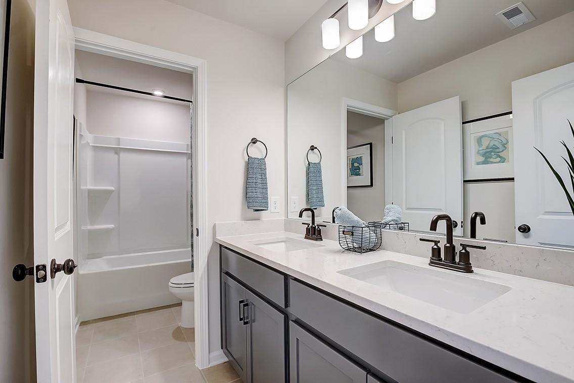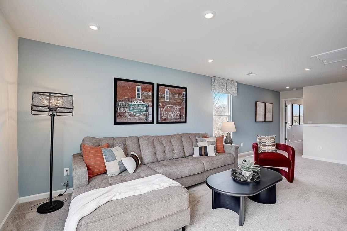 Step into this Woodruff plan at Canebrake at Hickory Hills in Old Hickory, TN—designed to grow with you. Whether you're hosting friends or just managing a busy household, the open-concept main level delivers the space and flow you need. The extended kitchen counters and white cabinets add both style and function, while the center island offers a natural hub for meals, homework, or casual conversation. A downstairs bedroom and full bath offer the perfect setup for guests or multi-generational living. Upstairs, the iron spindle staircase leads to a generous loft—ideal for movie nights, gaming, or simply spreading out. Two secondary bedrooms each include walk-in closets, while the large owner’s suite offers a private escape with its own walk-in closet and spacious bath.