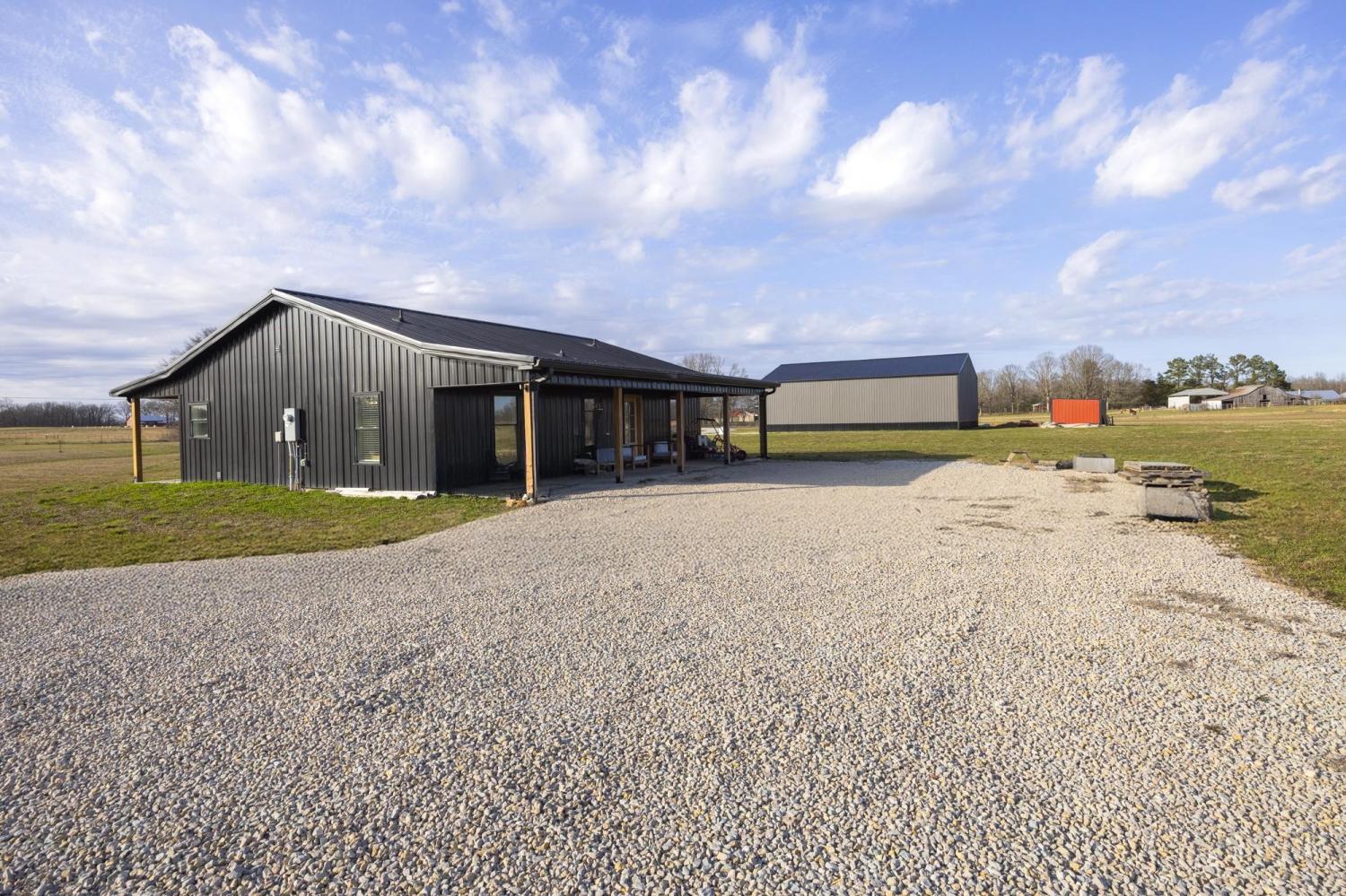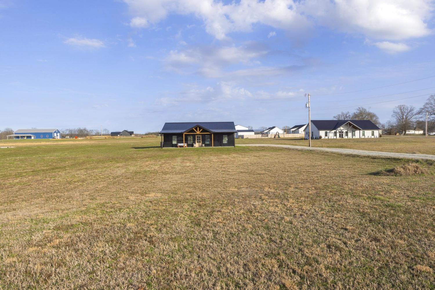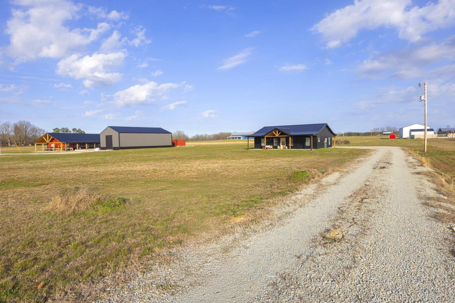 Modern farmhouse on 2 country acres in Summertown, TN! A black metal exterior contrasts beautifully with natural stained wood to provide a striking look. The main living area has a gorgeous vaulted tongue & groove ceiling that extends outside to the covered front & rear porches. This home is designed for ease and comfort with 3 beds and 2 full baths, tiled showers, ceiling fans, stainless steel appliances, quartz countertops, kitchen island, soft-close cabinets, and LVP flooring all on a single, step-free, level. Spray foam insulation helps make the interior energy efficient while porches running the full length of the front & back allow you to take in those perfect mornings and evenings. Skip the wait for new construction with this virtually new, only one-year old, home!