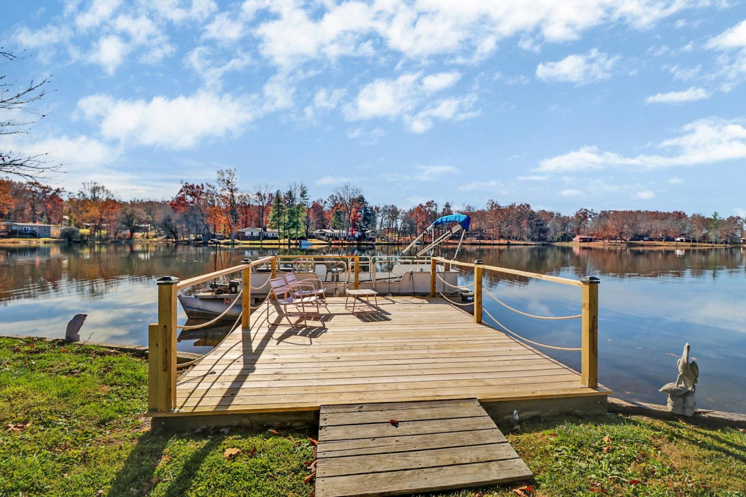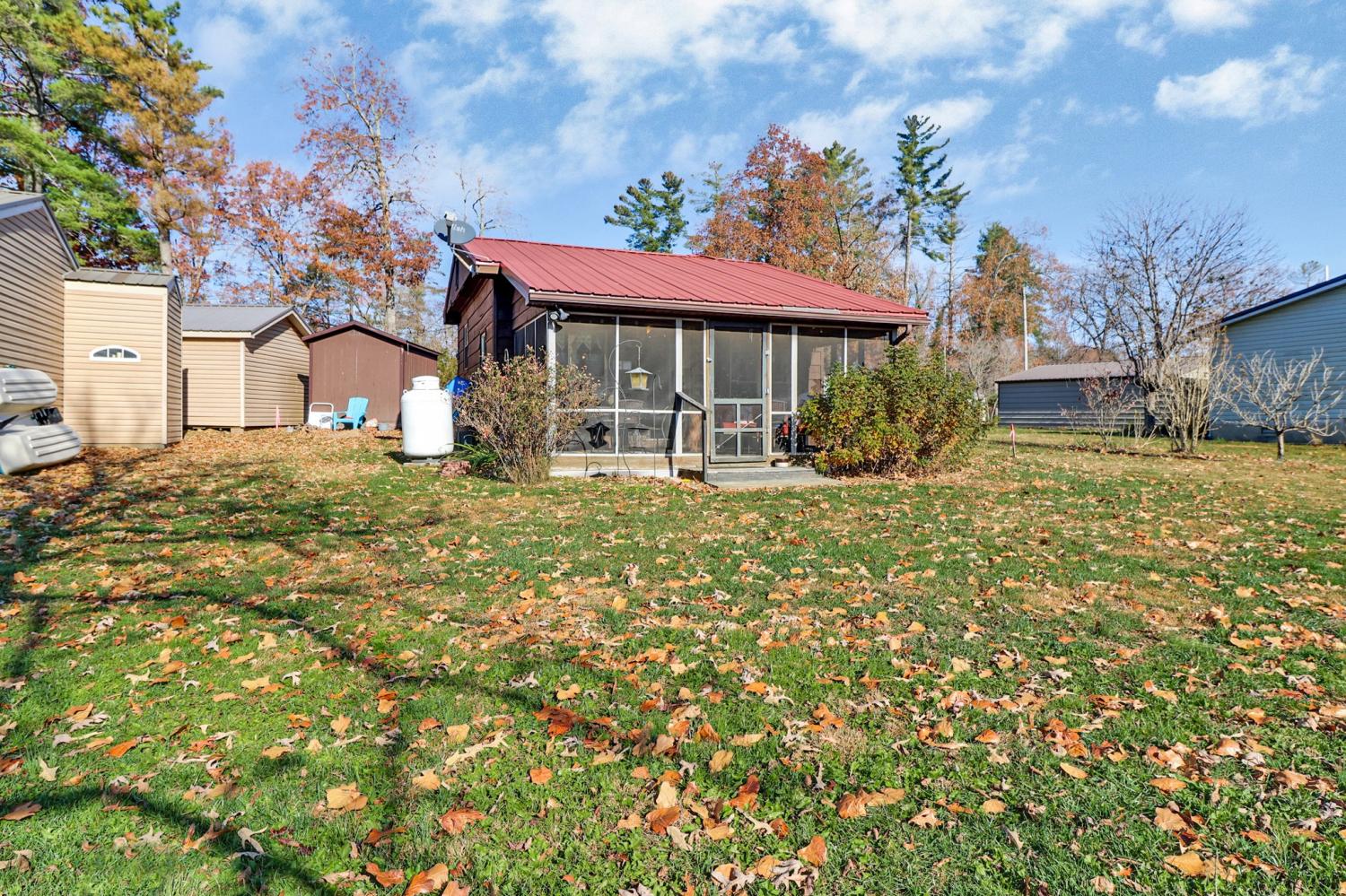 LAKEFRONT COTTAGE on Linger lake, a stocked private lake. This 2 bedroom, 1 bath, 992 sf home boasts wide laminate flooring w/tile in utility & bathroom, handicapped accessible shower, solid pine doors, propane fireplace, NEW dock with electricity, Thermopane-tilt windows, metal roof, 8X12 storage shed, and additional Artisan shed ready for your hobbies! Enjoy the beautiful lake view from your screened porch. Buyer to verify all information and measurements prior to making an offer.