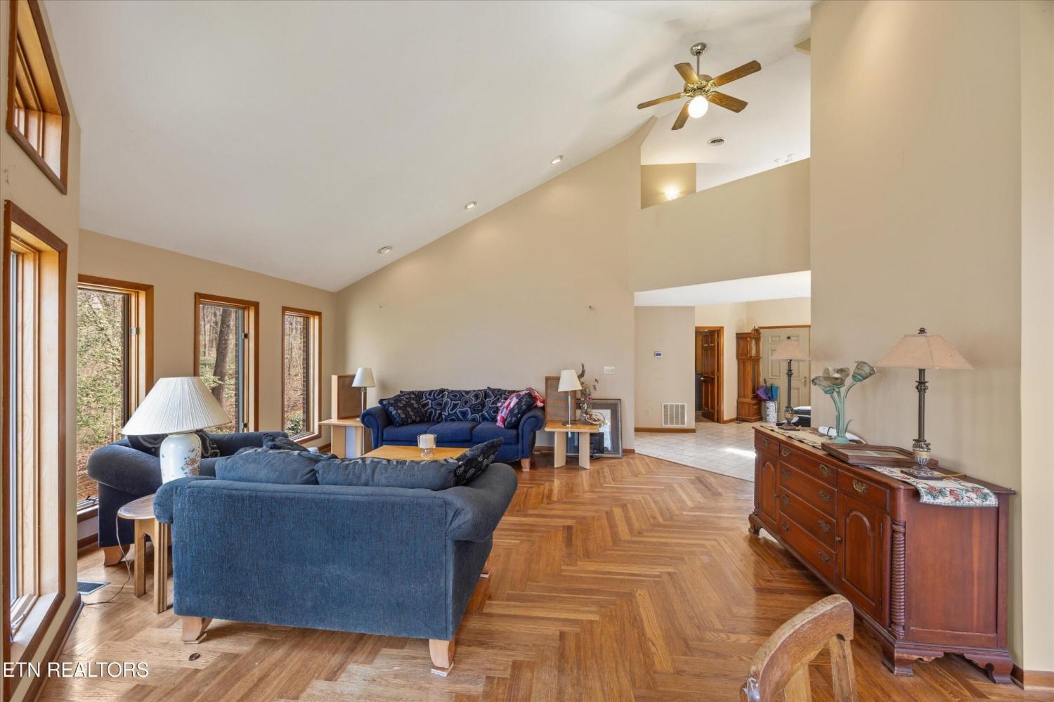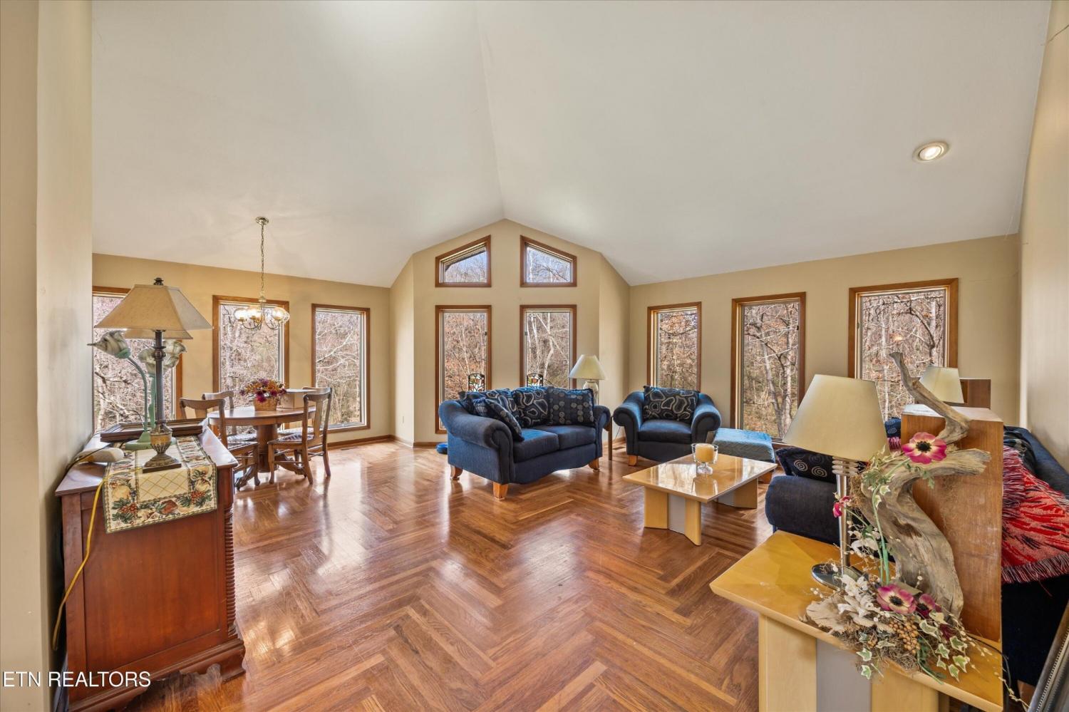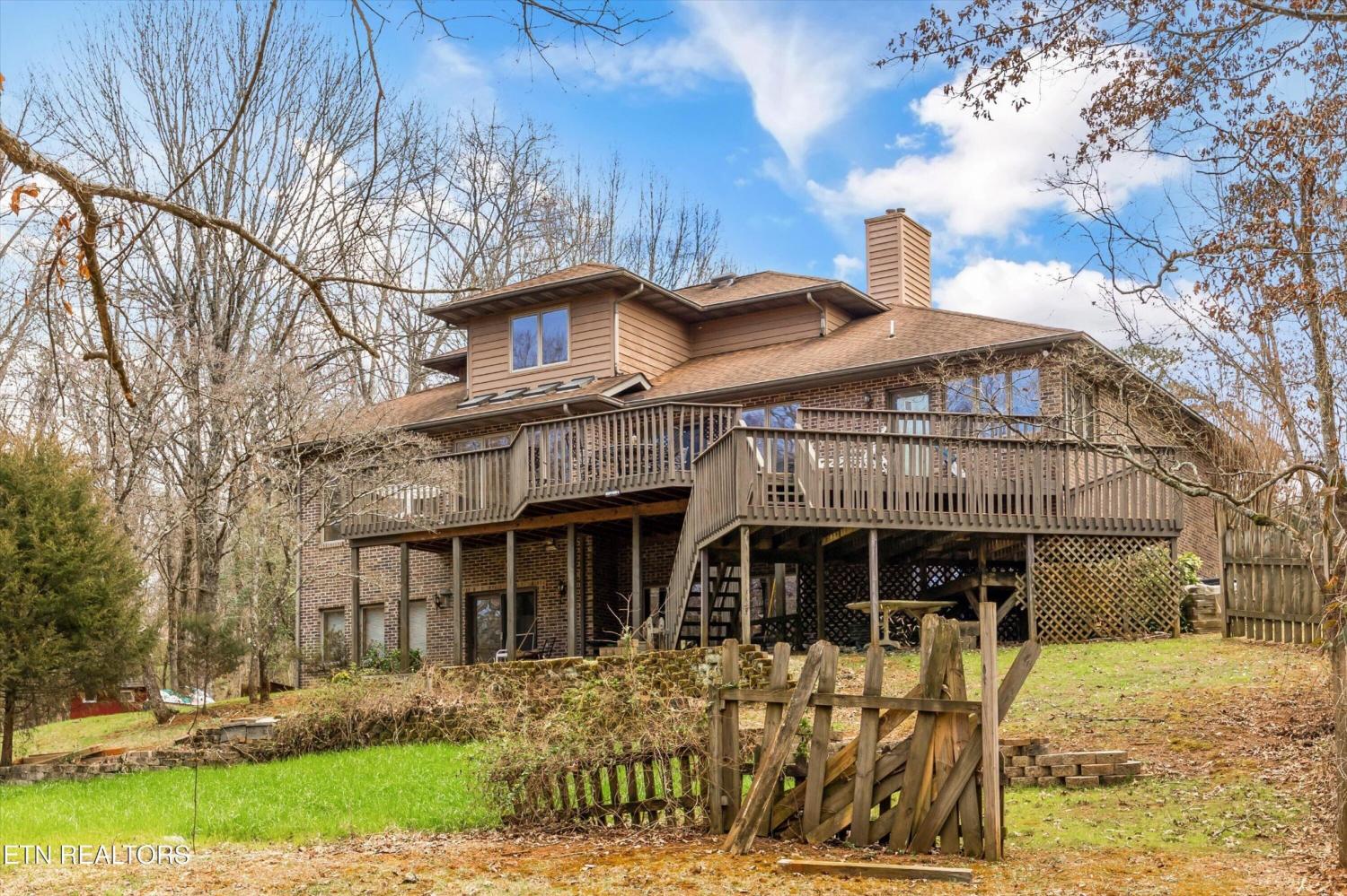 Beautiful custom-built home situated on nearly 8 private acres in a peaceful wooded setting. Large windows throughout fill the home with natural light and provide scenic views of the surrounding landscape and abundant wildlife. The main level features the primary suite along with spacious living areas and multiple open sitting spaces designed for both everyday living and entertaining. The spacious kitchen offers plenty of cabinet storage and room to gather. A deck and patio on the main level create inviting outdoor areas to relax and enjoy the natural surroundings. This level also includes a three-car garage and a convenient laundry room. Upstairs, you will find two additional bedrooms and a full bathroom, offering comfortable space for family or guests. The basement level provides additional living space, including a private mother-in-law suite and a second laundry area. A patio on the lower level offers another outdoor space to unwind, while the basement garage includes a dedicated wine cellar for storage or showcasing your collection. With 5 bedrooms, 4 bathrooms, four total garage spaces, and nearly 8 acres of wooded privacy, this home offers a rare combination of space, functionality, and a peaceful natural setting.