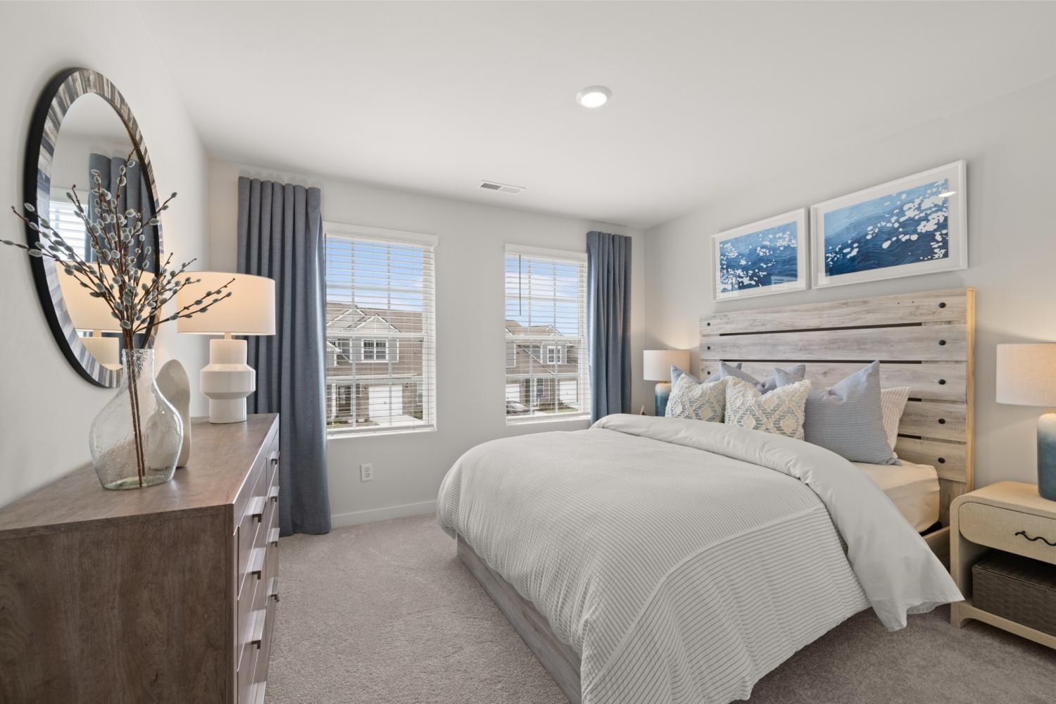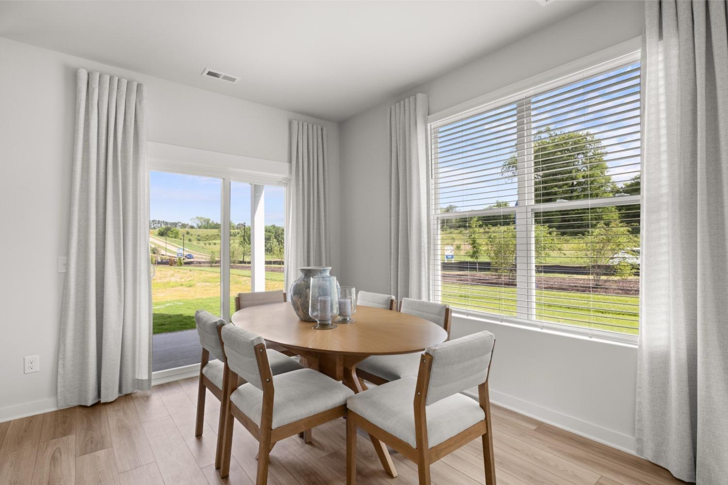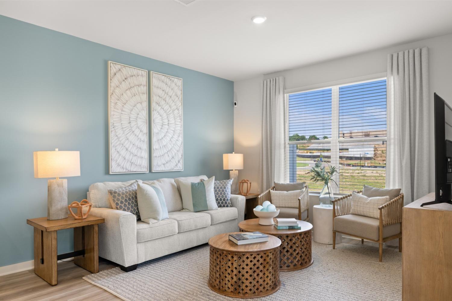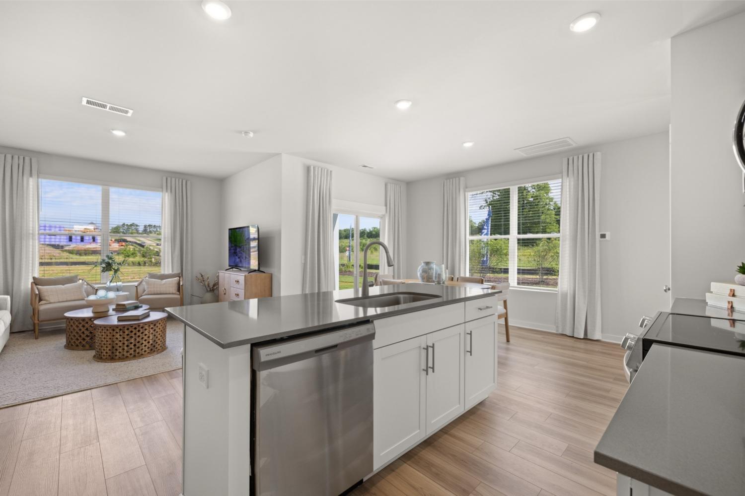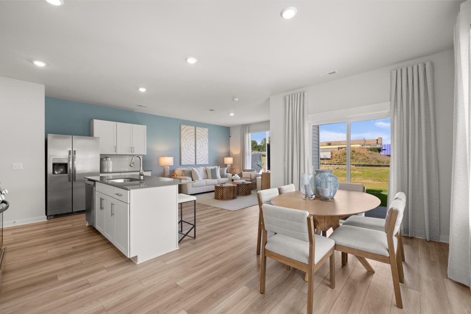 This new two-story townhome design combines comfort and style. The first floor features an open-concept layout connecting a living room for shared moments, a dining room for memorable meals and a kitchen for inspired cooks. Nearby sliding glass doors provide access to a covered patio for outdoor enjoyment. On the second floor, two secondary bedrooms and a spacious owner’s suite with a luxe bathroom and large walk-in closet provide restful retreats for family members and overnight guests. *Images from a furnished model of this home. Actual configuration and features may vary.