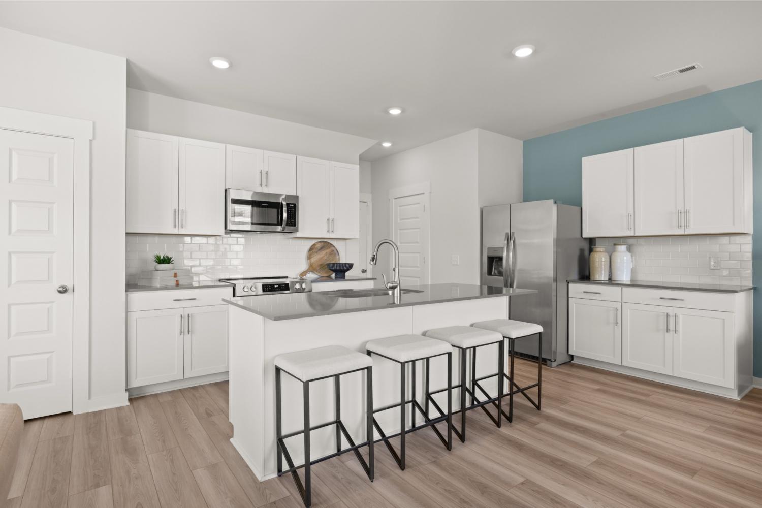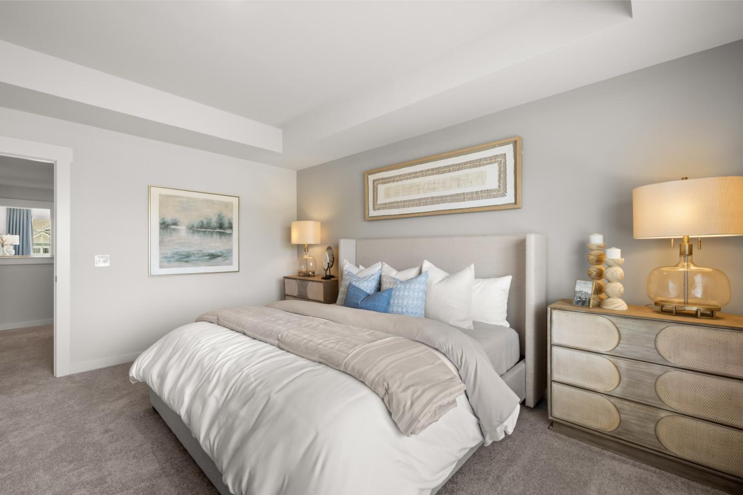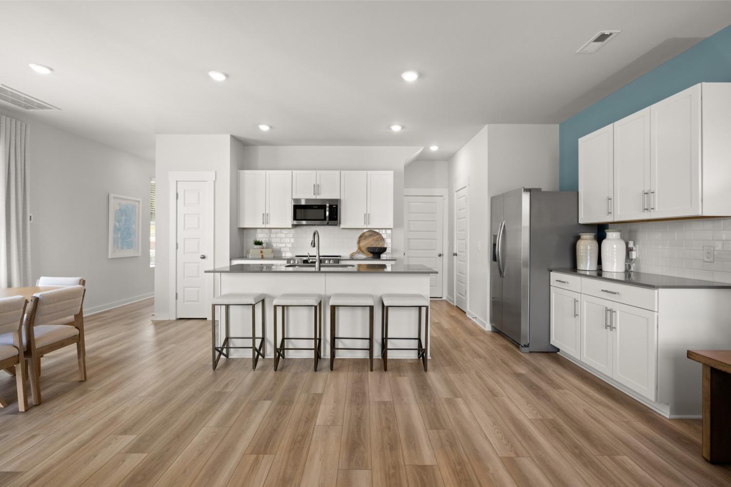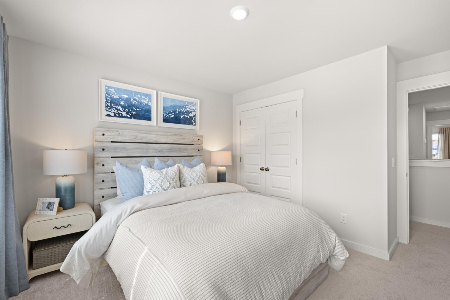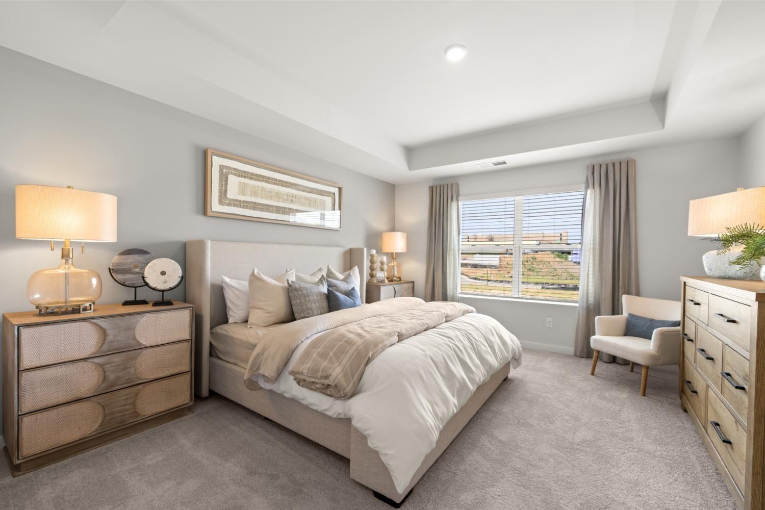 This new two-story townhome design combines comfort and style. The first floor features an open-concept layout connecting a living room for shared moments, a dining room for memorable meals and a kitchen for inspired cooks. Nearby sliding glass doors provide access to a covered patio for outdoor enjoyment. On the second floor, two secondary bedrooms and a spacious owner’s suite with a luxe bathroom and large walk-in closet provide restful retreats for family members and overnight guests. *Images from a furnished model of this home. Actual configuration and features may vary.