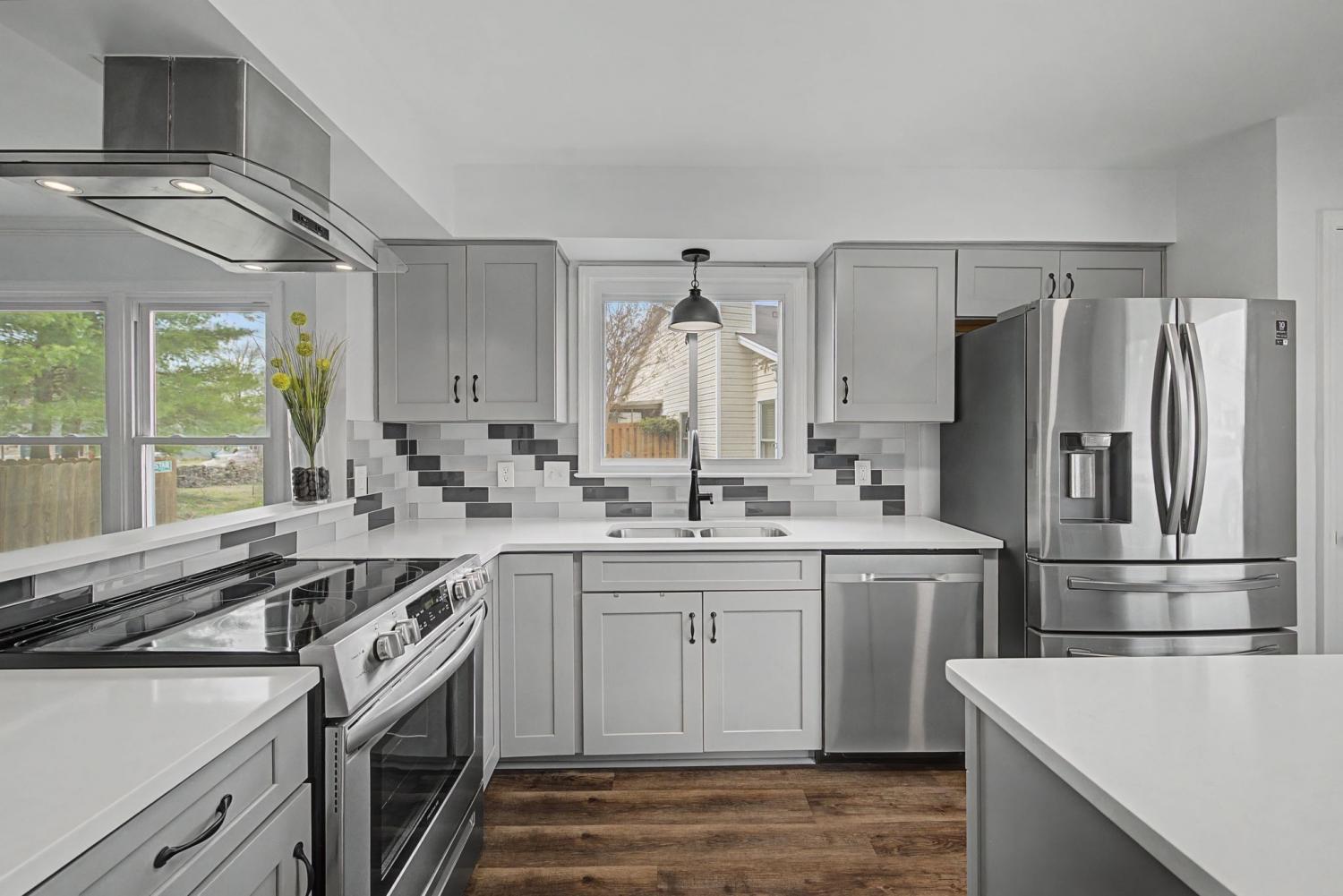 Completely renovated and move-in ready, this 2-bedroom, 2-bath condo with 1-car garage is located in the highly desirable Ashley Green 55+ community in Bellevue. Featuring one of the community’s most popular floorplans, the home offers a spacious layout with a large kitchen, separate dining room, and inviting living room with fireplace. The bright, updated interior includes new luxury vinyl plank flooring throughout, along with a fresh white kitchen and bathrooms featuring quartz countertops. The generously sized primary suite includes dual closets and a private en suite bath, while the secondary bedroom, full hall bath, and dedicated laundry room provide comfort and convenience for guests or hobbies. Step outside through French doors from the living room to your own private fenced courtyard—perfect for relaxing or entertaining outdoors. Residents enjoy an active 55+ lifestyle with regular social activities at the community clubhouse and swimming pool. Plus, the location is ideal—just a short walk to shopping and dining at One Bellevue Place.