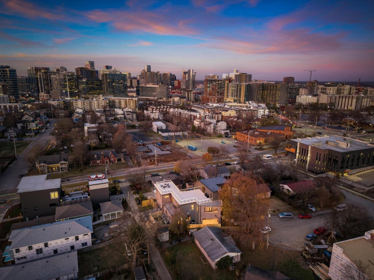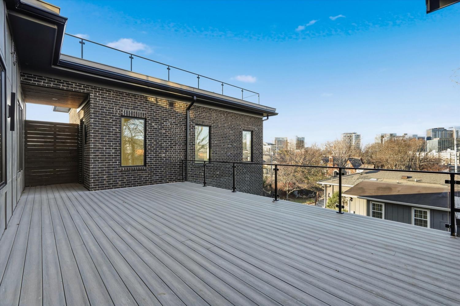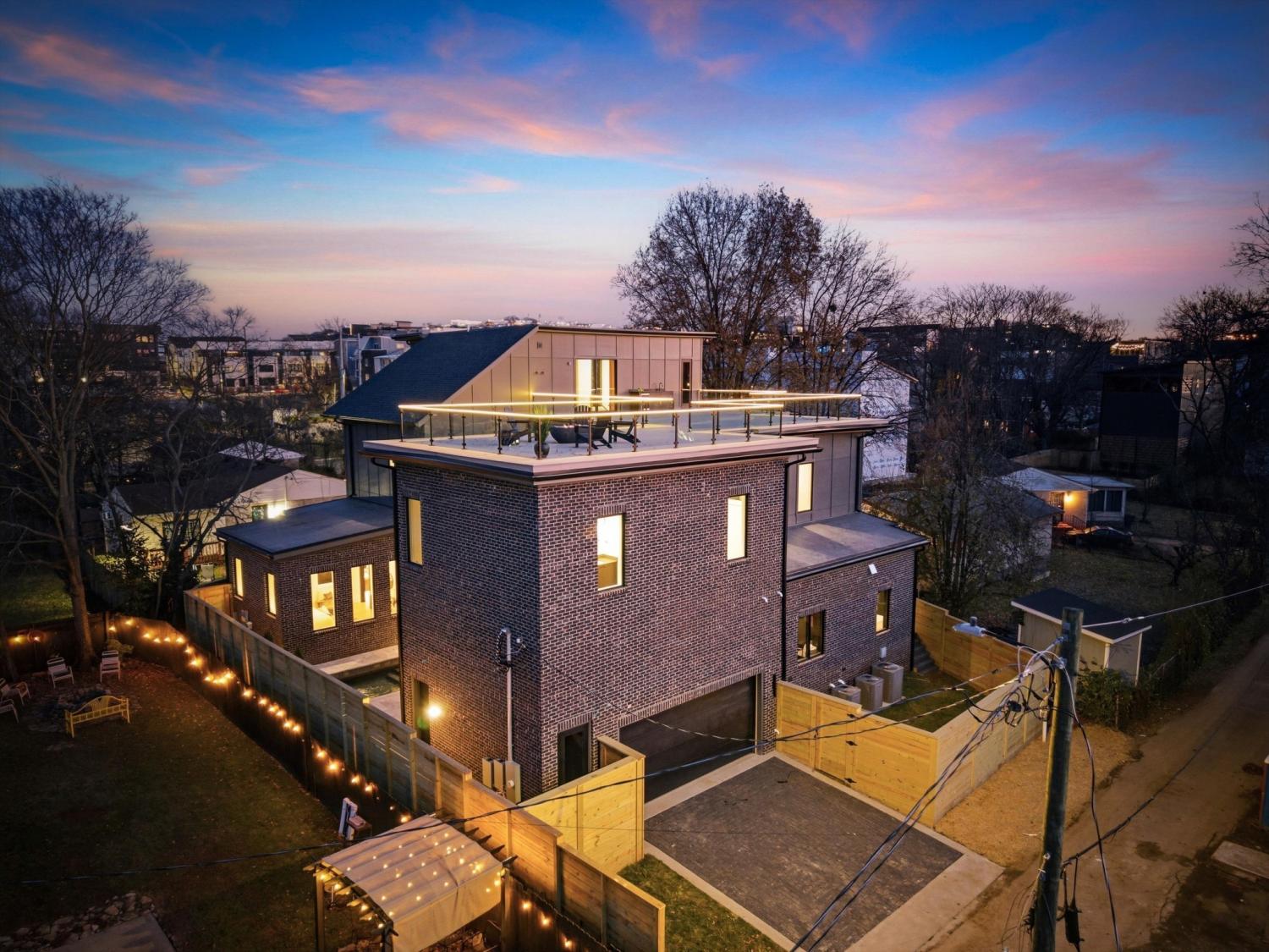 Poised at the edge of downtown with sweeping skyline views, 1309 Southside Circle stands as a singular architectural statement — the first true luxury residence of its kind in The Gulch. Designed and built by Amber Kaeser of Kaeser Building, this modern brick masterpiece redefines what it means to live in Nashville’s most dynamic urban neighborhood. Every level of the home is both artful and intentional, connected by an elevator and layered with outdoor living spaces that frame the city from every perspective. The main level opens to a private courtyard anchored by a pool, covered porch, and fireplace — an unexpected urban sanctuary that blurs the line between indoor and outdoor living. Inside, the design speaks through contrast and craft: black brick, warm oak, and glass are balanced by tailored millwork, sculptural lighting, and multiple fireplaces that create intimacy and atmosphere. The expansive primary suite on the main level serves as a private retreat — with a spa-like bath, walk-in closet, and direct access to the courtyard — blending scale, light, and seclusion in a way rarely found in the city. Upstairs, the home unfolds into additional suites and terraces, joined by a second office and a private apartment above the garage — complete with its own bath and entrance — perfect for a home studio, guest suite, gym, or potential income opportunity. The third floor crowns the home with a clubroom and massive rooftop deck, offering an entertainer’s skyline — panoramic views that rival Nashville’s best rooftops and space to host at a scale few downtown residences can match. Equal parts architecture and atmosphere, 1309 Southside Circle represents a new caliber of urban living — grounded in design, elevated in every sense, and truly unmatched in The Gulch.