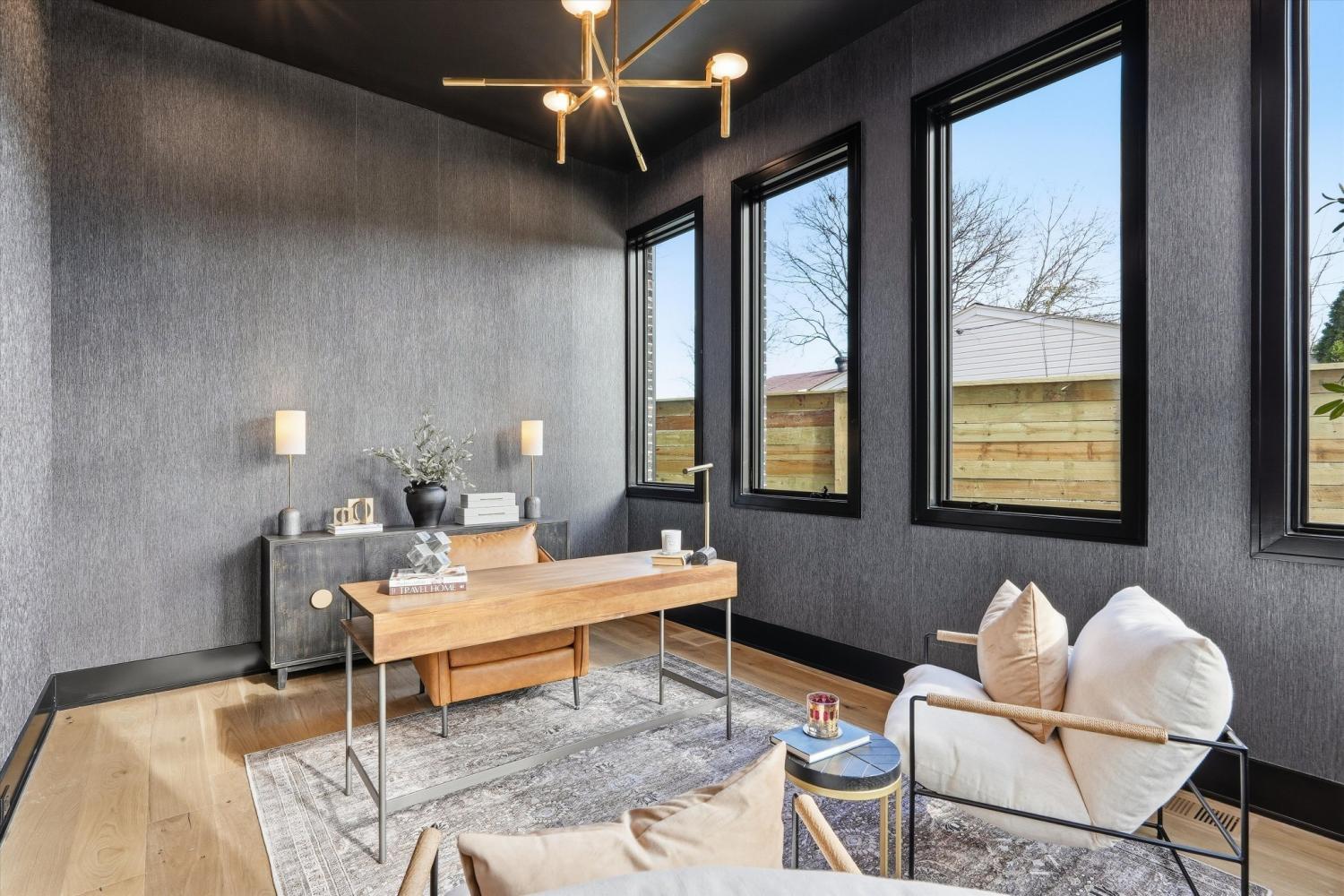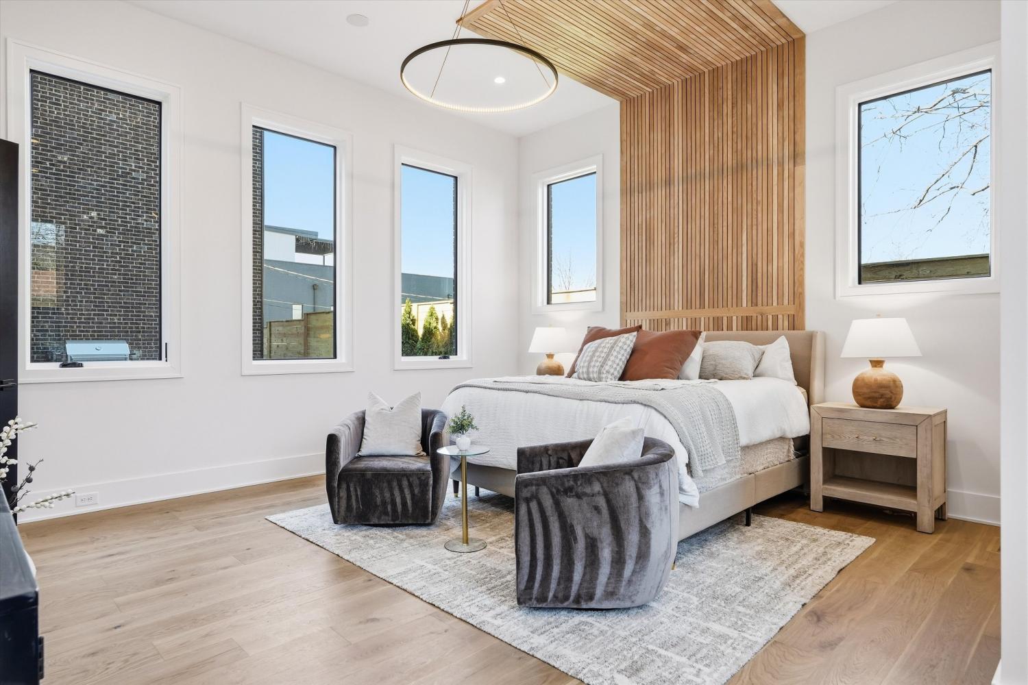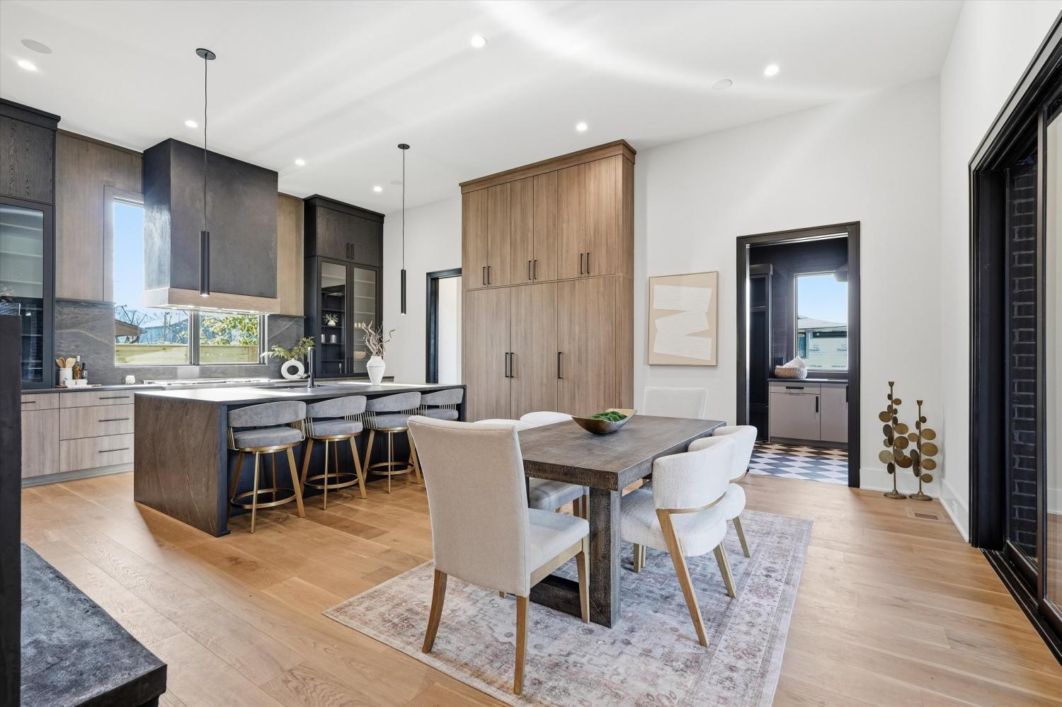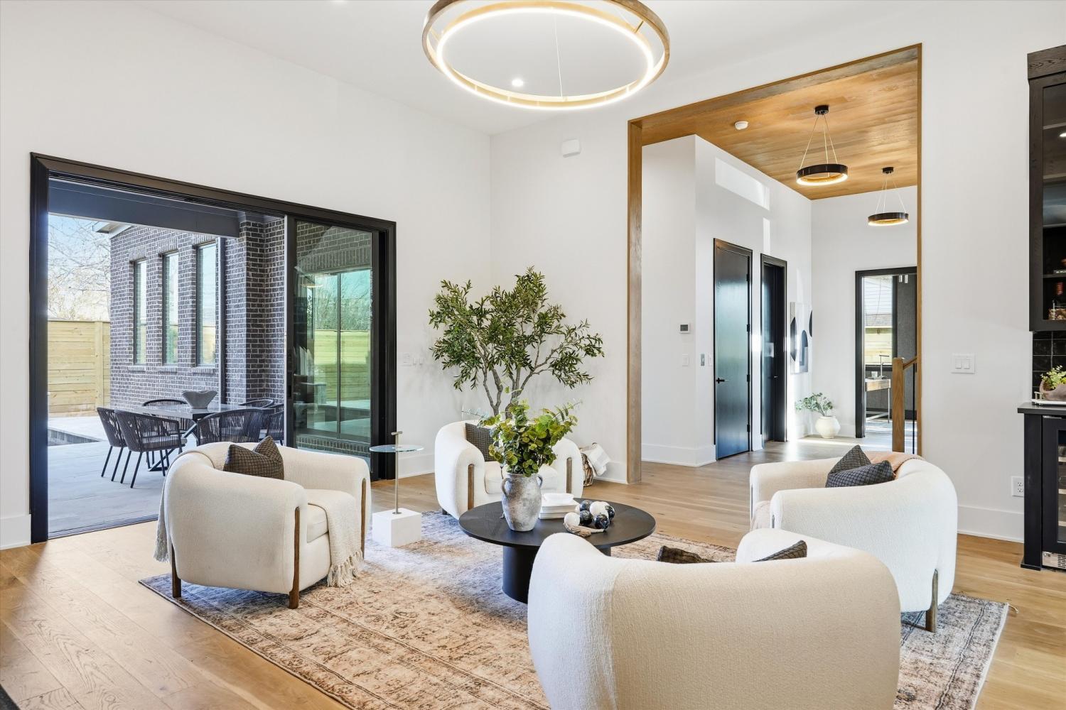 Poised at the edge of downtown with sweeping skyline views, 1309 Southside Circle stands as a singular architectural statement — the first true luxury residence of its kind in The Gulch. Designed and built by Amber Kaeser of Kaeser Building, this modern brick masterpiece redefines what it means to live in Nashville’s most dynamic urban neighborhood. Every level of the home is both artful and intentional, connected by an elevator and layered with outdoor living spaces that frame the city from every perspective. The main level opens to a private courtyard anchored by a pool, covered porch, and fireplace — an unexpected urban sanctuary that blurs the line between indoor and outdoor living. Inside, the design speaks through contrast and craft: black brick, warm oak, and glass are balanced by tailored millwork, sculptural lighting, and multiple fireplaces that create intimacy and atmosphere. The expansive primary suite on the main level serves as a private retreat — with a spa-like bath, walk-in closet, and direct access to the courtyard — blending scale, light, and seclusion in a way rarely found in the city. Upstairs, the home unfolds into additional suites and terraces, joined by a second office and a private apartment above the garage — complete with its own bath and entrance — perfect for a home studio, guest suite, gym, or potential income opportunity. The third floor crowns the home with a clubroom and massive rooftop deck, offering an entertainer’s skyline — panoramic views that rival Nashville’s best rooftops and space to host at a scale few downtown residences can match. Equal parts architecture and atmosphere, 1309 Southside Circle represents a new caliber of urban living — grounded in design, elevated in every sense, and truly unmatched in The Gulch.