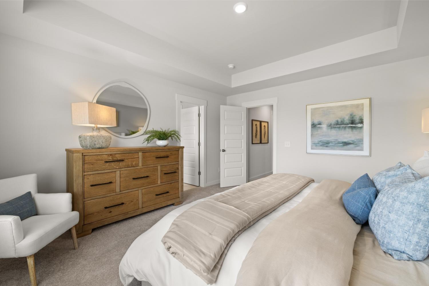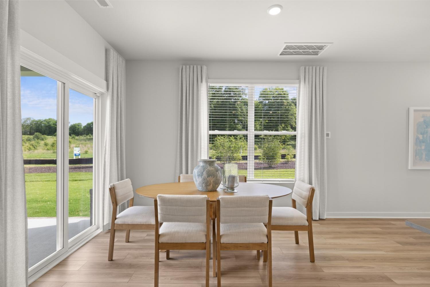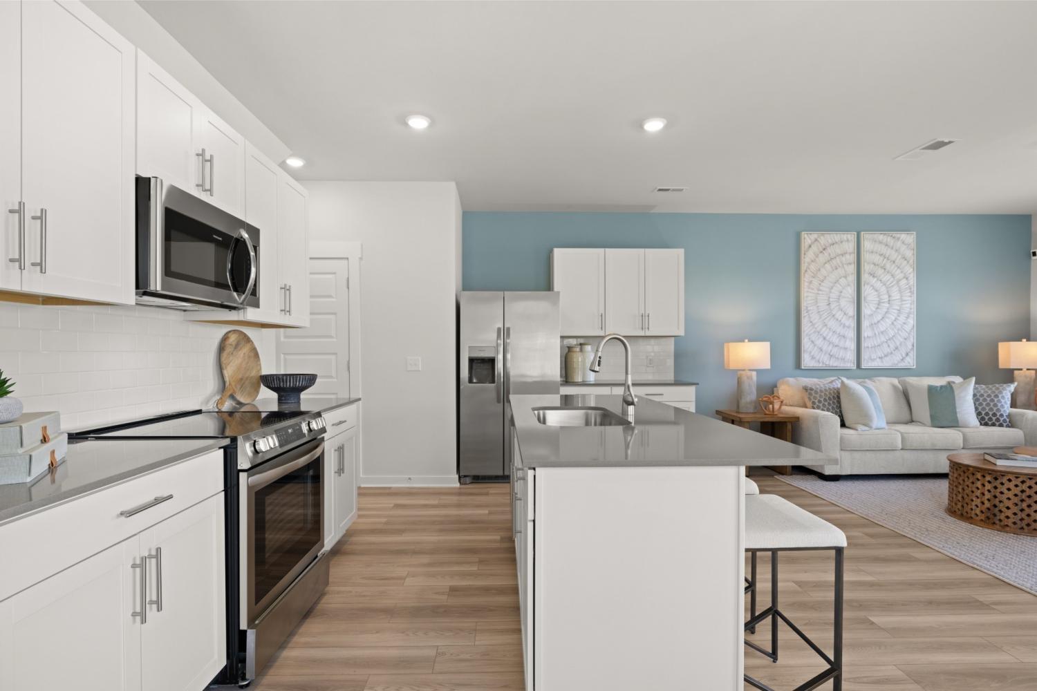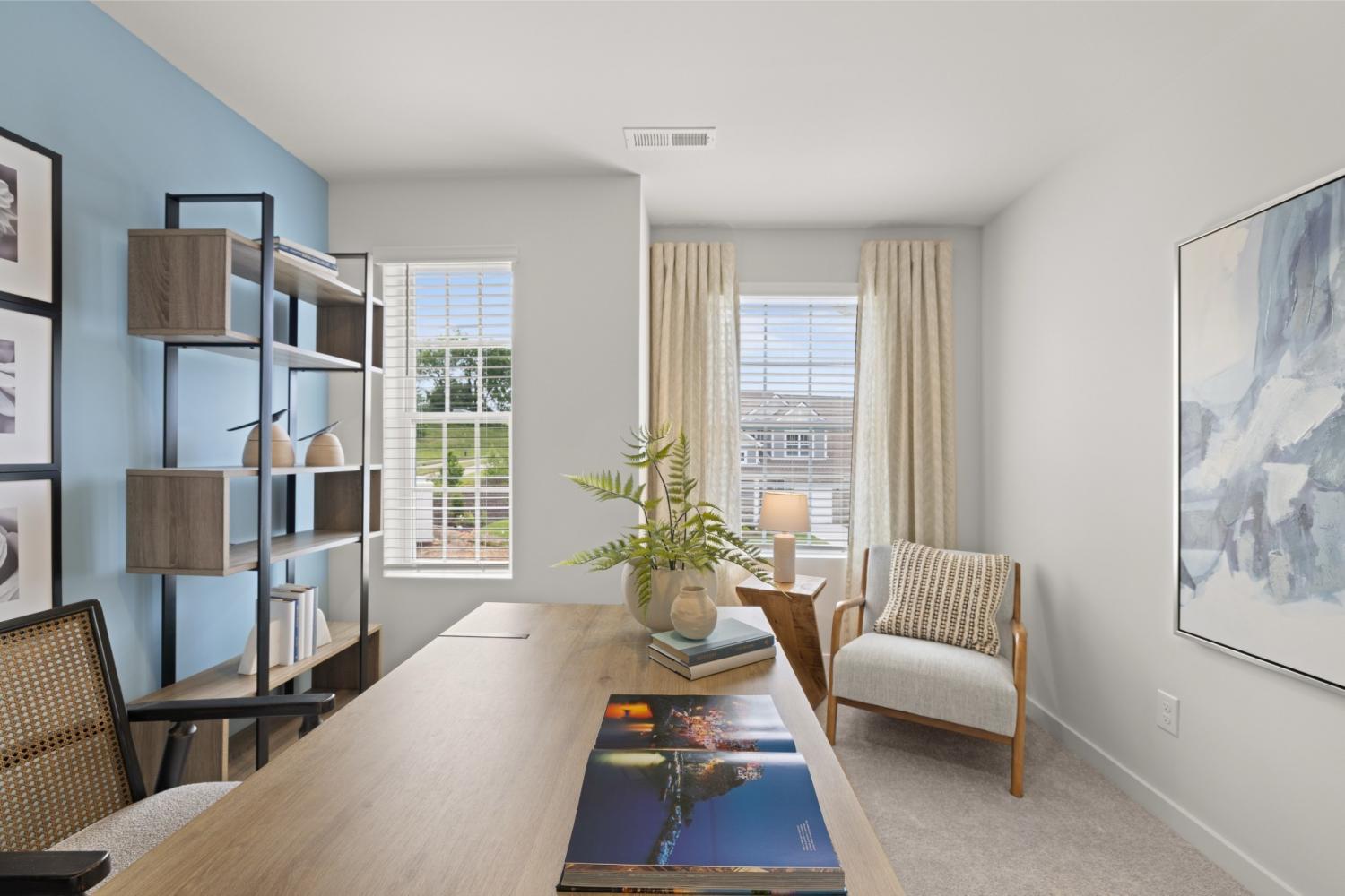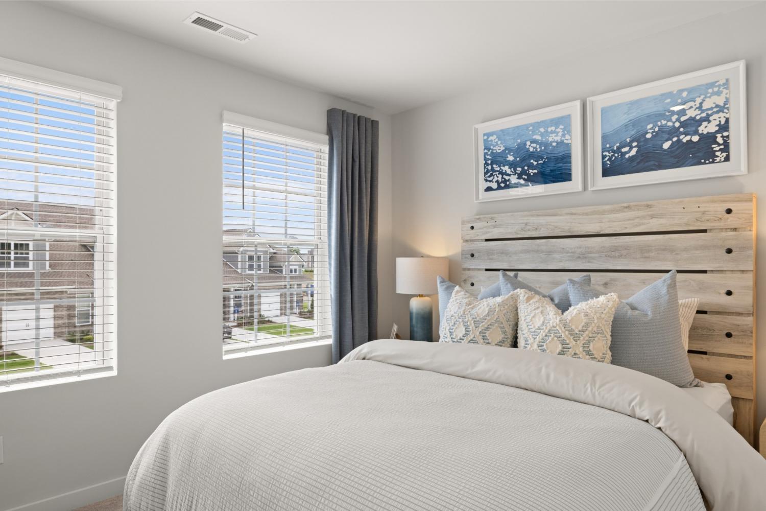 This new two-story townhome design combines comfort and style. The first floor features an open-concept layout connecting a living room for shared moments, a dining room for memorable meals and a kitchen for inspired cooks. Nearby sliding glass doors provide access to a covered patio for outdoor enjoyment. On the second floor, two secondary bedrooms and a spacious owner’s suite with a luxe bathroom and large walk-in closet provide restful retreats for family members and overnight guests. *Images from a furnished model of this home. Actual configuration and features may vary.