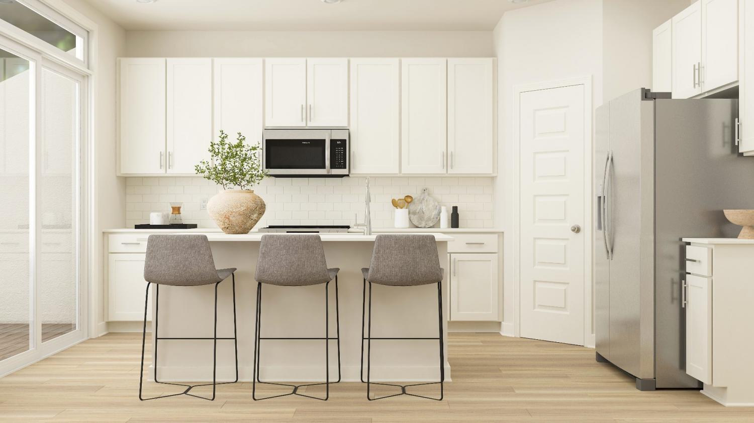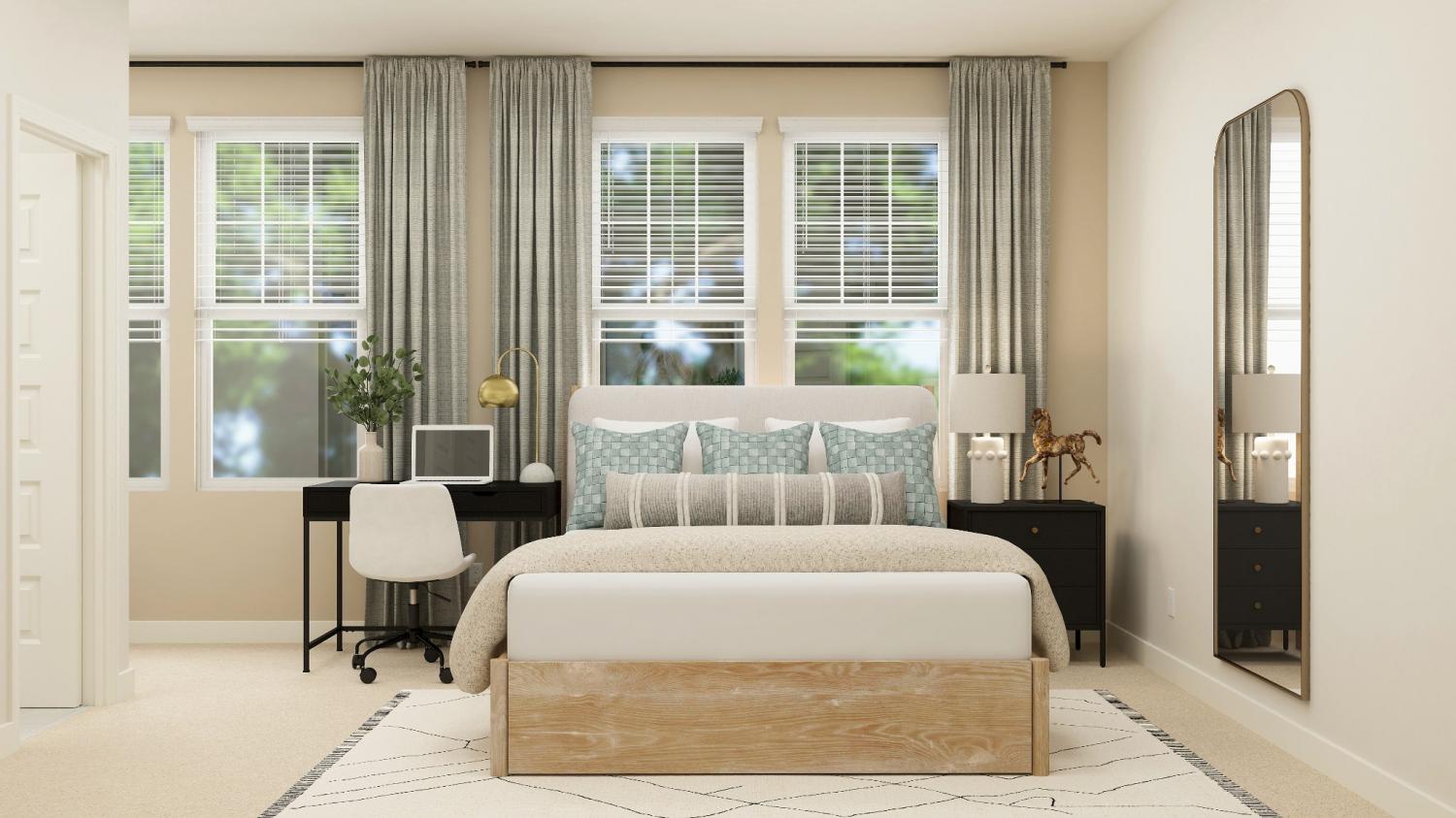 Highland floorplan. This new three-story townhome features a free-flowing layout that emphasizes functionality and practicality. Upon entry is a versatile bedroom suite to accommodate family members or overnight guests, while upstairs is the main living area. It includes a sprawling Great Room made for gatherings, a cozy loft that can double as an office space and a well-equipped kitchen with an adjoining nook. Residing on the top floor are the remaining bedrooms, one of which is the tranquil owner’s suite with an attached bathroom. *Images from a furnished model of this home. Actual configuration and features may vary.