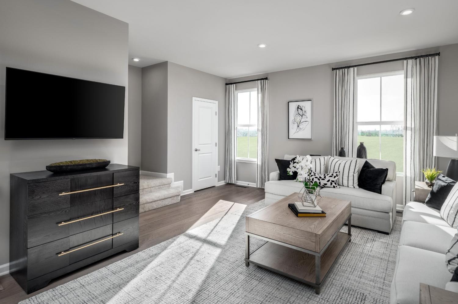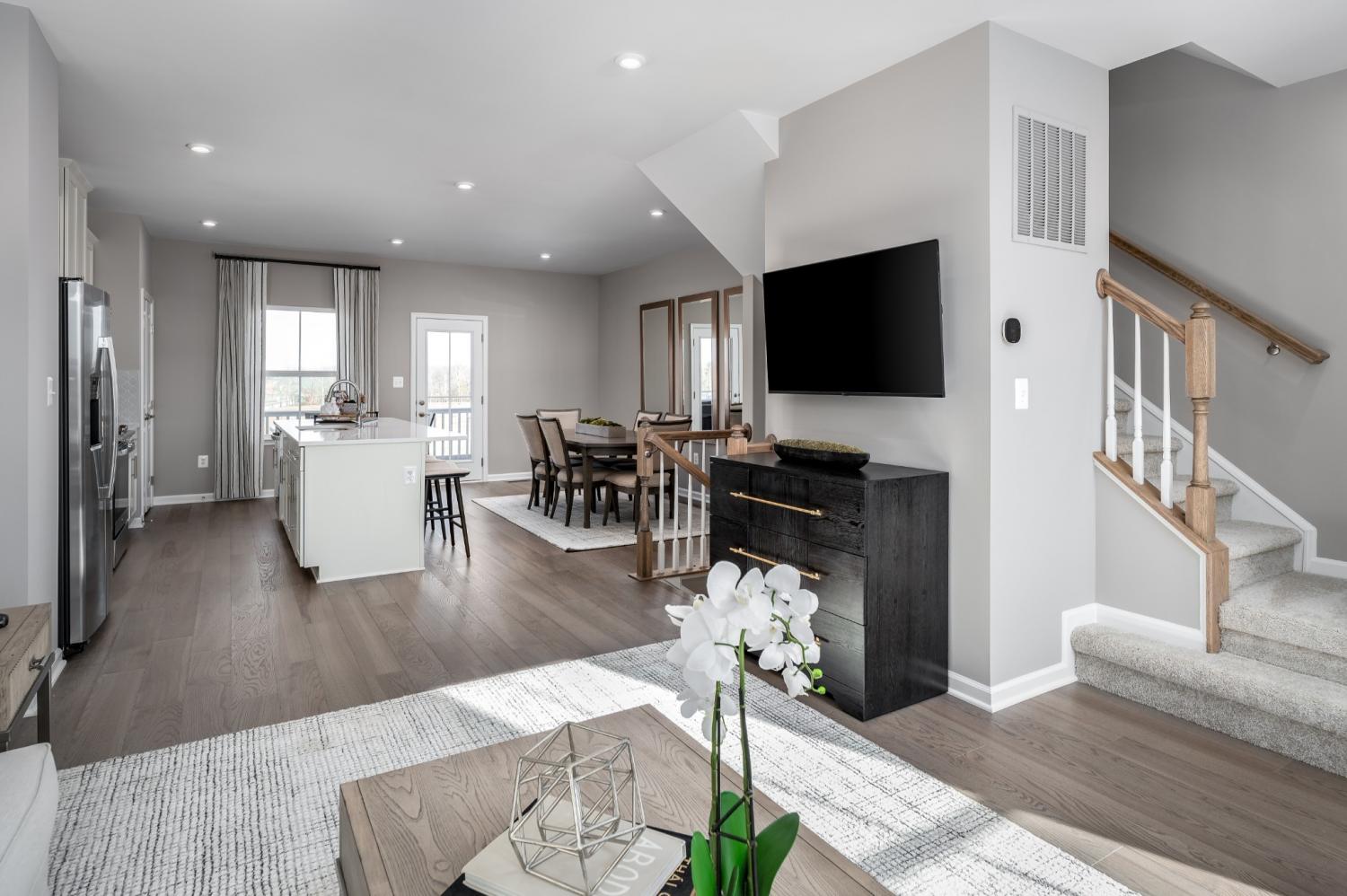 This modern townhome features a 2-car garage, finished basement and an open-concept main level with front door entry, powder room, and kitchen with all appliances included—even the fridge! Upstairs, enjoy a spacious owner’s suite with en suite bath and walk-in closet, plus 2 additional bedrooms, full bath, and laundry room with washer & dryer included. Included rear deck!