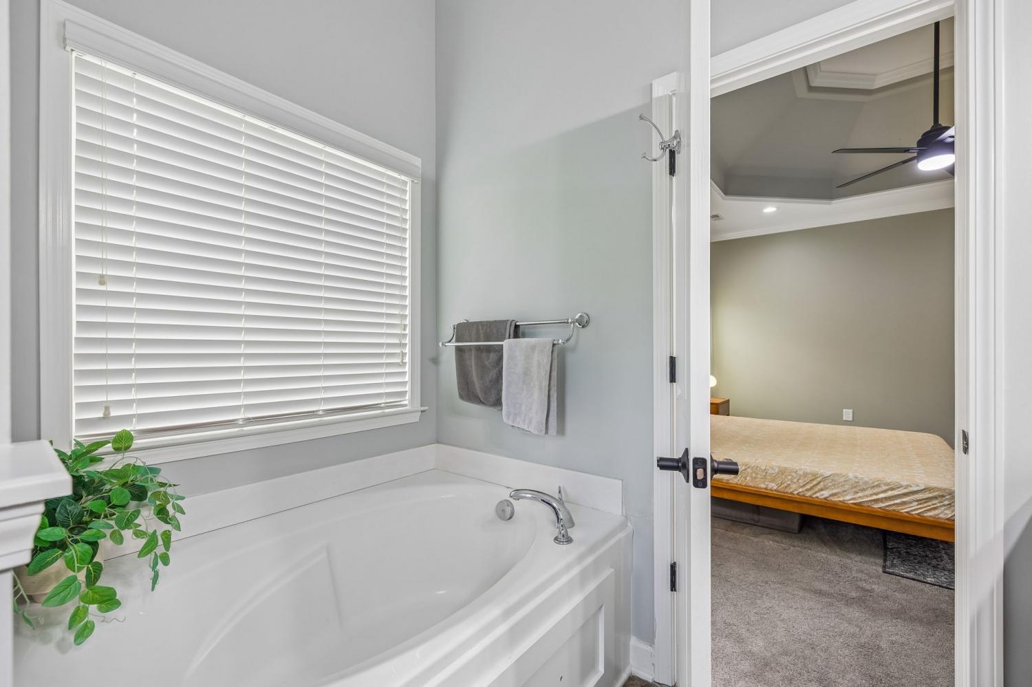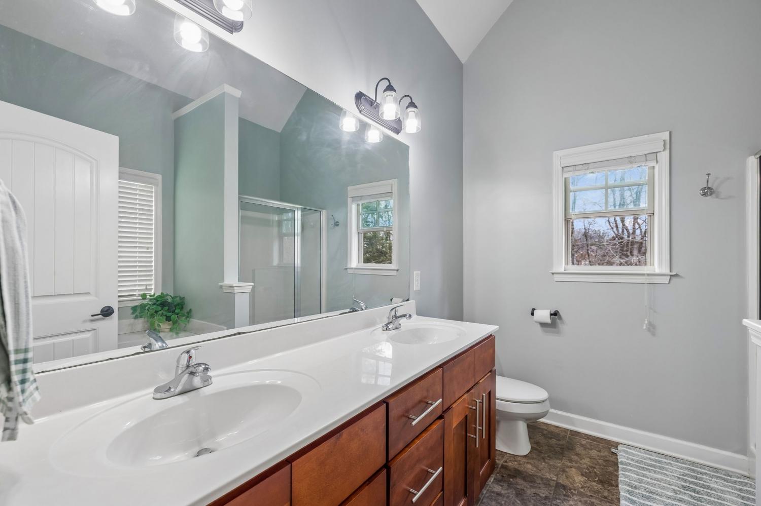 Tucked along a peaceful creek and surrounded by nature, this home offers the kind of everyday serenity that’s hard to find! The classic brick and stone exterior offers timeless curb appeal, while inside you’re greeted by warm hardwood floors, natural light, and an easy, flowing layout that immediately feels like home. The main living area features soaring ceilings and a cozy fireplace, creating a space that’s perfect for both relaxing evenings and gathering with friends and family. The kitchen sits right at the heart of the home with granite countertops, warm cabinetry, and a bar-top island that naturally becomes the hub for morning coffee, quick meals, or conversation while cooking. It opens seamlessly into the dining and living areas, giving the entire space an open, comfortable feel. The main-level primary suite offers a peaceful retreat with tray ceilings, a spacious bath with dual vanities, soaking tub, and separate shower. Additional bedrooms have NEW carpet and provide flexible space for guests, work-from-home needs, or growing households. The entire home has been recently repainted! Kitchen has a new gas stove and refrigerator! Upstairs, a large bonus room with NEW carpet offers endless possibilities — media room, playroom, home gym, or additional living space. Out back, the home becomes something truly special. The elevated deck overlooks a peaceful tree-lined setting and a flowing creek just beyond the yard, creating a rare sense of privacy and connection to nature. Whether enjoying quiet mornings with coffee or unwinding in the evening, this outdoor space feels like a private retreat while still being close to everything!