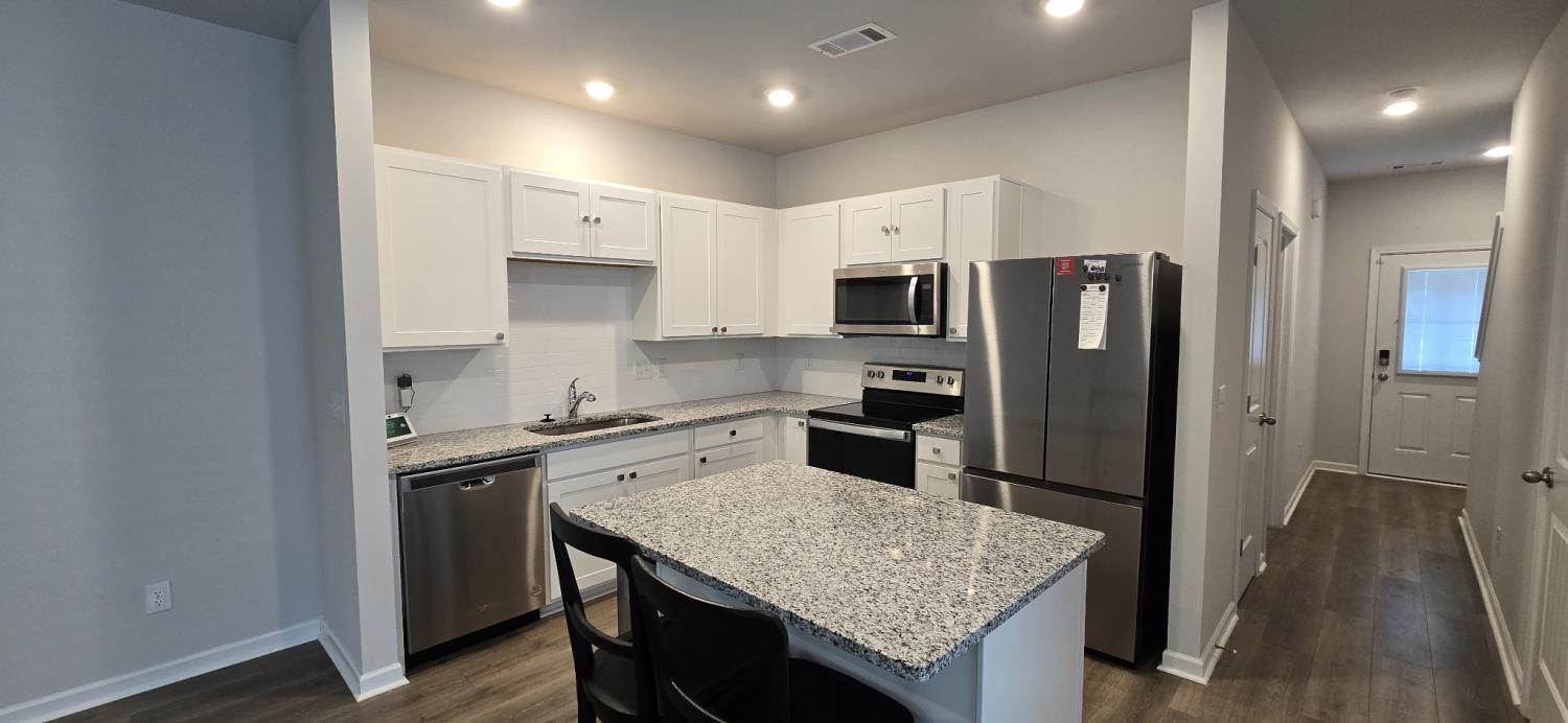 Great location! End unit with wooded views and large back covered patio. 3 bedroom, 2.5 baths with open concept living. Washer and dryer included along with a community pool!