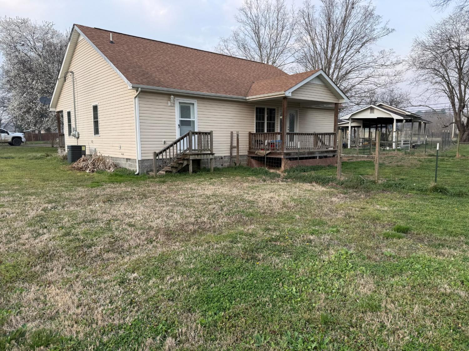 Charming, single-owner 1462 sf 3BR/2BA home with vinyl siding located in Elkton, fronts two roads and sets on .9 acres. The spacious living room features LVP flooring and recessed lighting, while the eat-in kitchen has laminate flooring and wood cabinetry. All kitchen appliances are included! Each of the 3 bedrooms is fitted with laminate flooring and ceiling fans. The primary bedroom boasts recessed lighting and full bathroom that includes a jacuzzi and tiled shower, along with double vanities. Additionally, the property includes a powered storage building/shop. The house is equipped with an HVAC split unit and metal ductwork. The yard has trees and the covered porches offer shade for outdoor enjoyment and a patio with firepit for chilly evenings spent by the fire.
