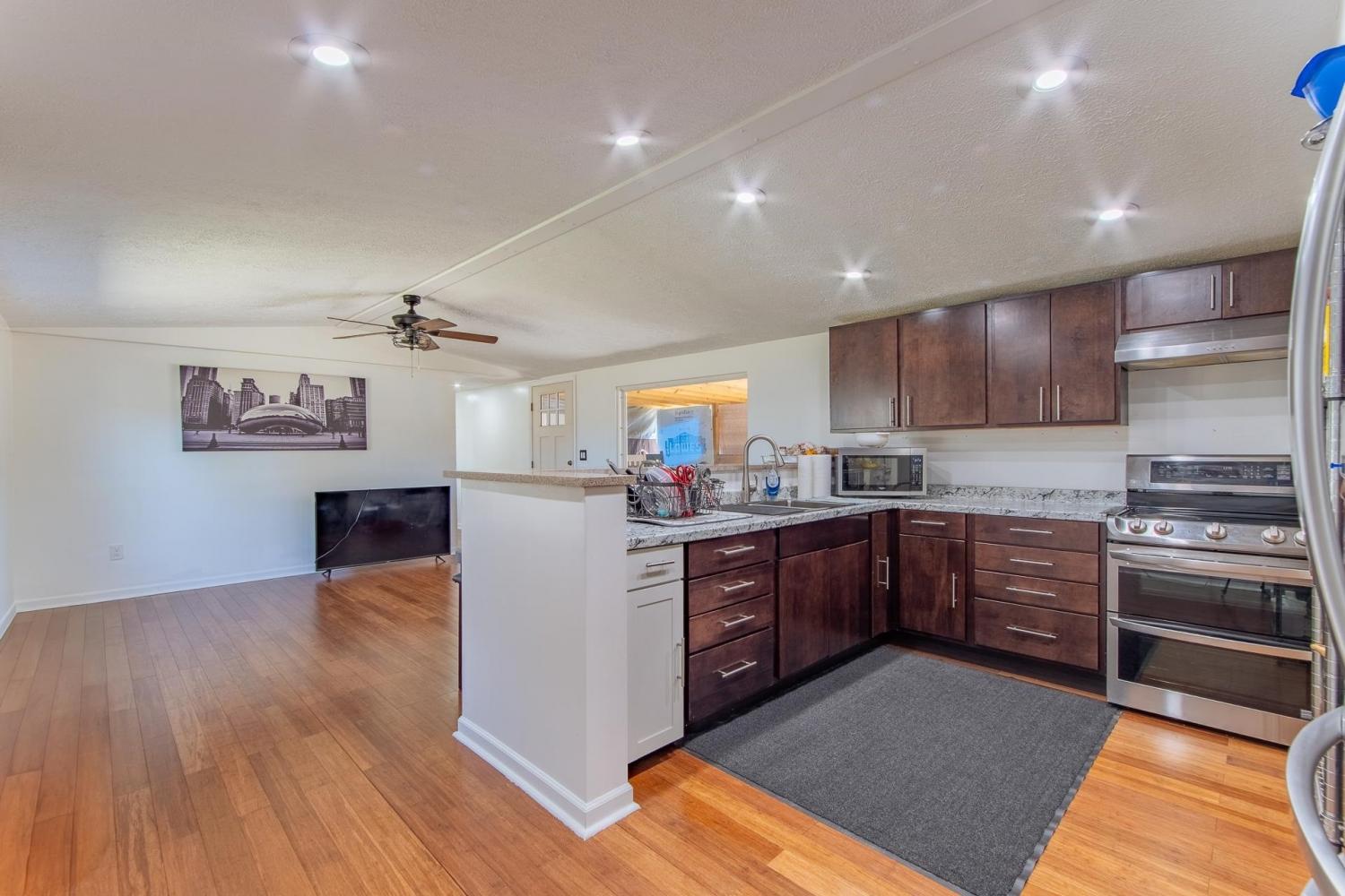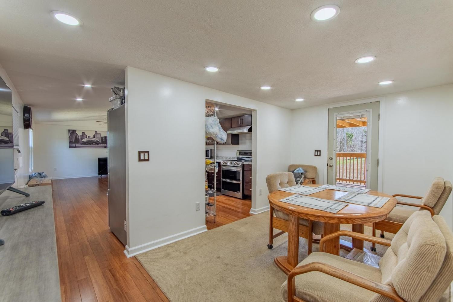 This stunning, completely remodeled home sits on 71 beautiful, mostly wooded acres+/-! All you have to do is MOVE IN! Featuring amazing, covered porches perfect for taking in the views and relaxing, this property offers both comfort and potential. The custom single-wide home is move-in ready with modern upgrades throughout including a tile shower, split bedroom floor plan, recessed lighting, hardwood, tile, & laminate floors, a separate dining area, and comes complete with all kitchen appliances & the washer & dryer! With a spacious barn, convenient storage building, useable block foundation for your next project, and an extended access road, the land provides endless possibilities...whether you want to build additional properties, create a hunting retreat, garden, have a food plot, or just enjoy the serenity of nature! The expansive acreage ensures peace and seclusion while being easily accessible. Don’t miss out on this rare opportunity to own a slice of paradise!