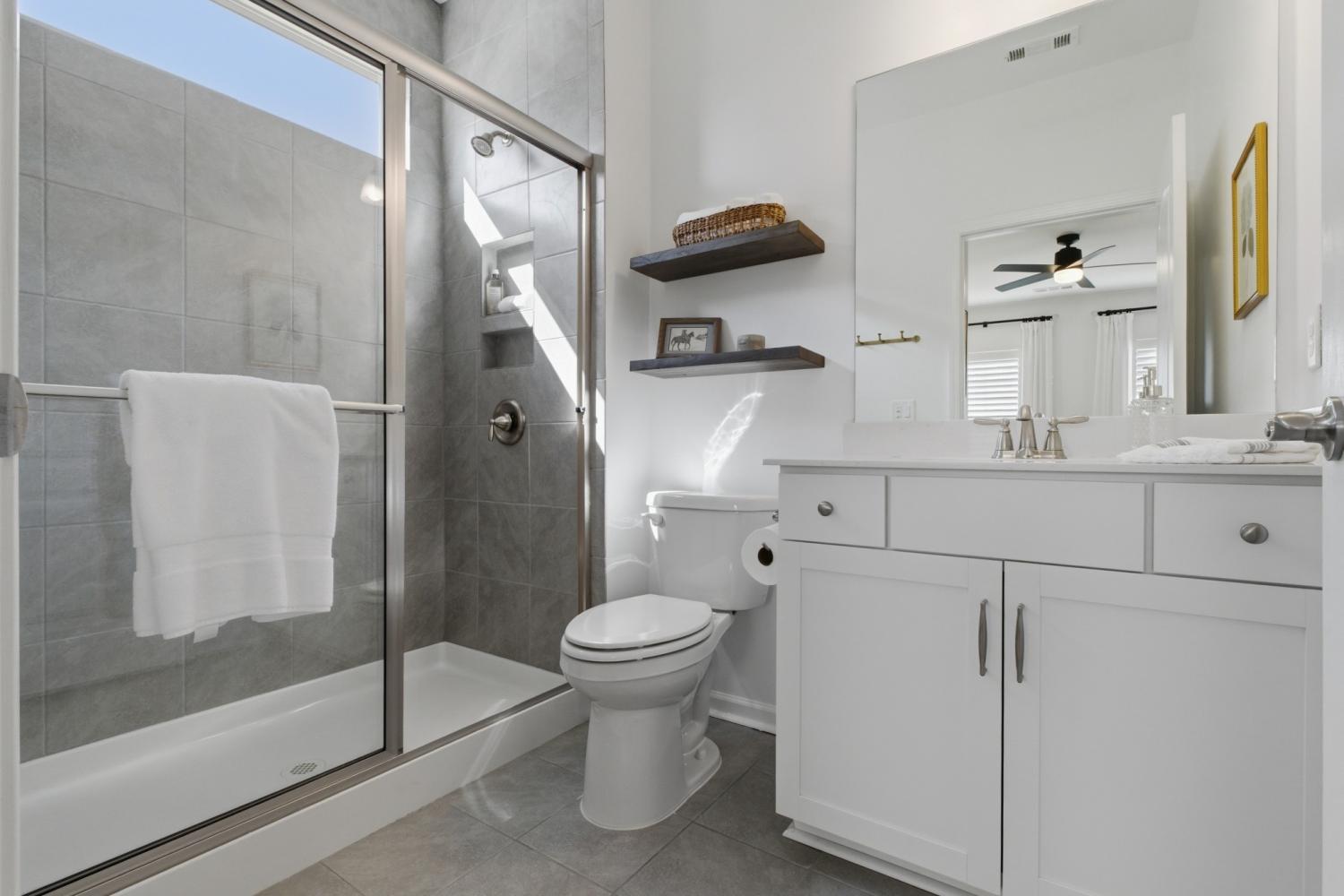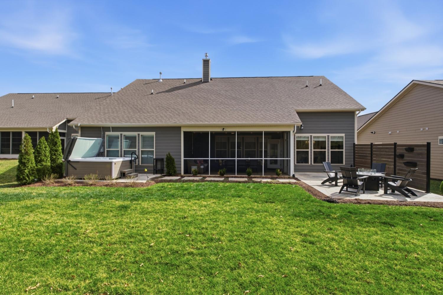 Gorgeous 3 bedroom 3 bath, all on the main level, Dunwoody model backing up to a tree lined berm in Southern Springs by Del Webb 55+ active adult community in a cul de sac location. High end finishes throughout in this executive style home featuring an open concept great room with gas log burning stone fireplace, upgraded kitchen with quartz countertops, stainless steel appliances, double ovens, 5 burner gas cook top, soft close doors and 3/4 in. dovetail drawers as well as roll out shelving, modular system in the large kitchen pantry, and a separate dining area. Flex room off entry can be used as an office, additional seating area, library, sewing room, craft room or whatever fits your lifestyle. Primary bedroom with ensuite bath featuring extra large walk-in tile shower, double sink vanities with quartz top, separate water closet, linen closet, and custom owner's closet with modular system for the utmost in storage. Laundry room with built-in cabinetry and utility sink are conveniently located on the main level. Upstairs loft could be used as a fourth bedroom, TV room, many possibilities with this space. Walk-in attic off the loft area provides ample storage and easy access. Oversized garage with 4 ft. extension, golf cart door, and epoxy coated floor. Enjoy the fabulous outdoor space with screened Lanai, extended patio with gas fire pit, and hot tub. Community has both indoor and outdoor pools, pickle ball and tennis courts, gas fire pit, pavilion with gas grills and patio tables, clubhouse with fitness center and fitness classes, ballrooms, kitchen, conference room, card/game room, massage room, men's and women's locker rooms, and a dog park. Over 70 clubs and special interest groups, special programs, presentations, concerts, Southern Springs choir and band, as well as photography, painting, quilting, solo clubs, coffee club, Veteran's club, and much more. Living in Southern Springs is like vacationing at a very active resort. Thirty-five minutes to/from BNA.