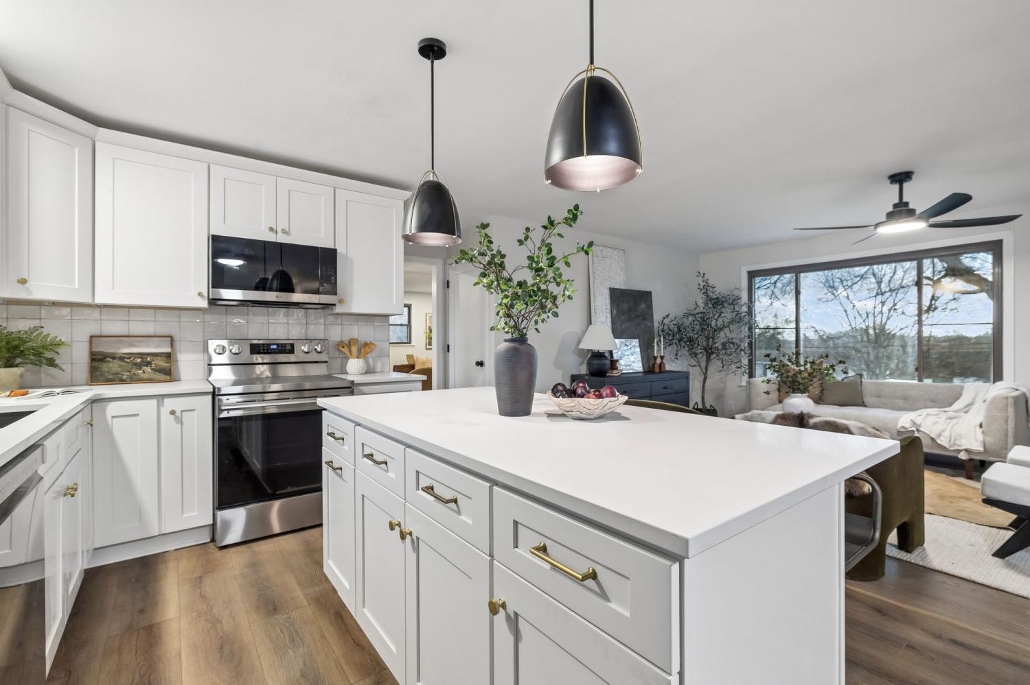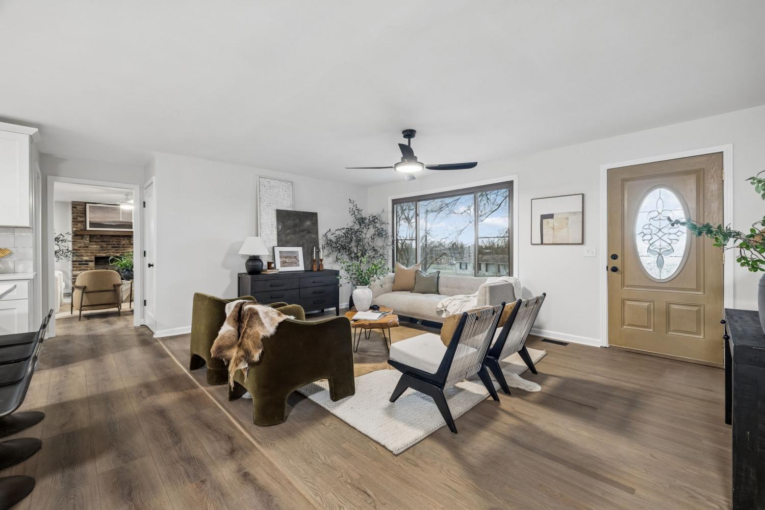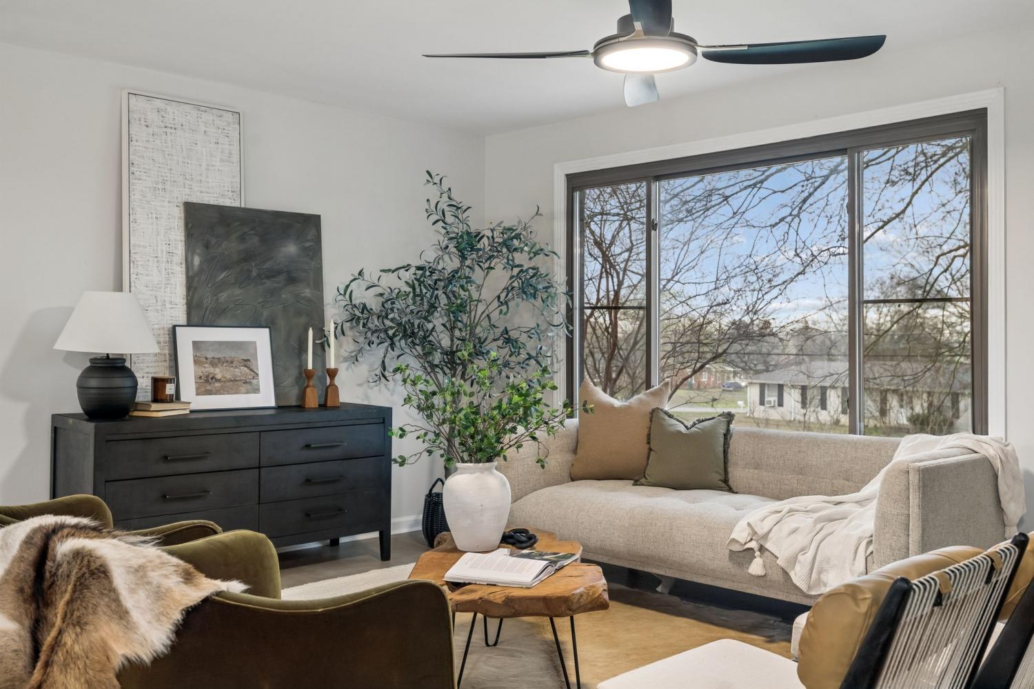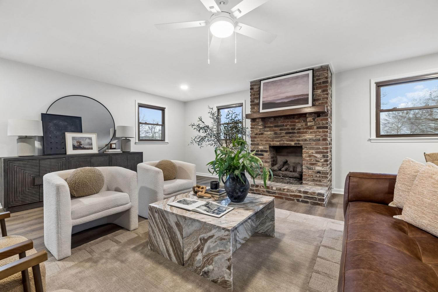 Totally remodeled home in the most convenient location imaginable. This home is a traditional Tennessee Ranch home that features an open concept living room perfect for entertaining and a HUGE 2nd living space. New HVAC System, gutted to the the studs interior. Hall bath is original butter yellow retro tile with heated floors. Unfinished basement and 2 car garage, back patio and storage shed.