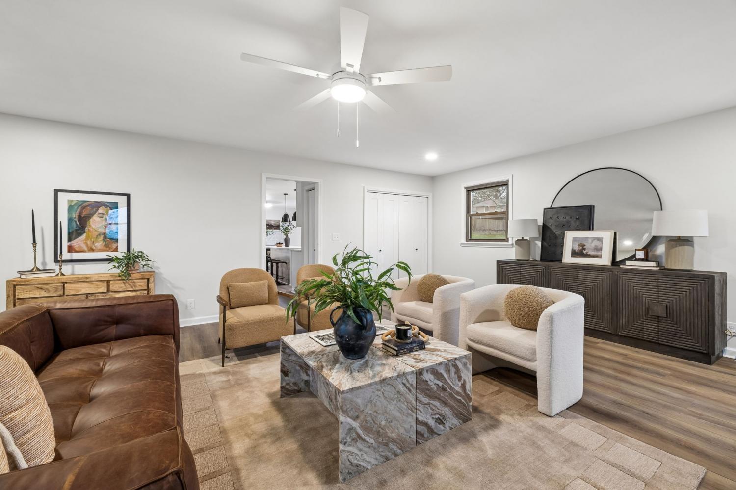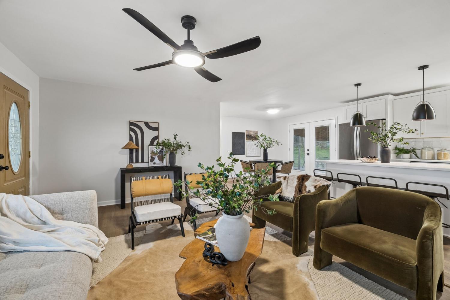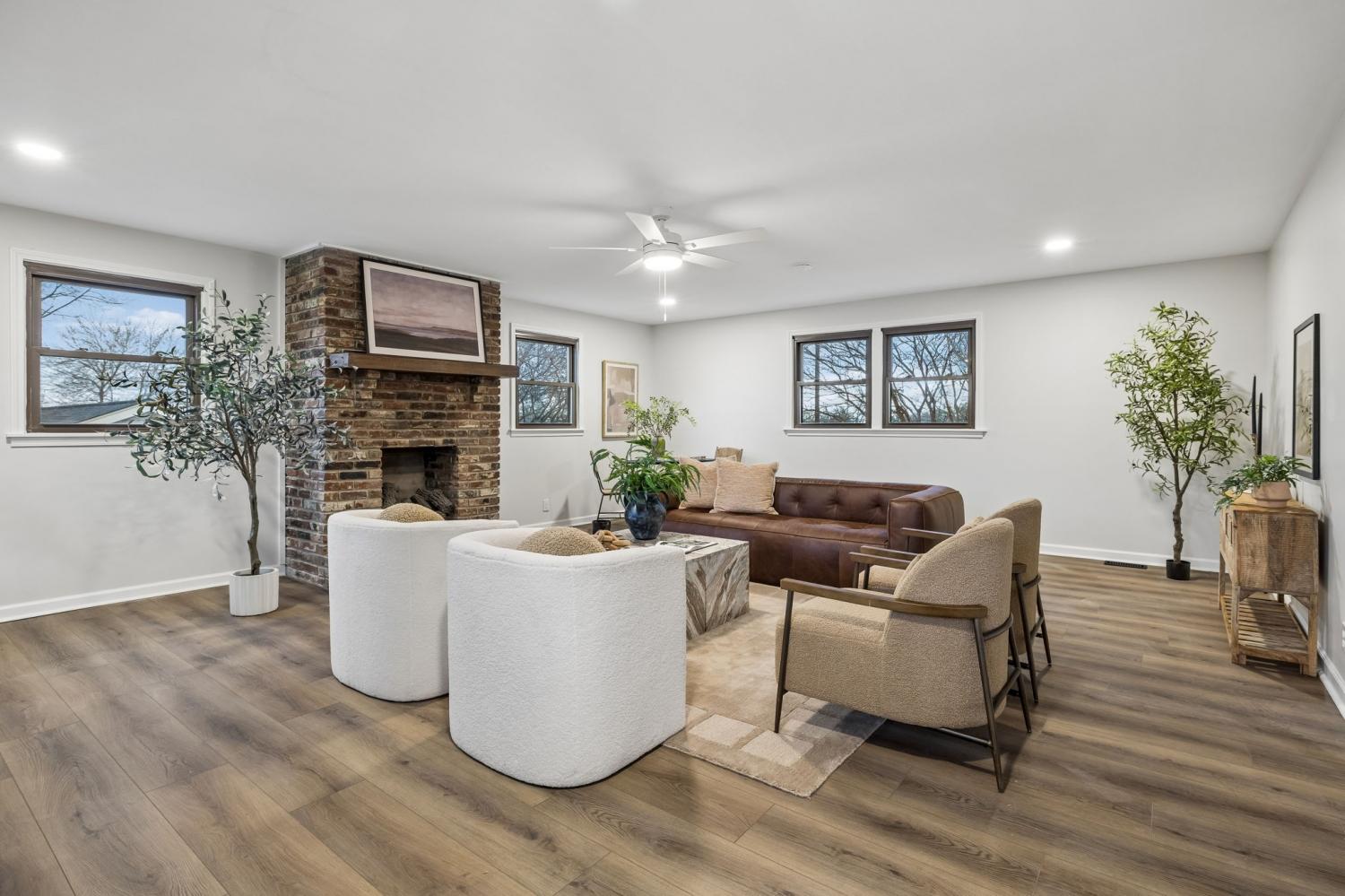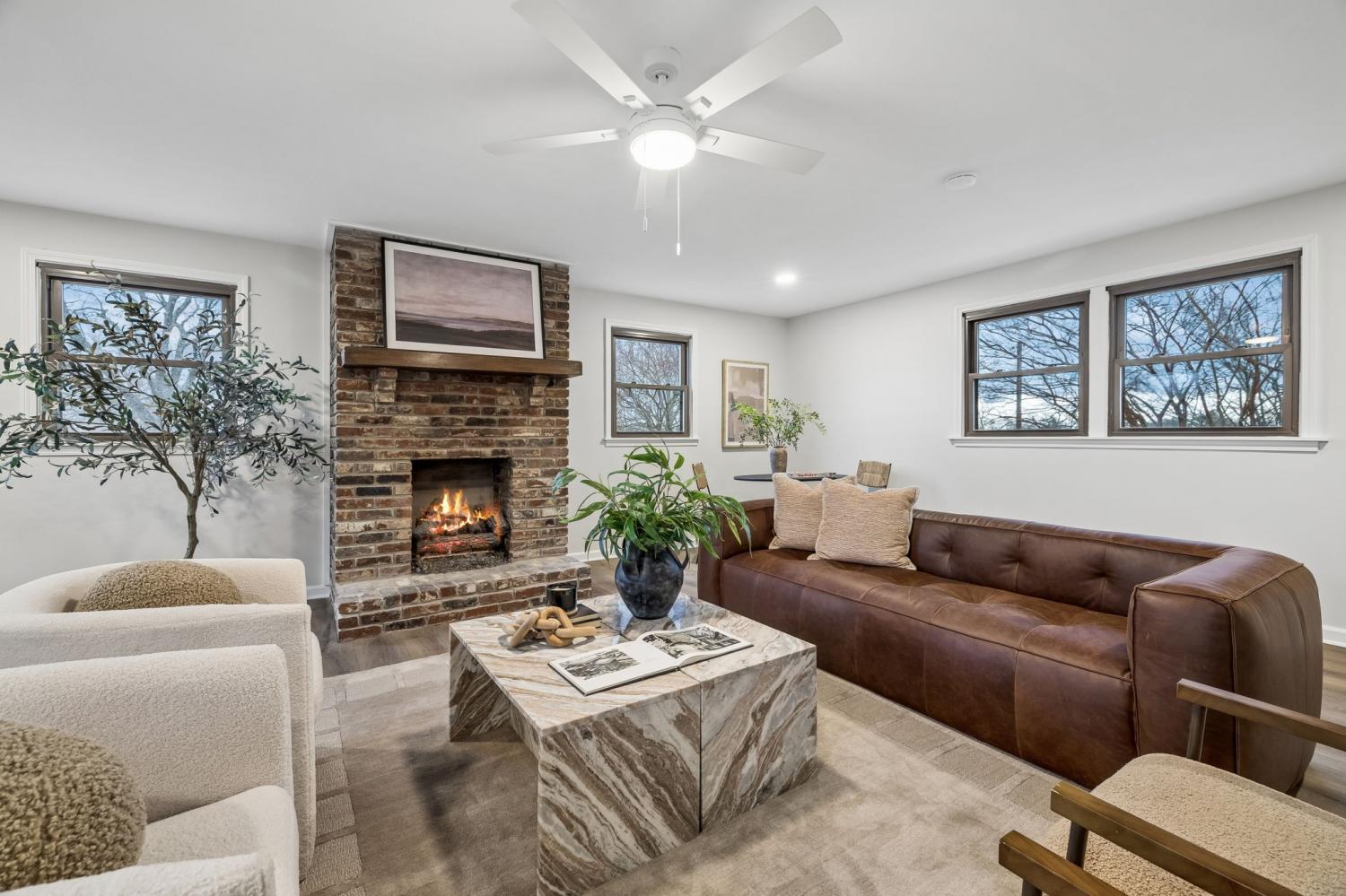 Totally remodeled home in the most convenient location imaginable. This home is a traditional Tennessee Ranch home that features an open concept living room perfect for entertaining and a HUGE 2nd living space. New HVAC System, gutted to the the studs interior. Hall bath is original butter yellow retro tile with heated floors. Unfinished basement and 2 car garage, back patio and storage shed.