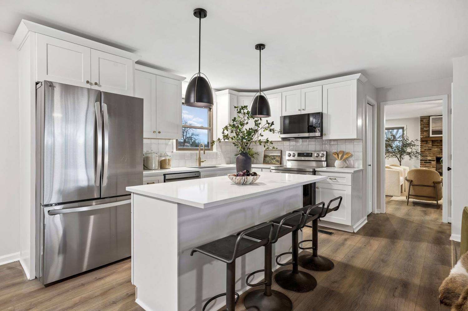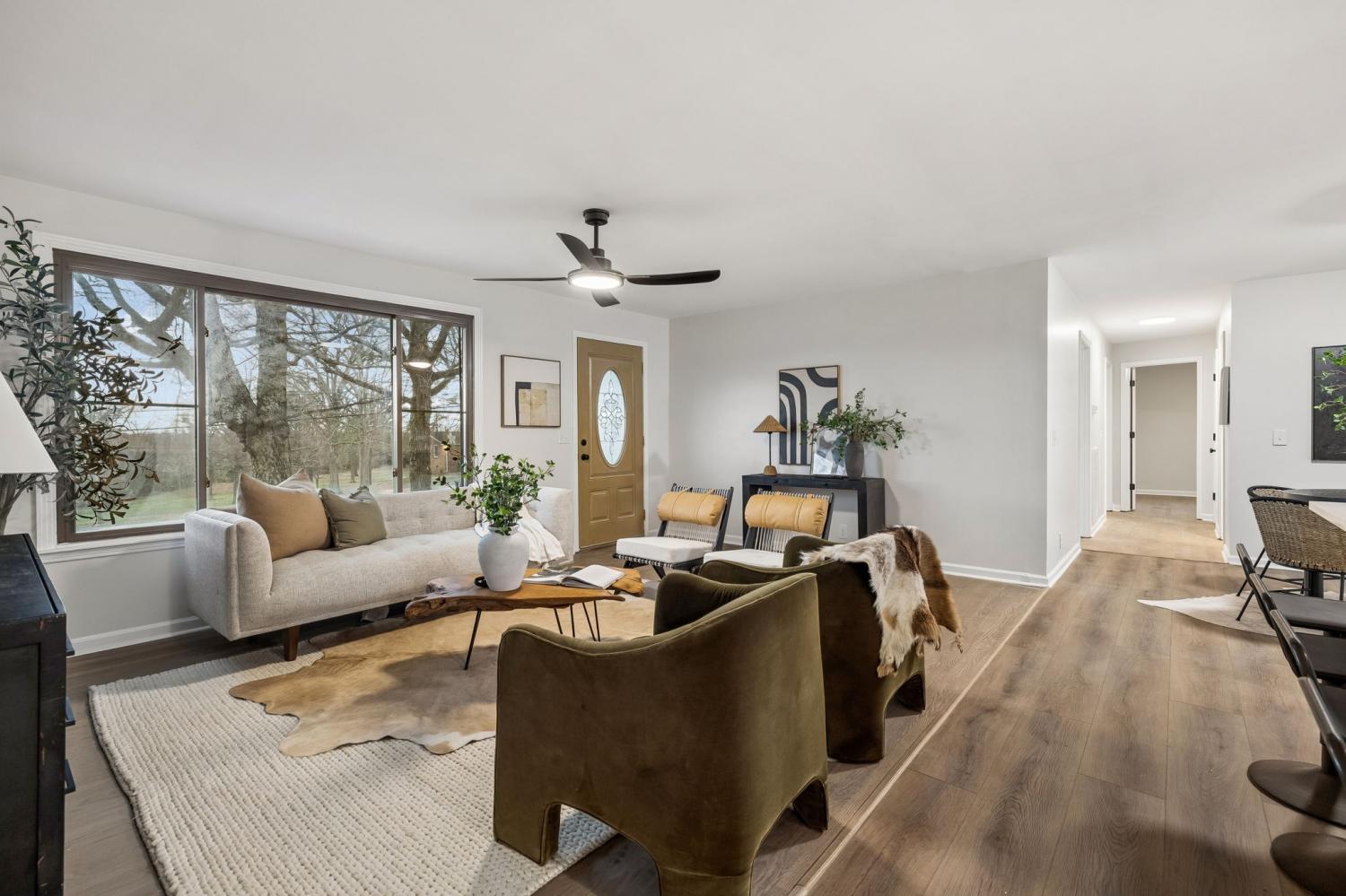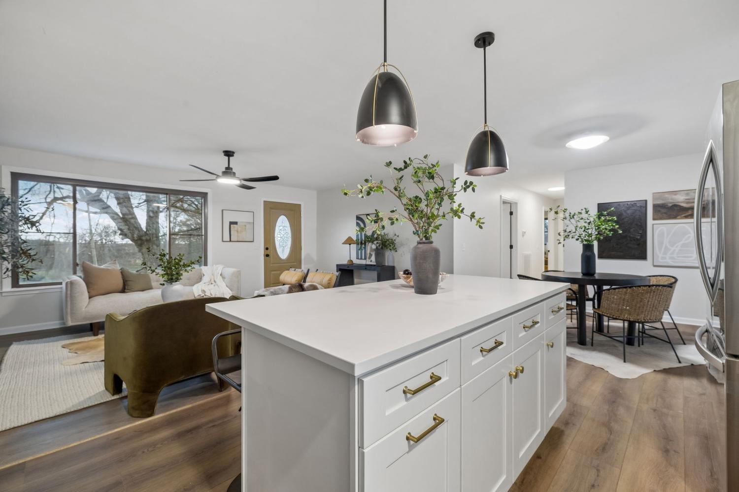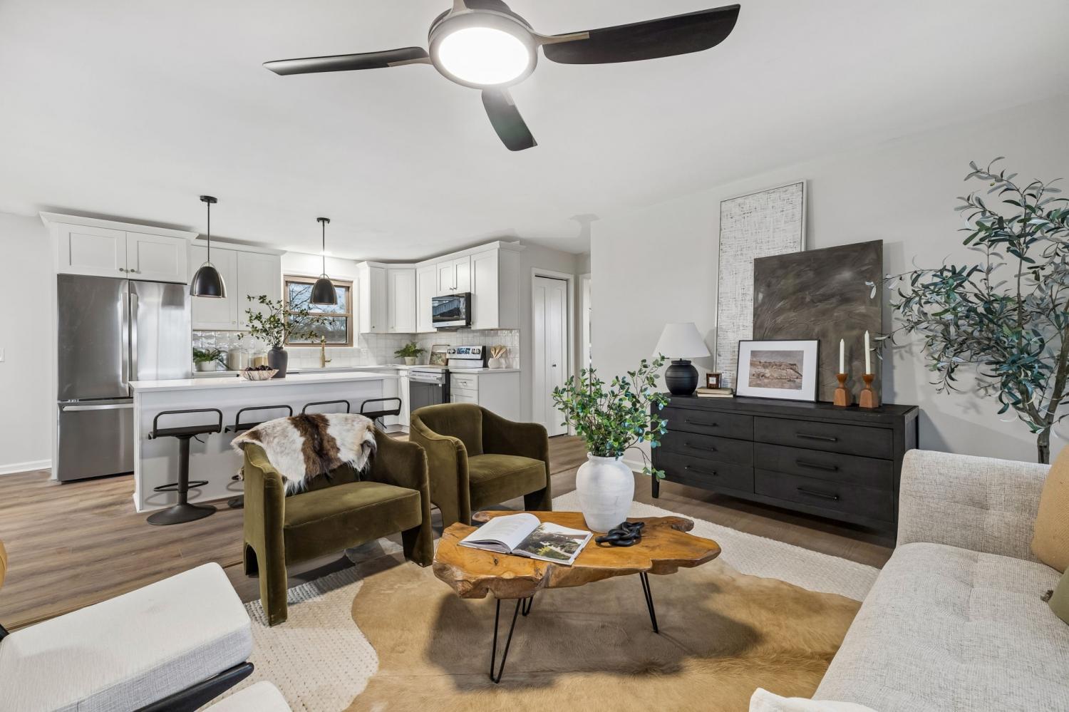 Totally remodeled home in the most convenient location imaginable. This home is a traditional Tennessee Ranch home that features an open concept living room perfect for entertaining and a HUGE 2nd living space. New HVAC System, gutted to the the studs interior. Hall bath is original butter yellow retro tile with heated floors. Unfinished basement and 2 car garage, back patio and storage shed.