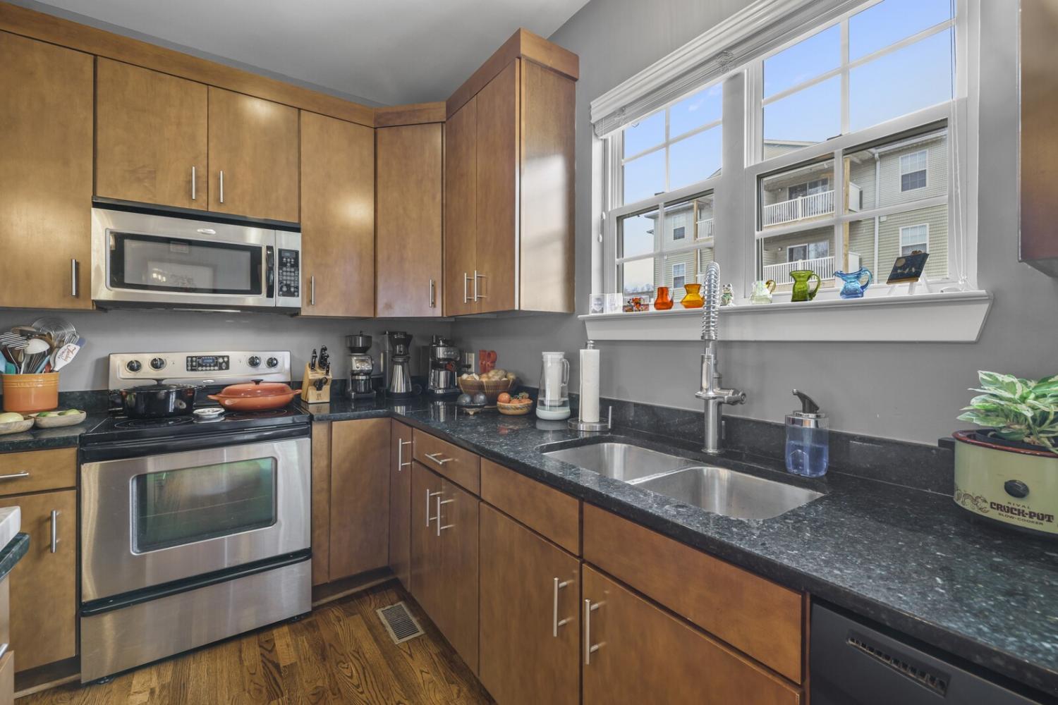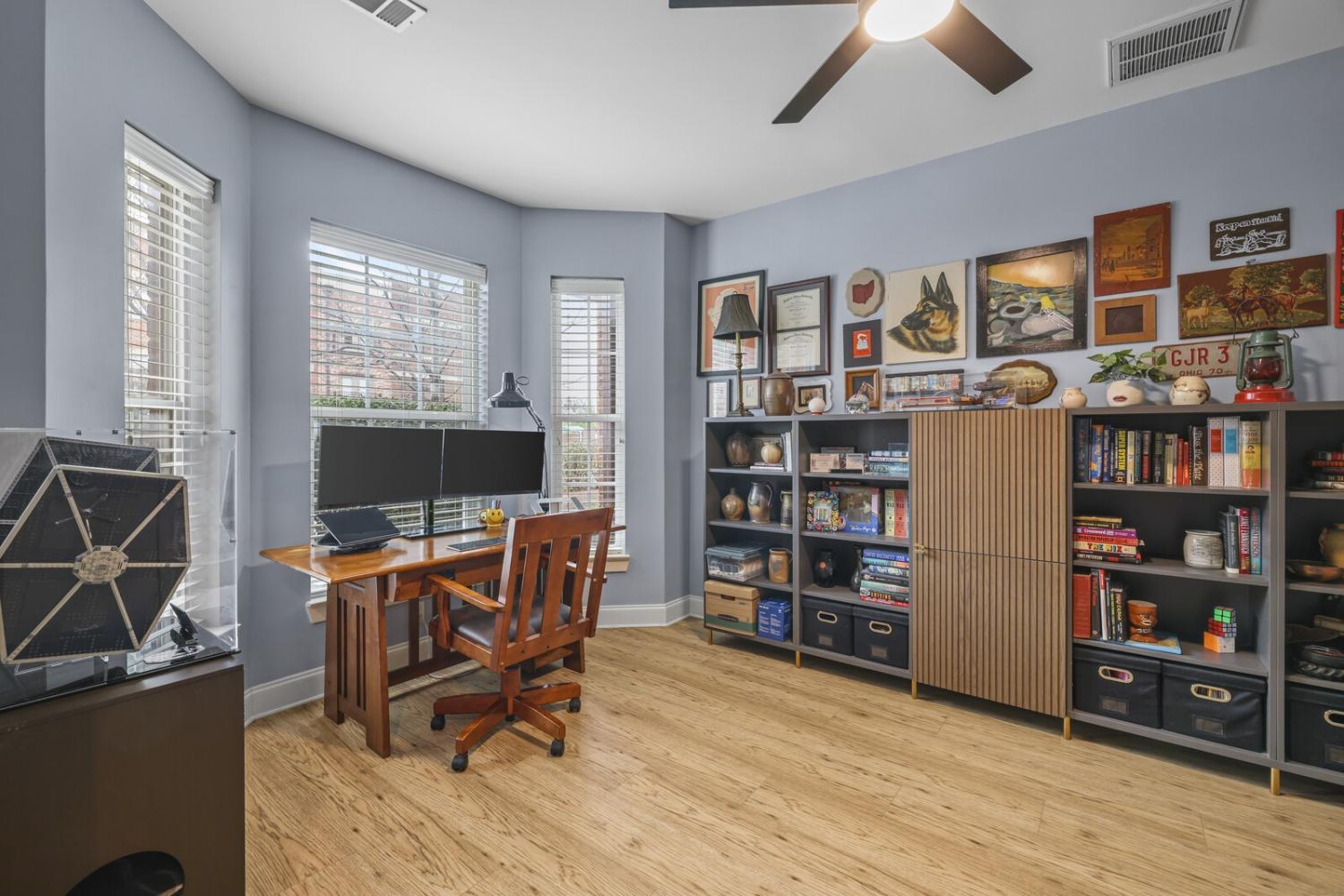 Right in the middle of everything—without living in the middle of it. Wedgewood Park is 1 mile to The Gulch & 2 miles to Broadway! It's unusual to find a Downtown-adjacent, gated, 3-story home w/ 2-car garage at this price! Not builder-basic, this house stands out with a rich blue & green color palette, vintage foyer light, gallery-style walls inviting your collection, and a bold, wallpapered knee-wall. Bay windows on every level, glossy hardwoods, the open layout flows from LR to a sleek kitchen w/ pantry, and out to your private balcony. Two oversized ensuite bedrooms + laundry upstairs.The hidden upgrade no one talks about: A completely separate workspace downstairs! The first-floor office (w/ pocket doors) offers flexibility for WFH, studio space, home gym or a third bedroom! Garage storage cabinets, attic storage, & large closets in both bedrooms. If you’ve seen a dozen homes and none of them felt right—this is the one that will make you start considering where your furniture could go. 1% Lender credit offered to Buyers using Sellers' preferred lender