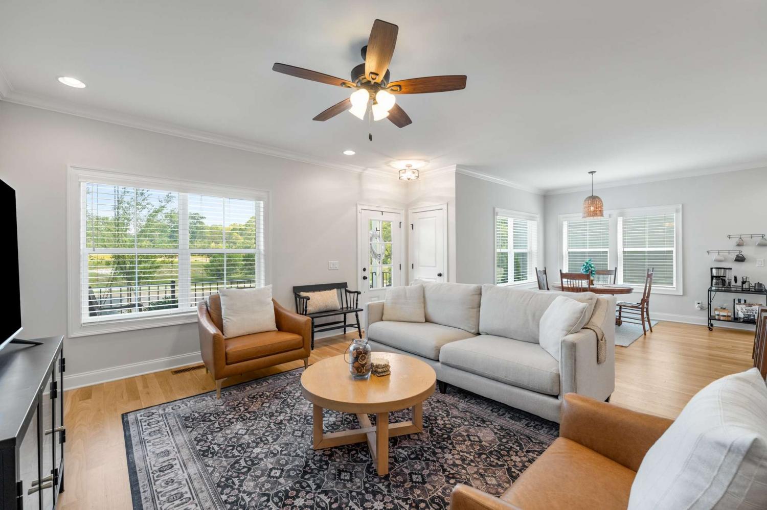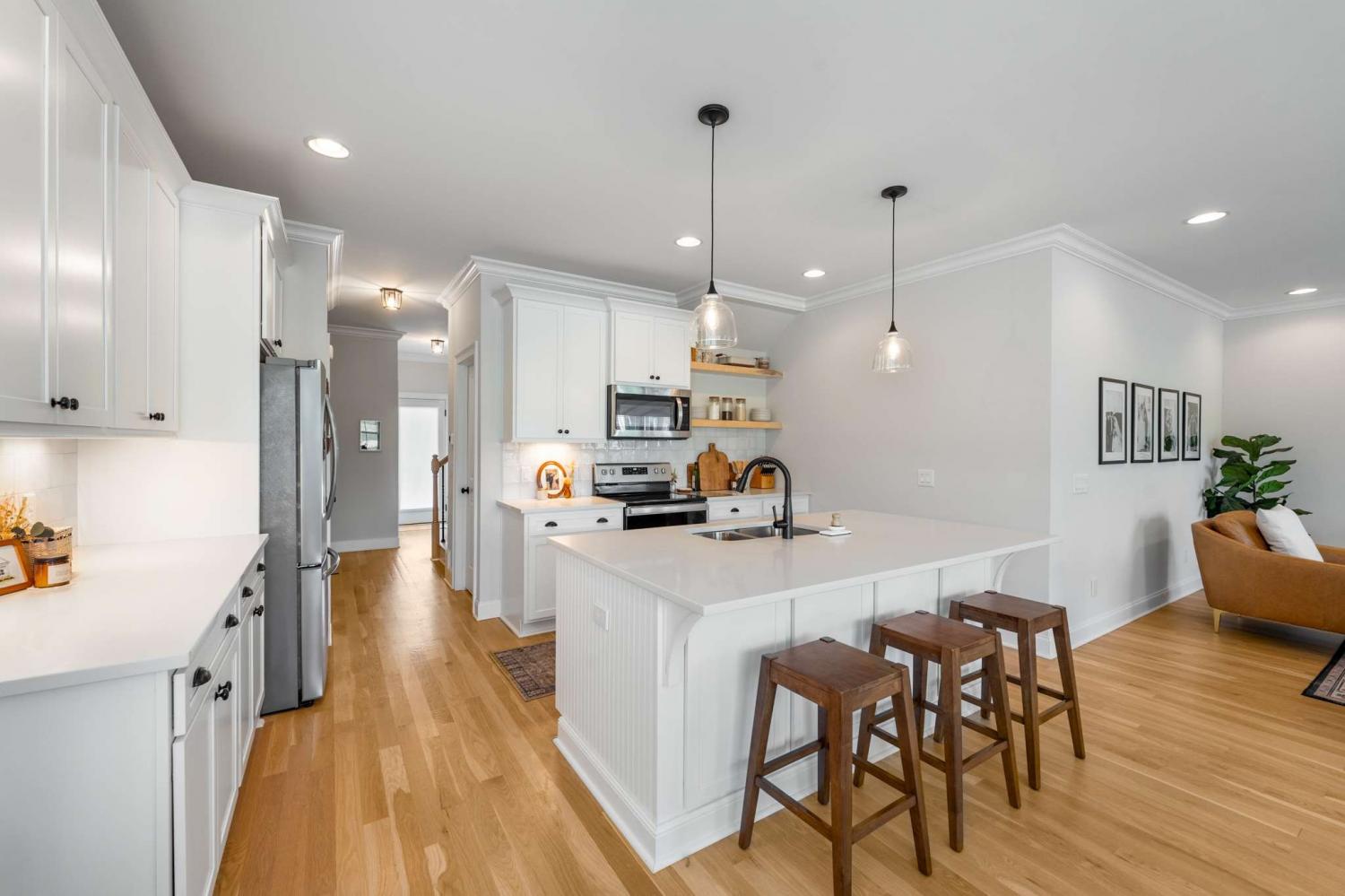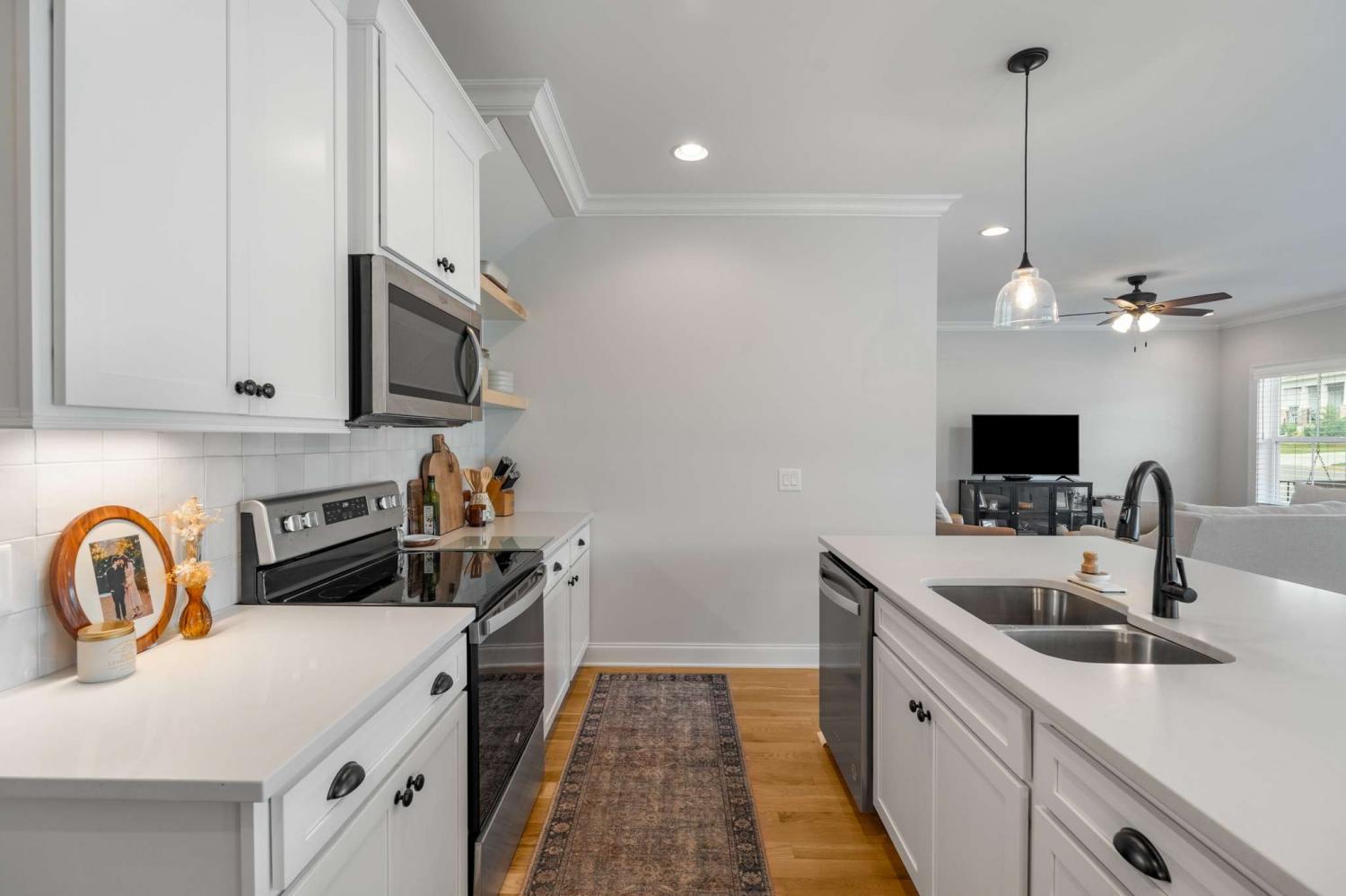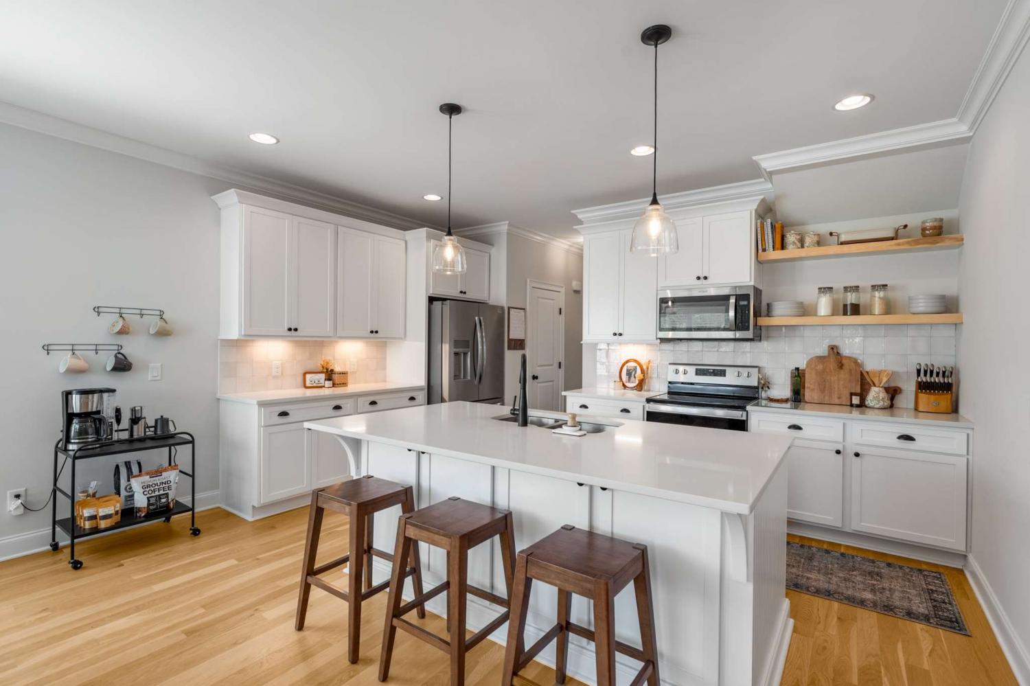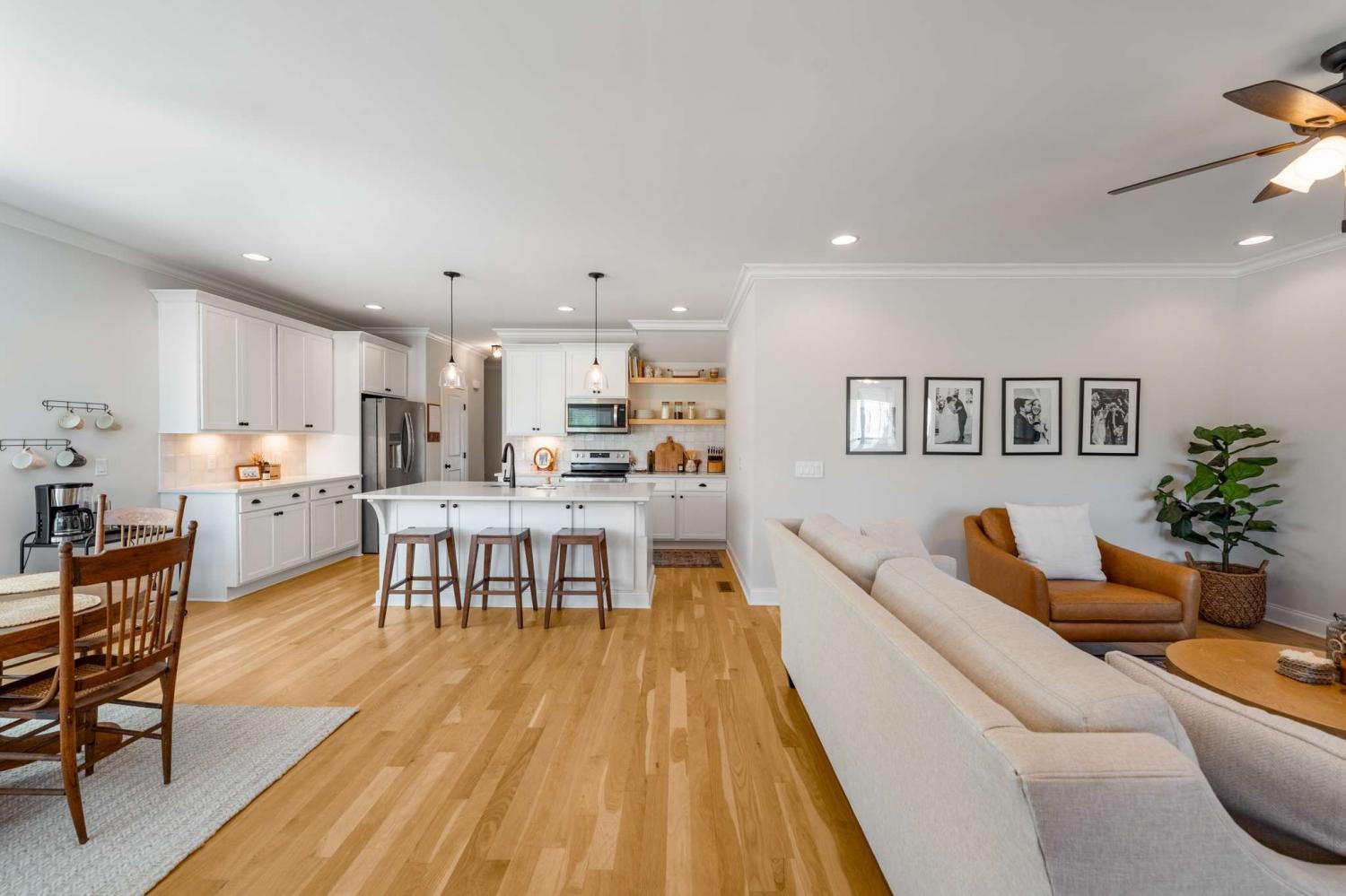 1% lender credit available with preferred lender!! Welcome to this beautiful home in one of Nolensville’s most desirable communities - a rare opportunity that combines modern upgrades, timeless design, and a prime location. From the moment you step onto the inviting covered porch and through the foyer, you’re greeted by natural real hardwood floors and warm designer tones that set the stage for elegant yet comfortable living. The open-concept layout flows effortlessly into a showstopping kitchen with quartz countertops, sleek open shelving, a large center island with sink, stainless steel appliances, upgraded lighting, and a custom backsplash - a true entertainer’s dream. The main level also features a powder room and a spacious primary suite tucked at the rear of the home with double vanities, oversized shower, and walk-in closet - plus no stairs to navigate. Upstairs you’ll find two additional bedrooms, a shared bath, and a flexible loft perfect for an office or reading nook, along with a bonus extended space ideal for a private retreat, creative workspace, or cozy lounge. Outdoor living shines with a covered patio, fully fenced backyard, and custom garden beds ready for your own home garden. The rear-entry two-car garage adds convenience and curb appeal. Better than new construction and move-in ready, this home offers the best of Nolensville living in a vibrant and growing neighborhood. Schedule your private showing and make this exceptional property yours before it’s gone.