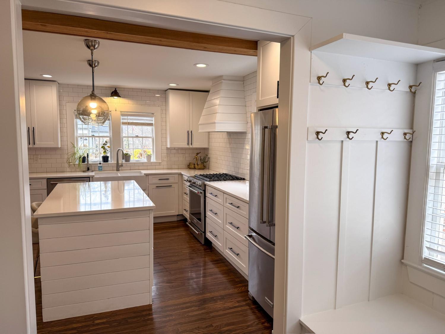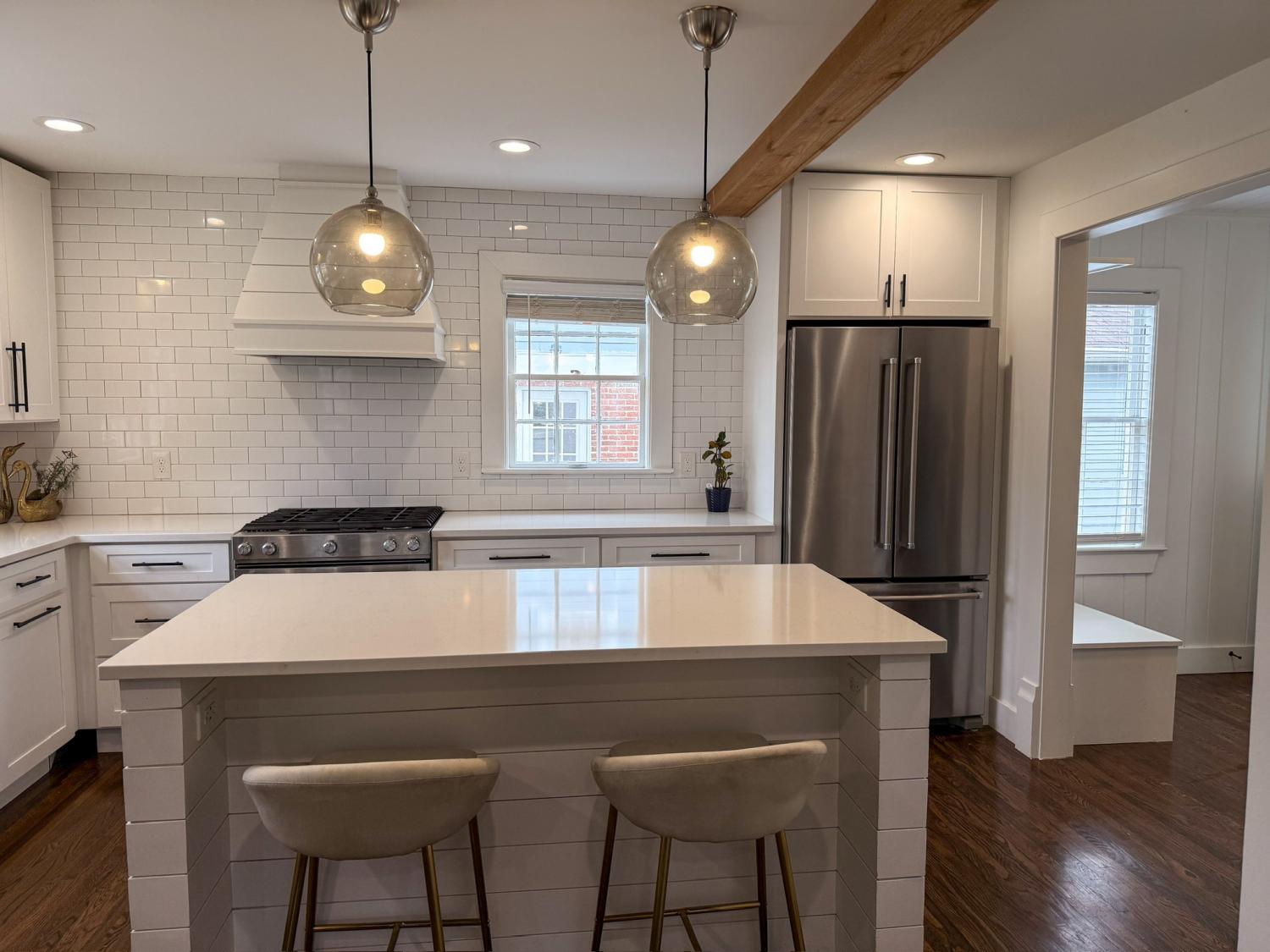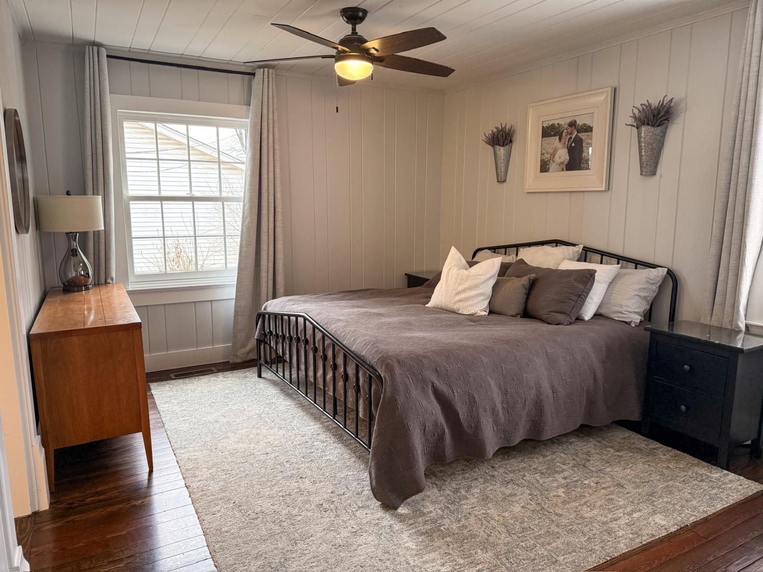 Located in one of the most highly desired areas of Downtown Franklin, this beautifully updated home offers a rare opportunity to live just minutes from the heart of downtown Franklin, Five Points, Main Street shopping, dining, and local events—while enjoying the charm of an established, tree-lined neighborhood. 2,100~ sq ft home features 3 bedrooms and 2.5 baths, including a main-level primary suite. The main floor boasts 1.5-inch white oak floors, old-growth heart pine floors, a living room with a gas fireplace and antique mantel, a custom dry bar, walk-in pantry, half bath, and a dedicated laundry area. The kitchen is open to the main living spaces, ideal for everyday life and entertaining. Upstairs, you’ll find two bedrooms with 9-foot ceilings and a full bath. The ~700 sq ft unfinished basement offers excellent storage and features a walkout greenhouse with exciting potential. A large, flat, fenced backyard adds even more space to relax, play, or entertain. Recent updates include renovated kitchen and bathrooms, built-in closets and pantry, new electrical and plumbing, fixtures, windows, cedar siding, copper half-round gutters, landscaping, and a new roof. The deep 60 x 222 lot provides space for a future rear addition or larger garage apartment, subject to buyer verification and approvals