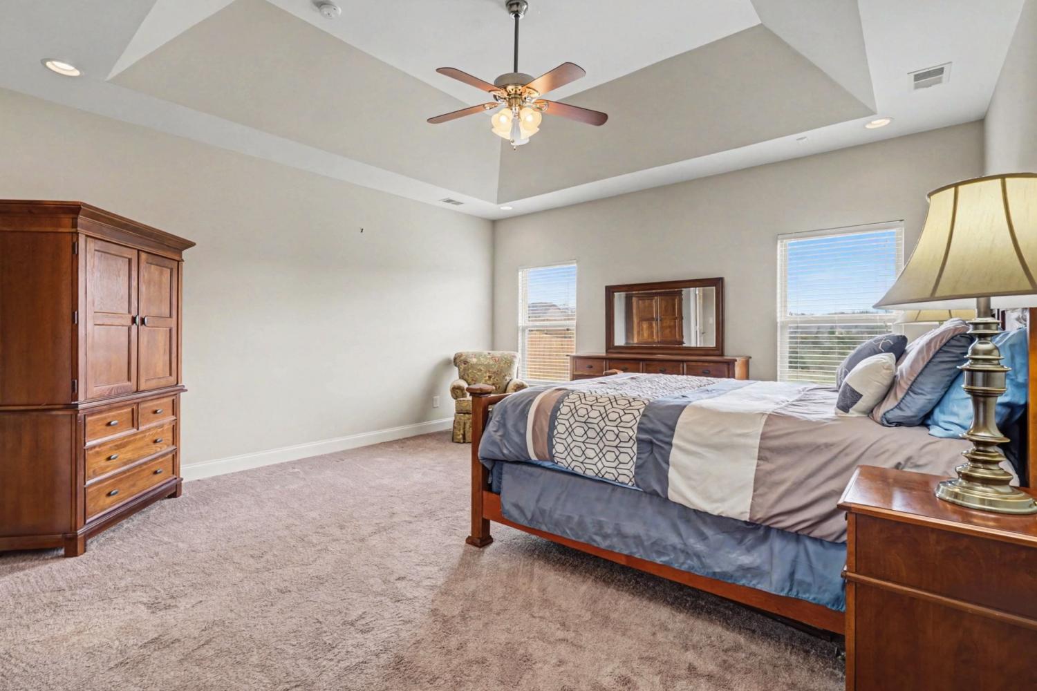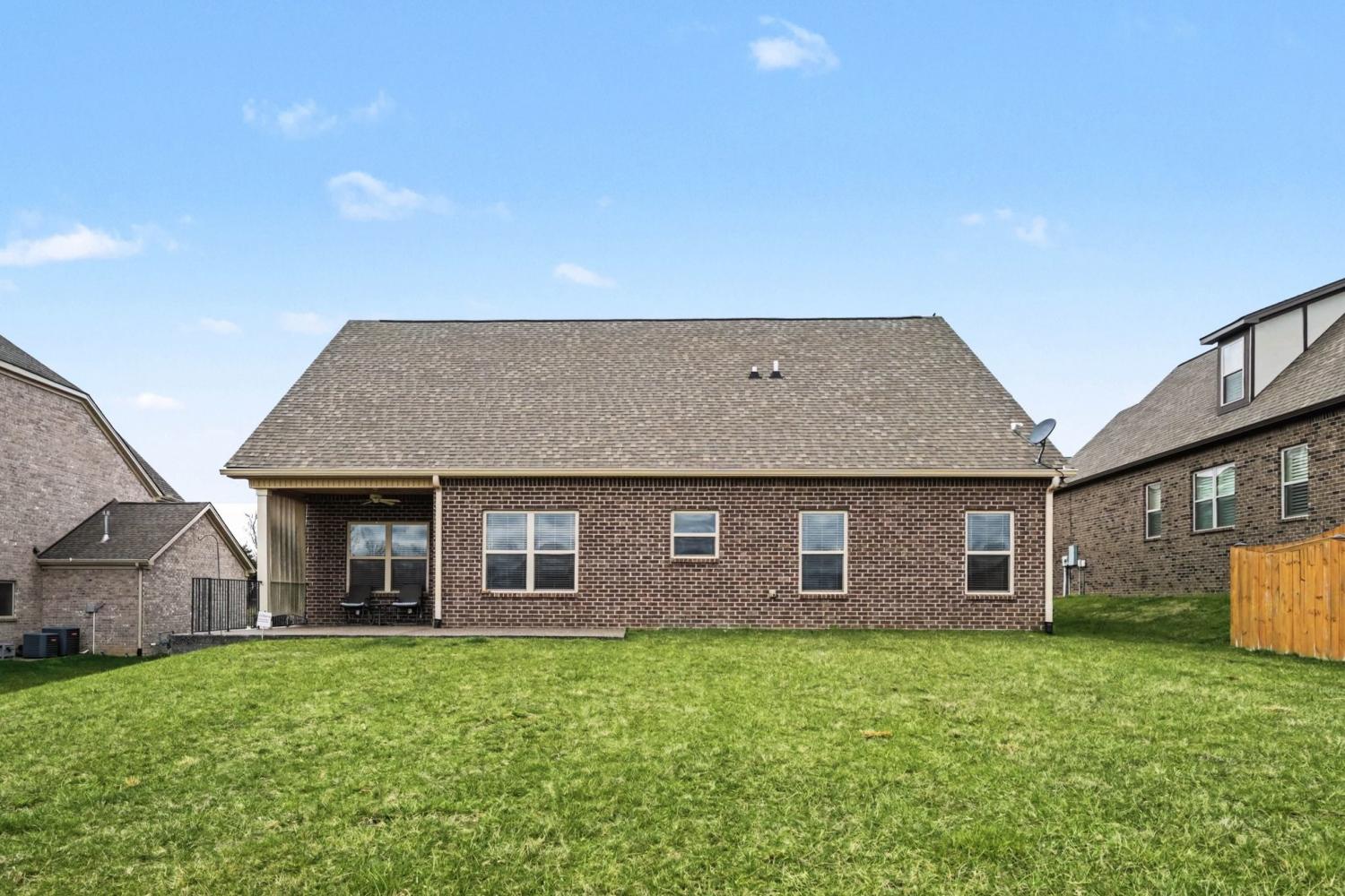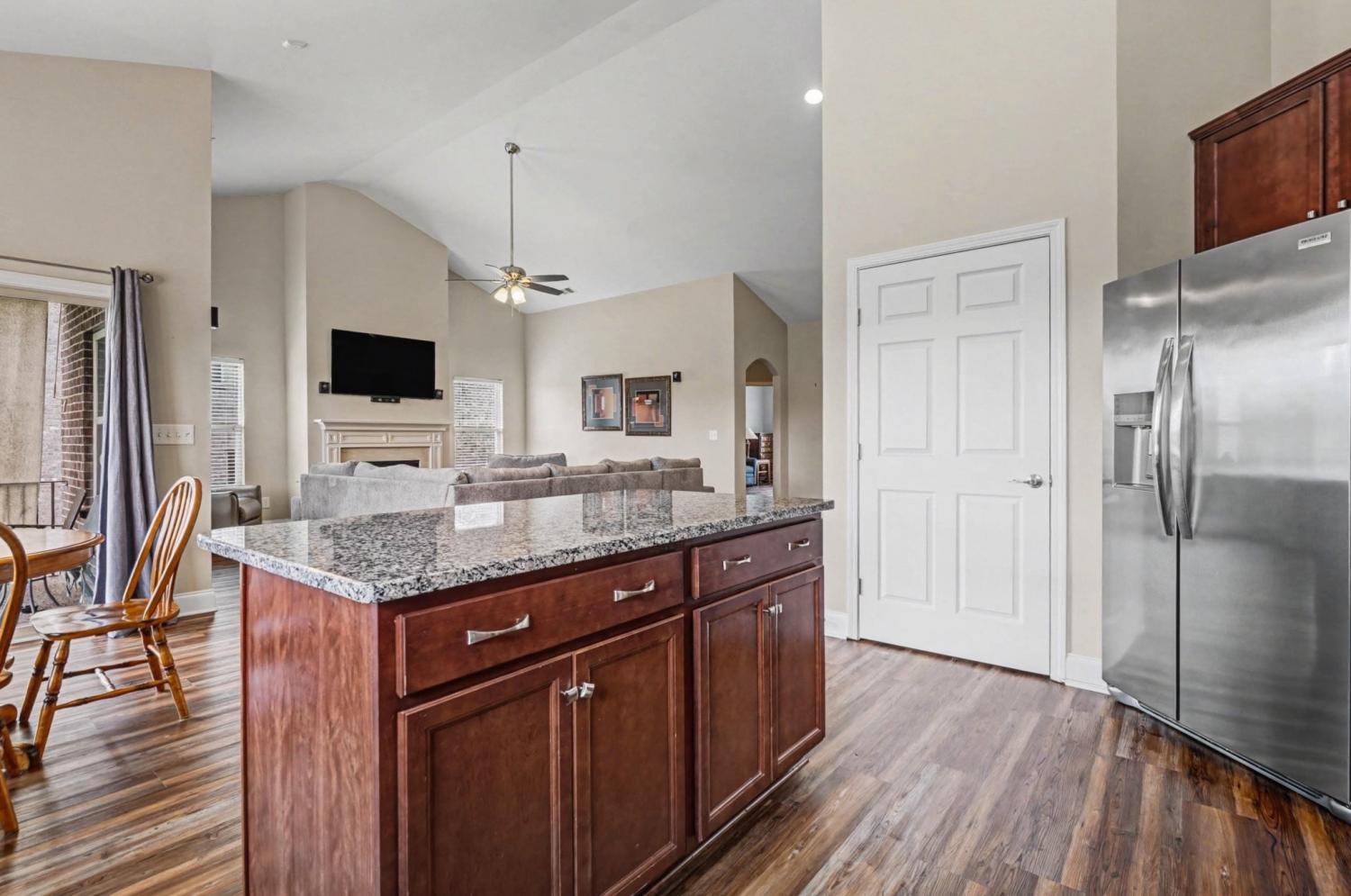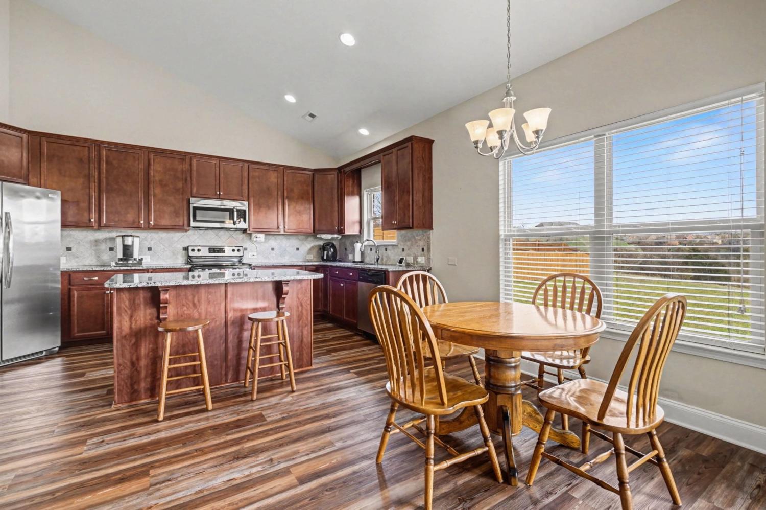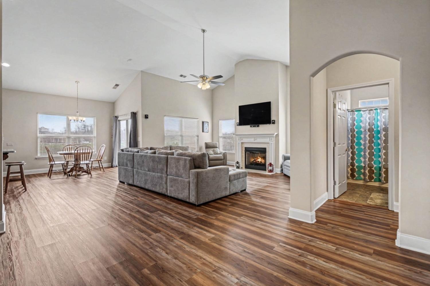 Beautiful one-level home featuring 3 bedrooms and 2 bathrooms with an open floor plan designed for comfortable everyday living. The spacious living room offers a cozy fireplace and flows seamlessly into the kitchen and casual dining area. The kitchen includes an island, pantry, and abundant cabinet space for storage and functionality. Enjoy outdoor living with both a covered front porch entry and a covered back patio. A large laundry room with built-in cabinets adds extra convenience. Located in a community with outstanding amenities including a clubhouse, pool, playground, fitness center, and walking trails. Conveniently situated less than five minutes from I-40 for an easy commute.