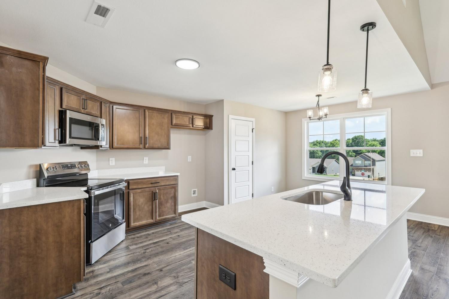 Spring Special- $15,000 buyer concession to use anyway you want - pay your closing cost, rate buy down or price reduction! Welcome to the beautiful Cardinal Creek community in Clarksville, TN! This stunning new construction Oakmont floor plan offers a perfect blend of modern design and convenient two-level living. As you step inside, you'll be greeted by a spacious open floor plan with luxurious vinyl plank and tile flooring, creating a seamless flow throughout the home. The heart of the home is the stylish kitchen, featuring stainless appliances, a large pantry, and elegant granite countertops with eat at island counter top, making it the perfect space for culinary enthusiasts. The primary suite is a true retreat, boasting a generous walk-in closet and a well-appointed en-suite bathroom with double vanity and shower with separate soaking tub. Outside, the home's exterior is equally impressive, with a charming brick and vinyl front, a beautifully sodded yard and a covered back deck and porch. The epoxied 3 car side load garage provides ample space for parking and storage. Conveniently situated in the Needmore Rd area with easy access to schools, shopping, entertainment & outdoor recreation. Seller is offering a generous $15,000 buyer credit to use anyway you want - pay buyer closing cost, rate buy down or price reduction! Still time to make available color selections! Sample photos of home to be built with selections available. Materials and colors subject to change without notice.