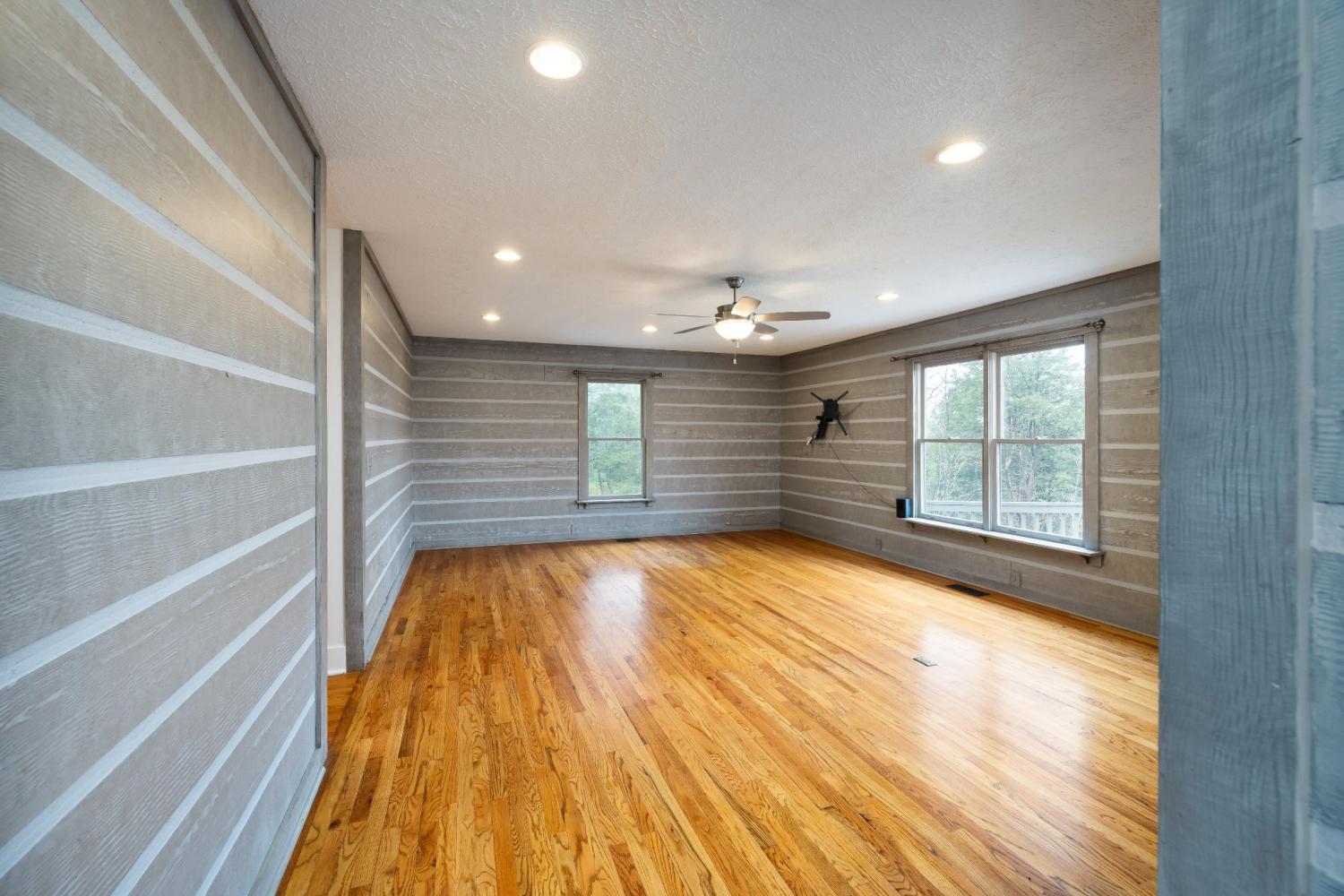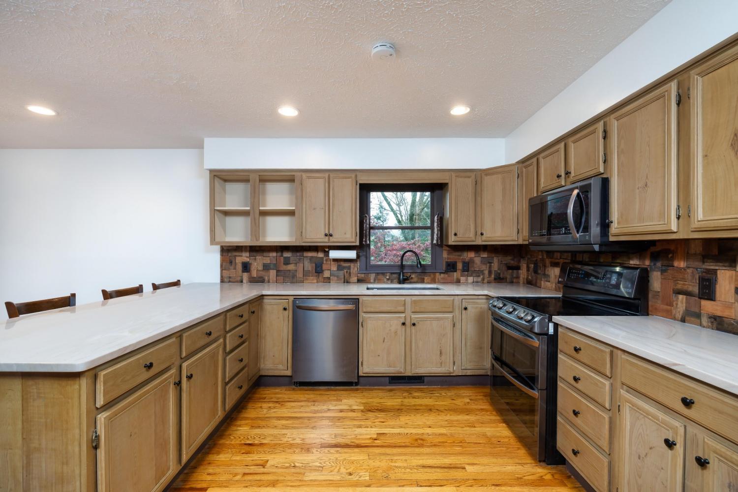 Perched above Franklin, this 15-acre estate delivers rare privacy and scenic views just 3 miles from downtown. Mostly wooded, the property combines peaceful seclusion with everyday convenience. A winding drive leads to the three-story home, where sweeping views take center stage. The main level features 3 bedrooms, 2 bathrooms, a spacious kitchen, living area, ample storage, and access to a front deck overlooking the landscape. The finished basement includes a separate entrance, full kitchen, and bathroom—well-suited for guests, multi-generational living, or rental potential. Upstairs, a large open room with a full bath provides flexible space for a studio, office, or additional living area. At the entrance, a barn with loft presents endless possibilities for a gym, studio, or recreation space. Outdoors, enjoy private trails for walking, hiking, or riding, along with a fire pit, pavilion, gardens, and a campsite with a wet-weather spring. Preliminary soil work supports a potential second building site meeting state septic requirements (buyer to verify). A unique opportunity to own private acreage with views in a prime location.