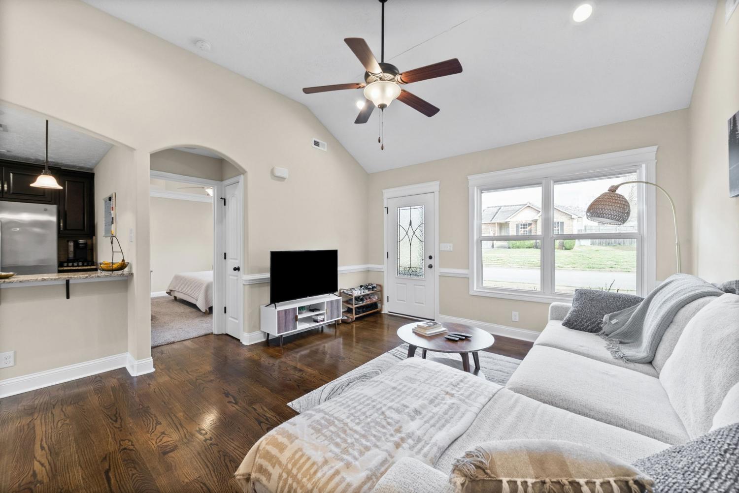 *FREE ONE YEAR HOME WARRANTY with Full Price Offer!* Seller also offering help with buyers closing costs! What a RARE find! Welcome to this updated 4 bedroom, 2 bath, RANCH home in the heart of Clarksville and only minutes from Fort Campbell! It features a brick front exterior, spacious covered front porch, beautiful real hard wood flooring and fresh carpet, with tall ceilings in the living room, all stainless steel appliances in the kitchen, plus a brand NEW dishwasher, gorgeous granite countertops, tile backsplash, breakfast bar area, primary bedroom has a beautiful upgraded bathroom suite and tall ceilings. There is a large back deck, fenced in backyard, and a one car garage, with NO BACKYARD NEIGHBORS! Washer and dryer included!