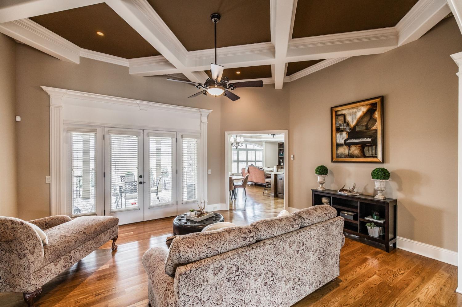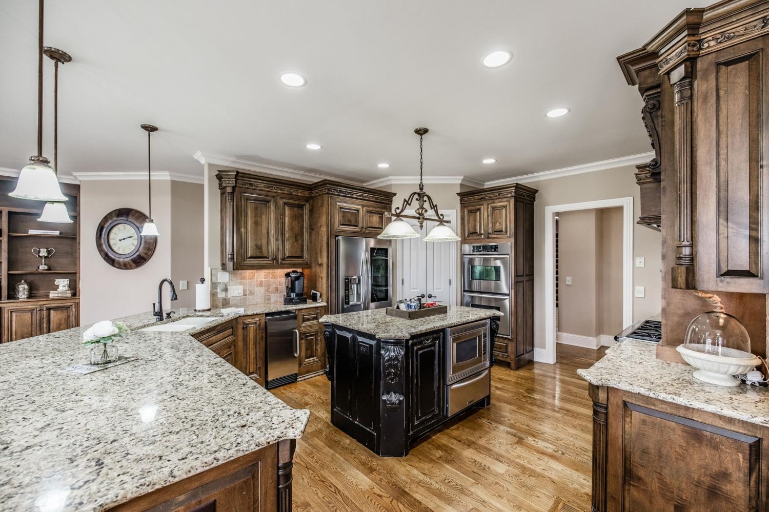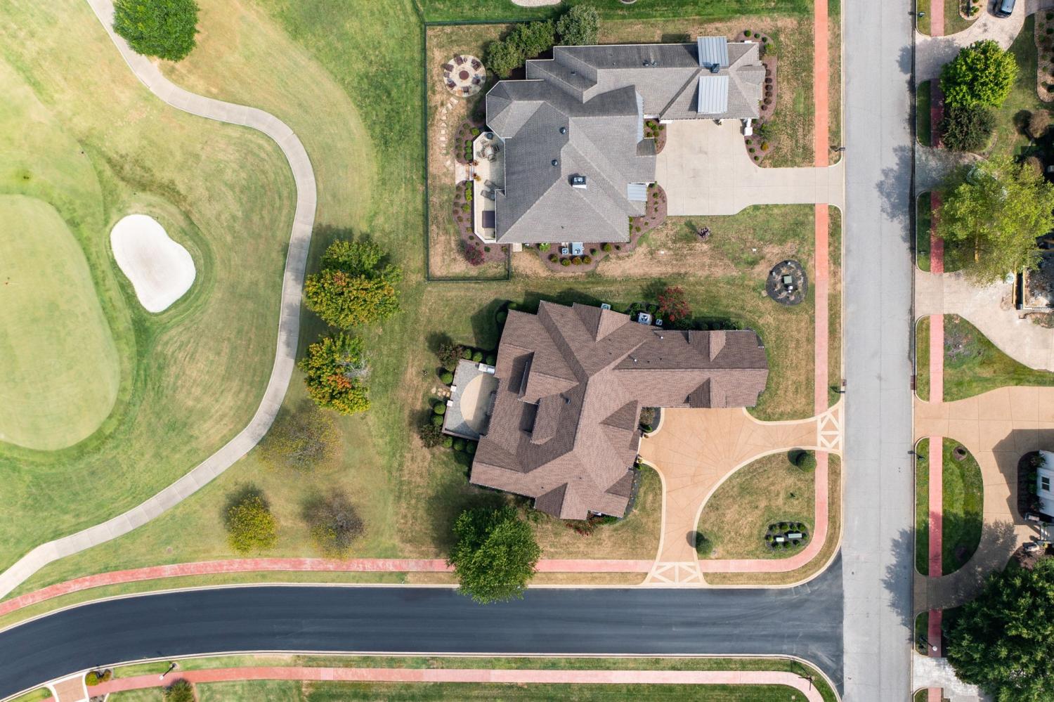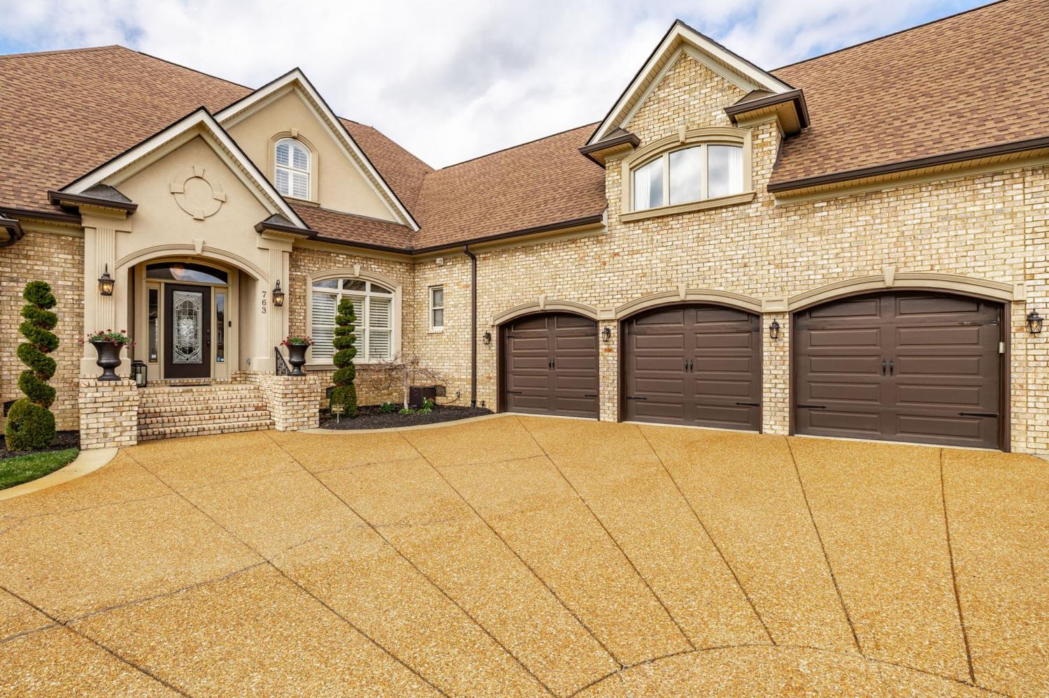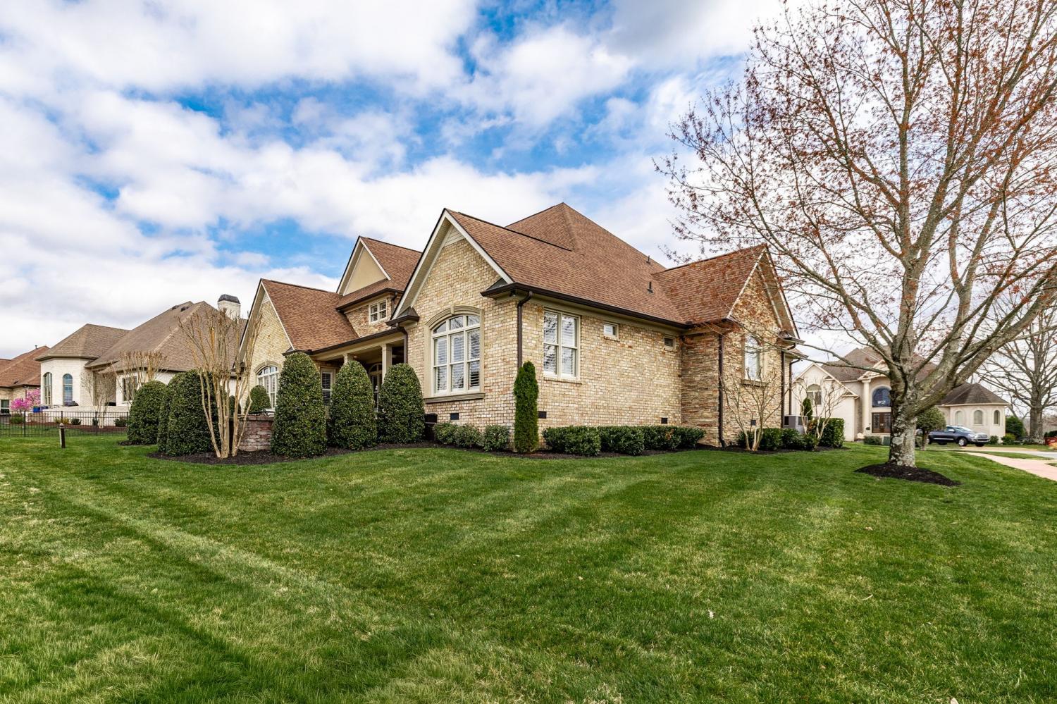 Located on the 5th hole of Tennessee Grasslands Golf and Country Club, this well-appointed home offers a combination of elegant living and scenic surroundings, with lake views located just across the street. The exterior features custom brick, stone, and stucco, complemented by mature landscaping that enhances the home’s curb appeal. A quarter-circle driveway and corner lot provide ample parking and an inviting approach. Inside, the home showcases detailed craftsmanship with custom moldings, decorative ceiling designs, and architectural features throughout. The floor plan includes five spacious bedrooms, each with a private full bathroom, along with two half baths on the main level. Two recreation rooms provide flexible space for entertaining or everyday living. One includes a retractable movie screen, projector, and wet bar. The second recreation room can serve as a game room, fitness area, or additional living space. Recent updates include a new roof (June 2023), two HVAC units (2024), and a tankless water heater installed in December 2024. The home also features a central lighting control system and humidity control system. The kitchen is equipped with a 6-burner Dacor range, double stainless steel ovens, microwave, ice maker, and custom cabinetry. A large range hood with built-in pull-out spice racks adds functionality and storage. The kitchen connects to adjacent living areas and a formal dining room, creating a practical layout for daily living and entertaining. *HOA dues do not include golf club membership.