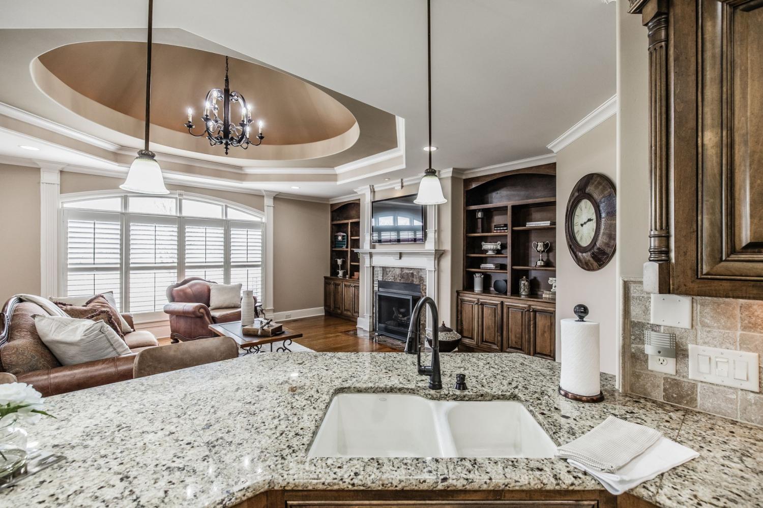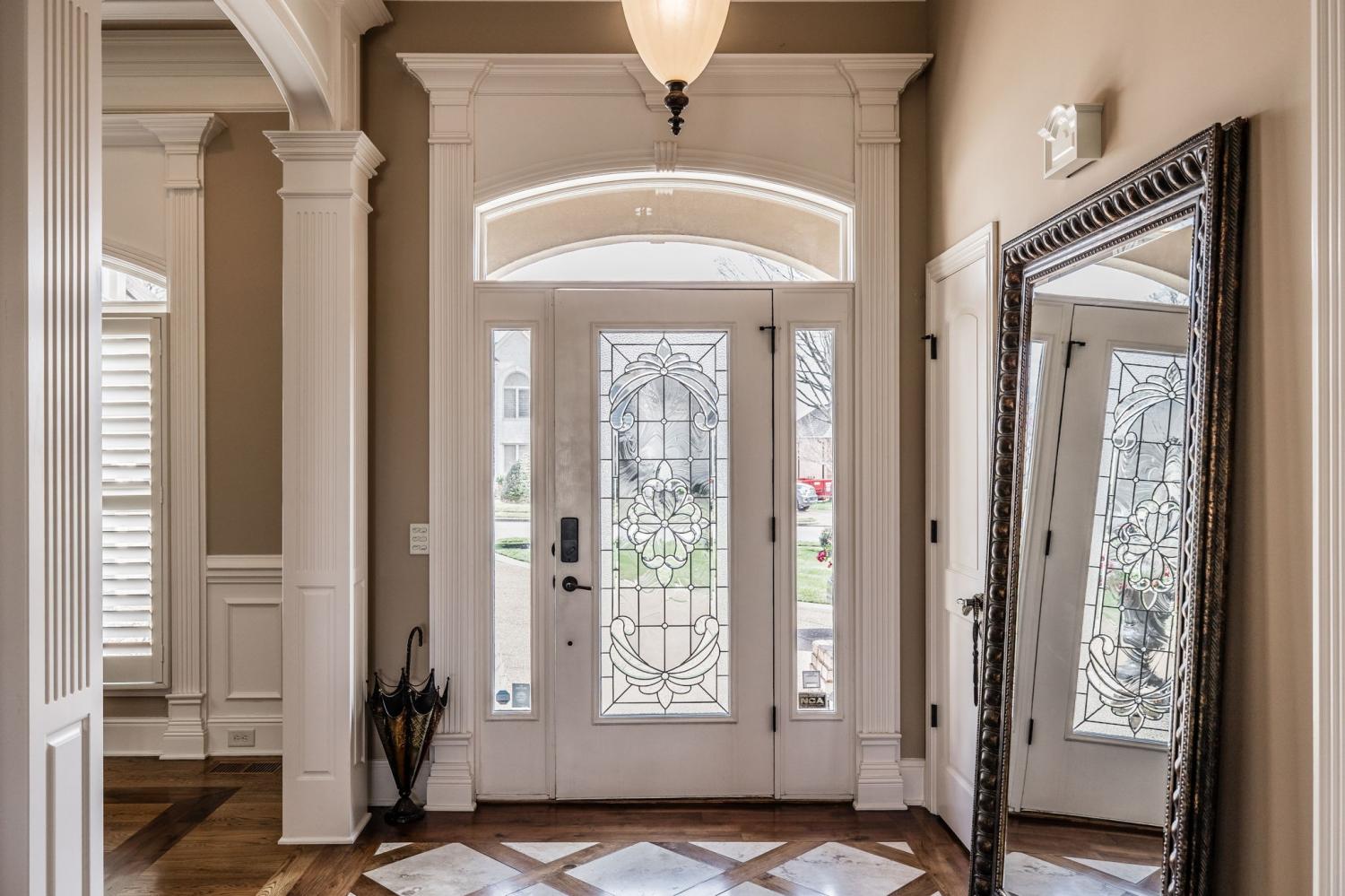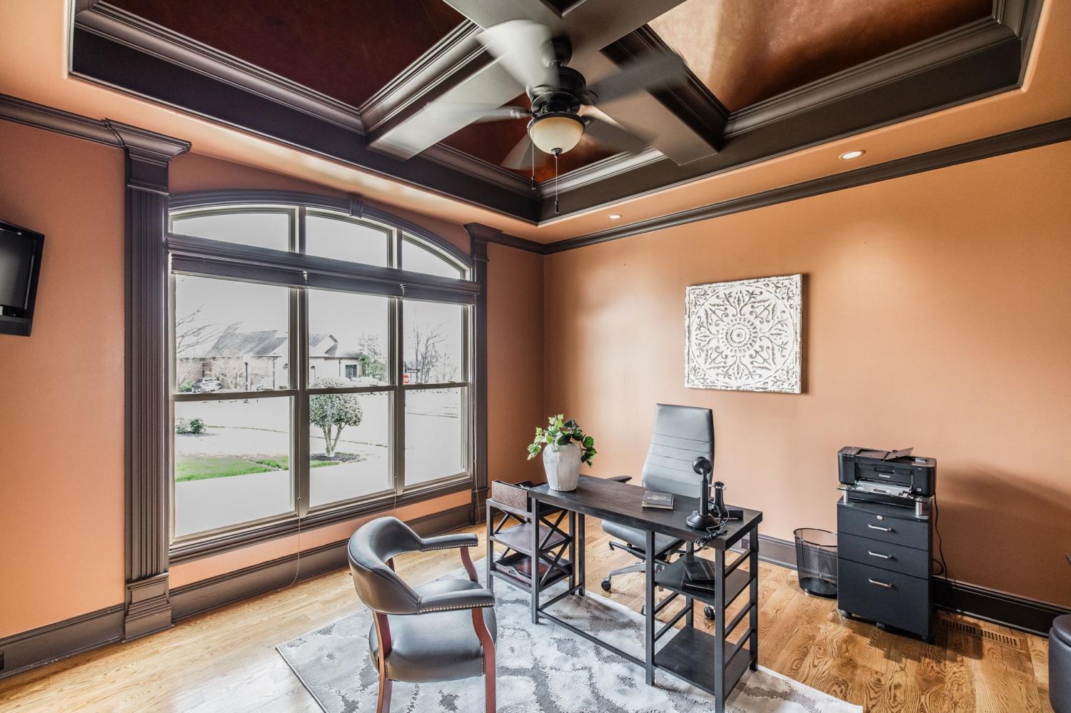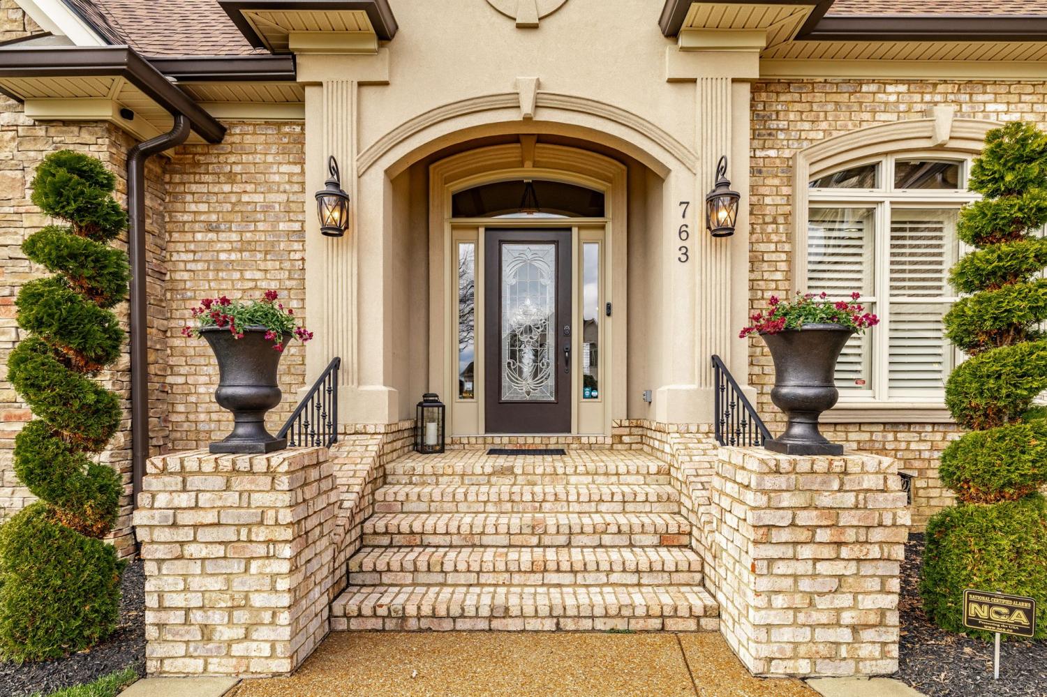 Located on the 5th hole of Tennessee Grasslands Golf and Country Club, this well-appointed home offers a combination of elegant living and scenic surroundings, with lake views located just across the street. The exterior features custom brick, stone, and stucco, complemented by mature landscaping that enhances the home’s curb appeal. A quarter-circle driveway and corner lot provide ample parking and an inviting approach. Inside, the home showcases detailed craftsmanship with custom moldings, decorative ceiling designs, and architectural features throughout. The floor plan includes five spacious bedrooms, each with a private full bathroom, along with two half baths on the main level. Two recreation rooms provide flexible space for entertaining or everyday living. One includes a retractable movie screen, projector, and wet bar. The second recreation room can serve as a game room, fitness area, or additional living space. Recent updates include a new roof (June 2023), two HVAC units (2024), and a tankless water heater installed in December 2024. The home also features a central lighting control system and humidity control system. The kitchen is equipped with a 6-burner Dacor range, double stainless steel ovens, microwave, ice maker, and custom cabinetry. A large range hood with built-in pull-out spice racks adds functionality and storage. The kitchen connects to adjacent living areas and a formal dining room, creating a practical layout for daily living and entertaining. *HOA dues do not include golf club membership.